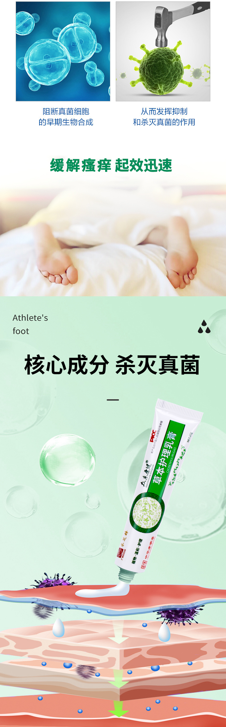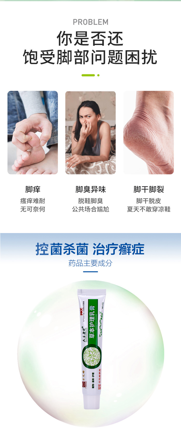 【和足部瘙痒说拜拜】采芝林草本护理乳膏jiao气膏长效控菌避免反复快速止痒