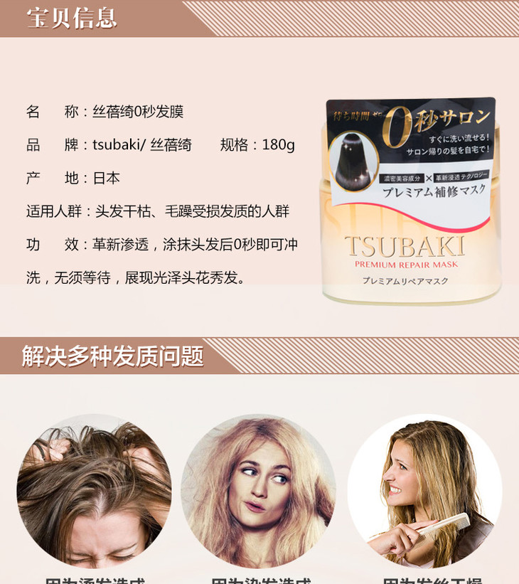 【门店直发】日本资生堂TSUBAKI丝蓓绮0秒高渗透发膜金耀沙龙级瞬护暖芯180g