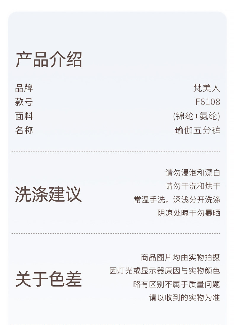 梵美人 F6108 瑜伽五分裤 莱卡云柔 带口袋 有松紧