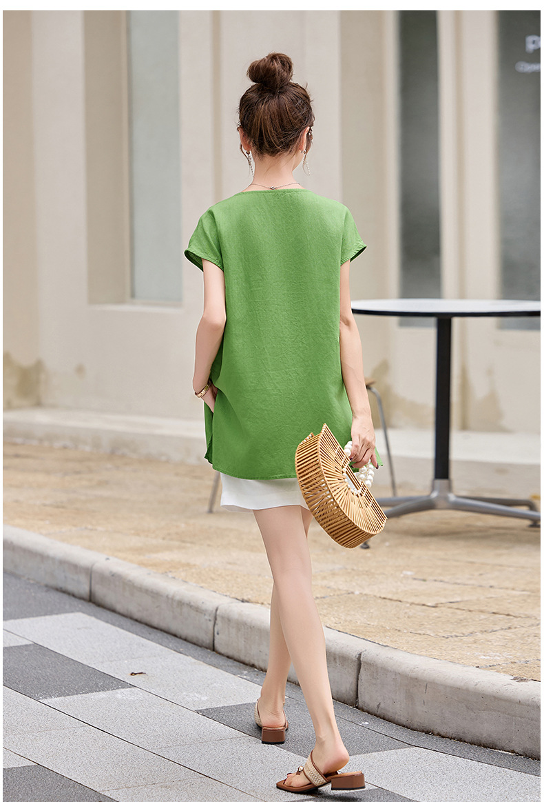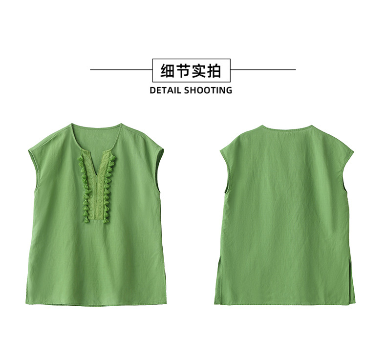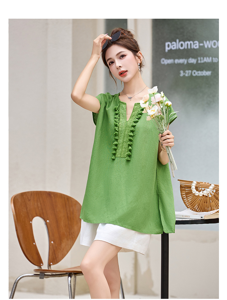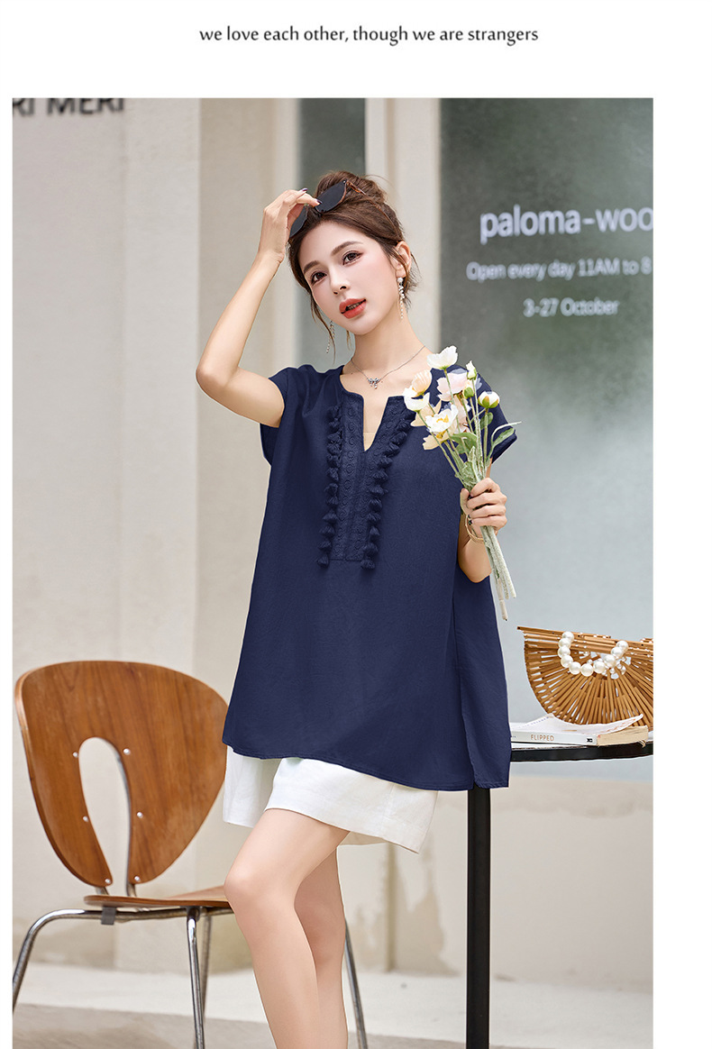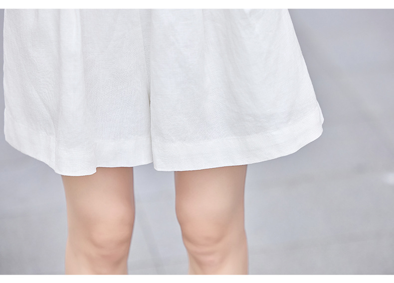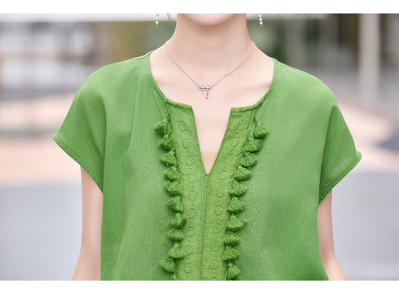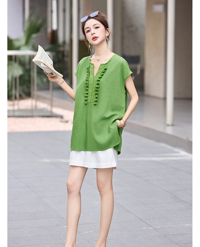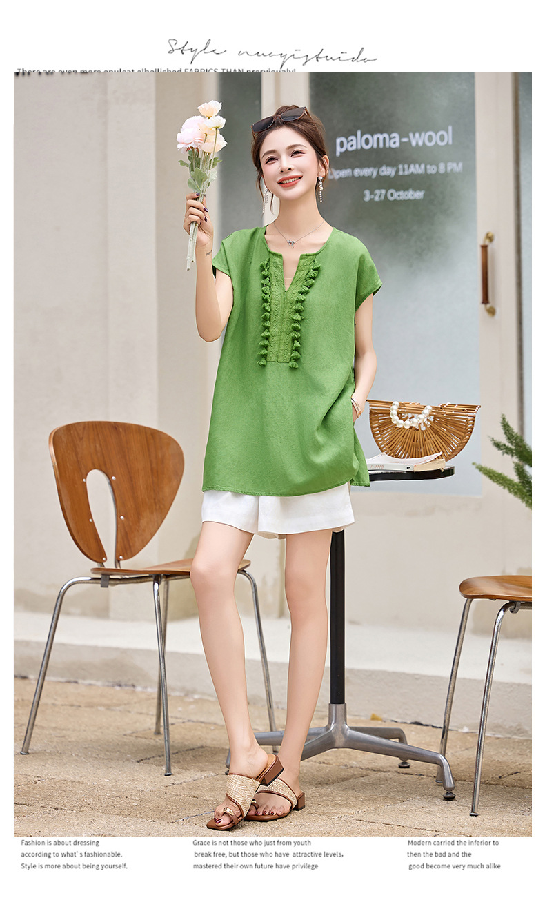 EHJY5090时尚棉麻短裤套装女2025夏季新款宽松气质V领流苏刺绣上衣两件套