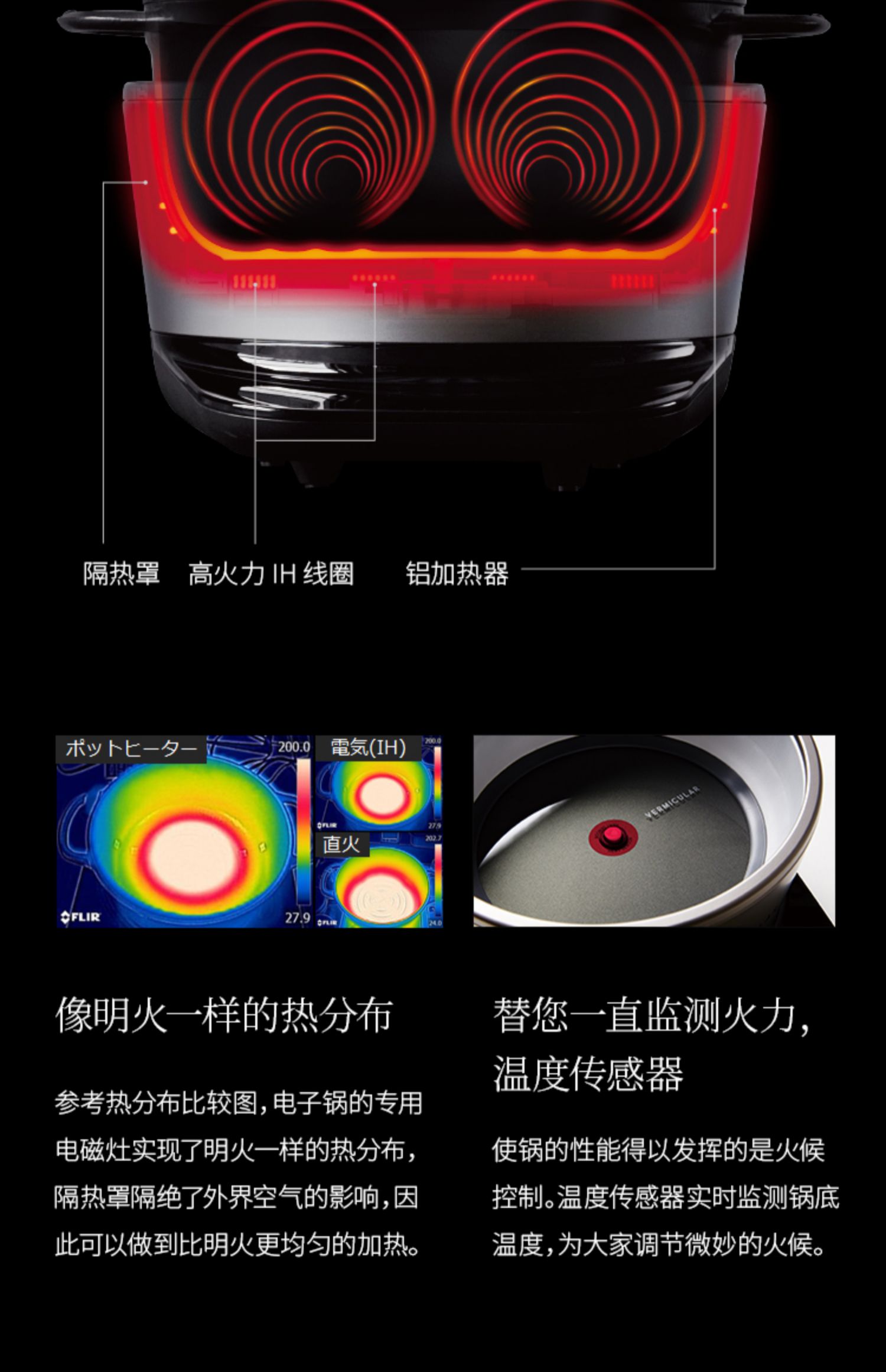 唯米乐 ih铸铁电饭锅原装进口无涂层柴火饭煲蒸饭锅炖煲煎煮