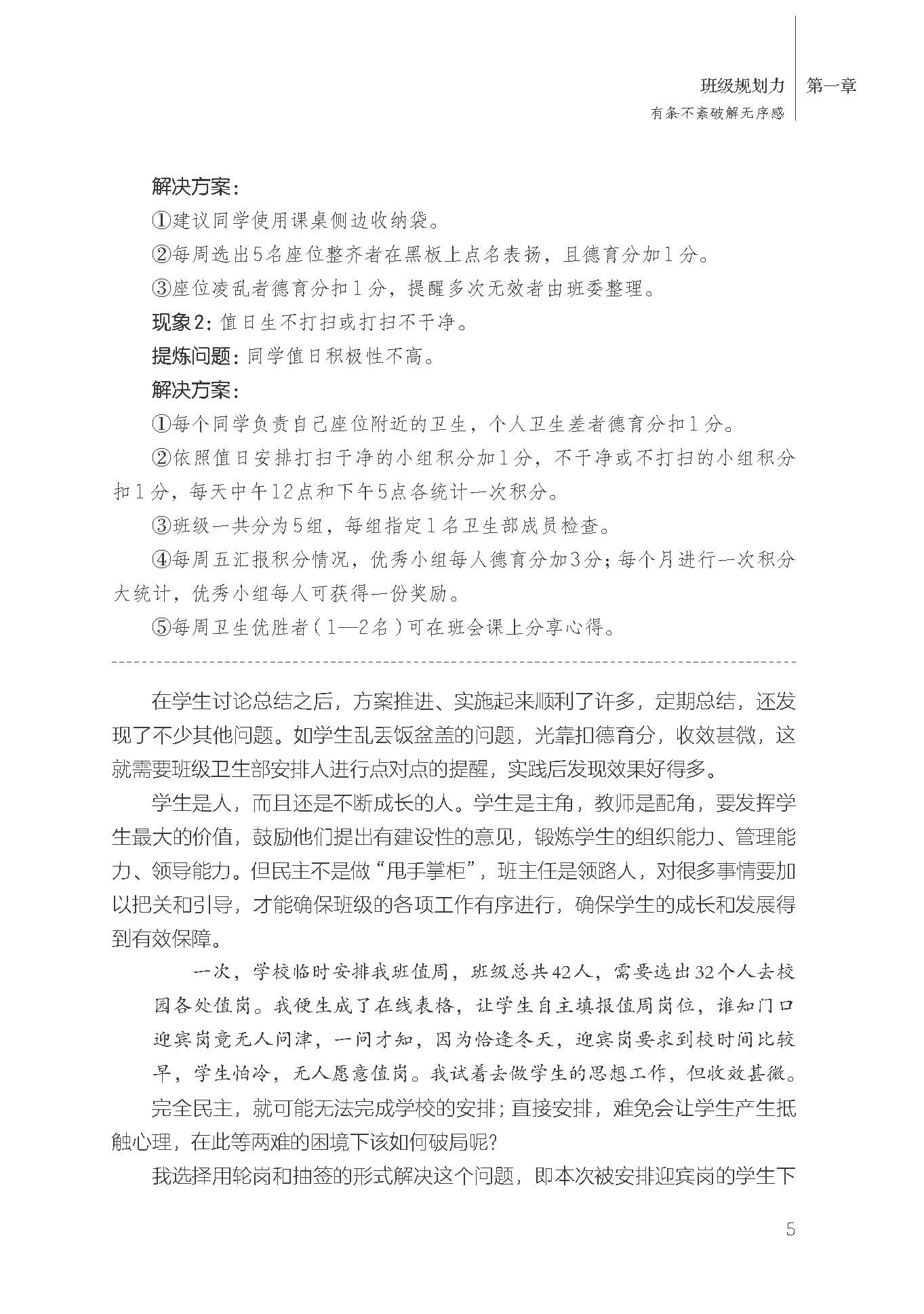 本书以班主任核心能力建设为核心,聚焦班级管理中的关键难题——如学生内驱力激发不足、班级规则执行力低下等痛点问题,系统性地整合了一线教育工作者的实战智慧。作者不仅分享了大量经过验证的管理策略,更创新性地将心理学前沿理论转化为可操作的教育工具,为班主任提供了模块化的“问题解决脚本”。这种理论与实践深度融合的写作方式,使本书犹如一张动态的教育导航图:它既遵循教育学的基本规律,又贴合青少年认知与情感发展的阶段性特征,帮助教育者在复杂多变的班级生态中找到清晰的行动路径。无论是初涉教坛的青年教师,还是渴望突破瓶颈的资深班主任,都能通过这套方法论显著缩短专业成长周期。本书适合一线班主任、教育管理者以及对班级管理感兴趣的教育工作者阅读。