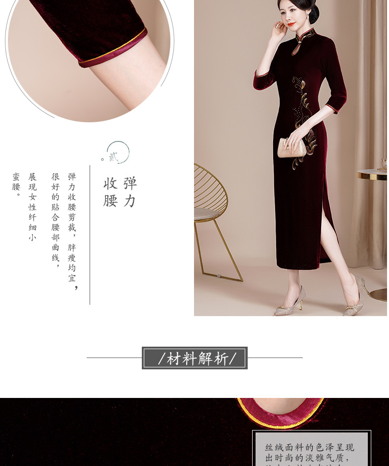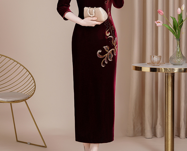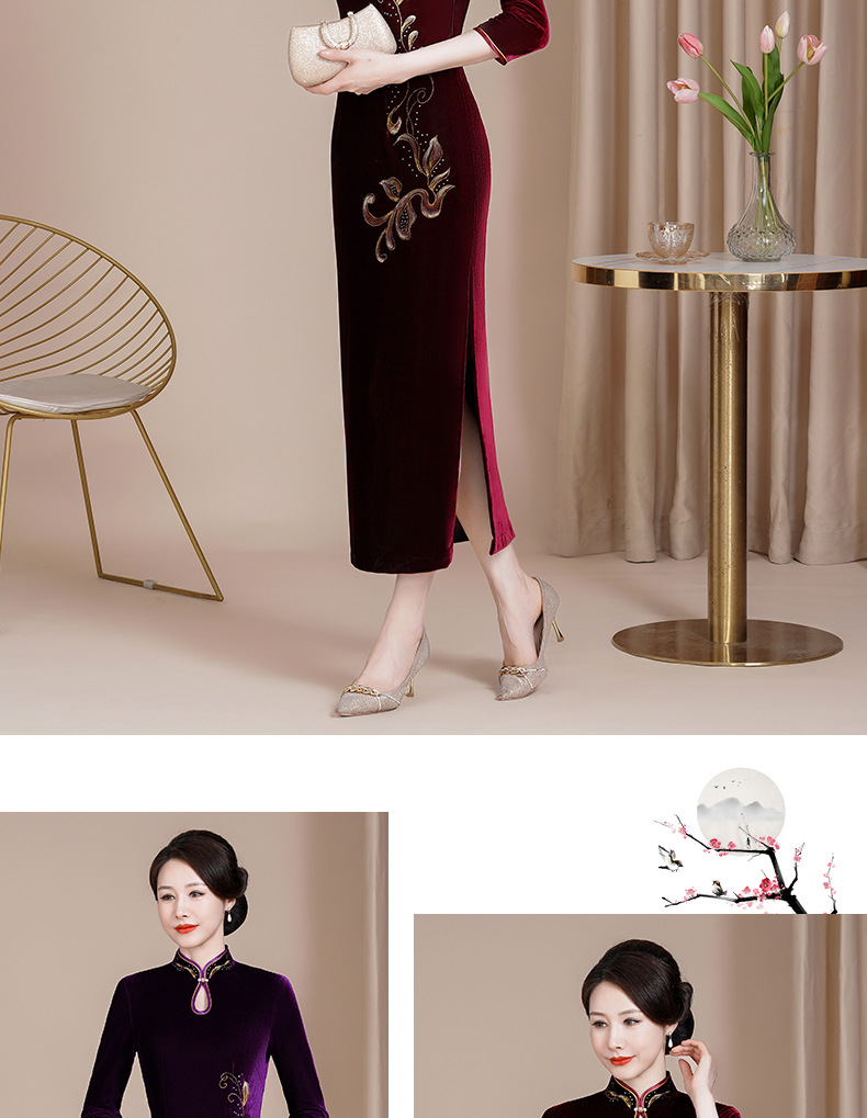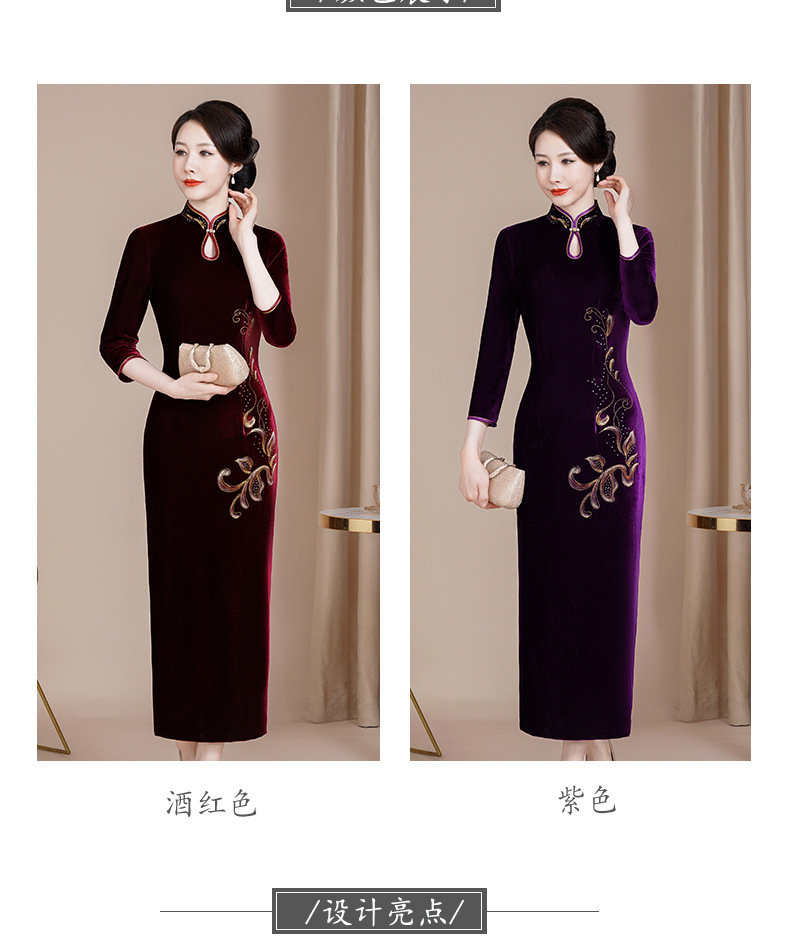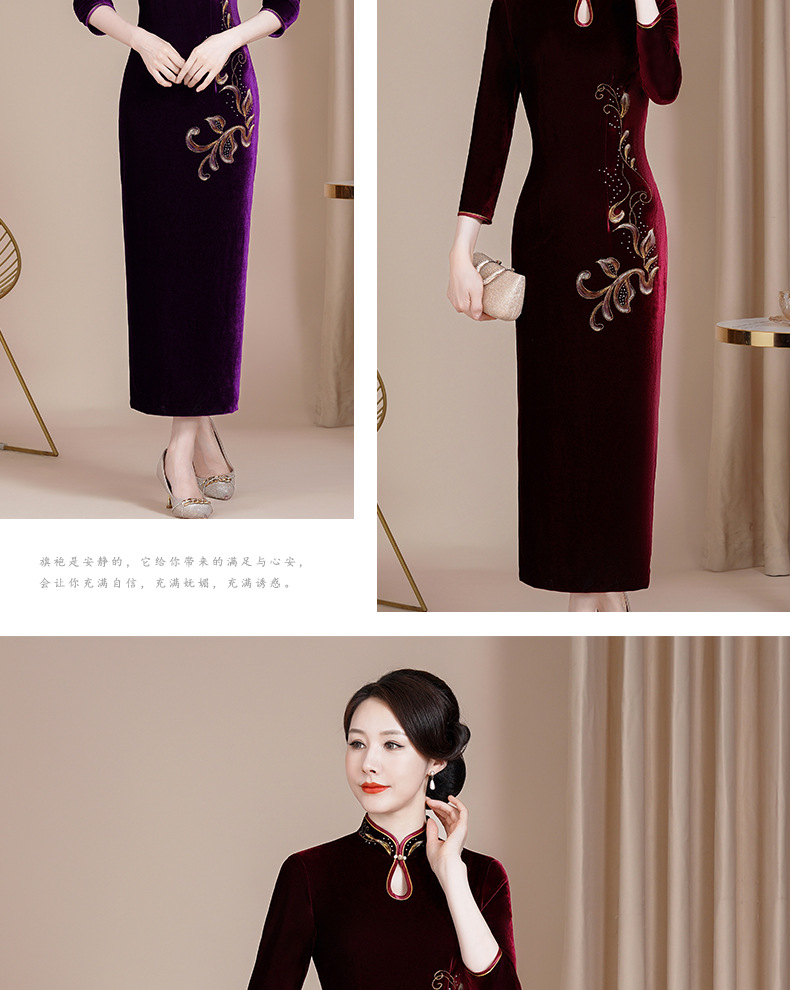 HYX-24-7872新款修身改良丝绒旗袍裙大码喜妈妈婚宴礼服长款喜婆婆