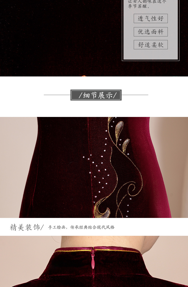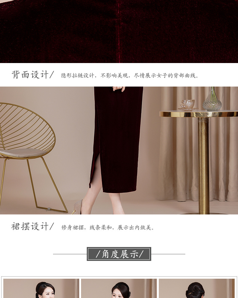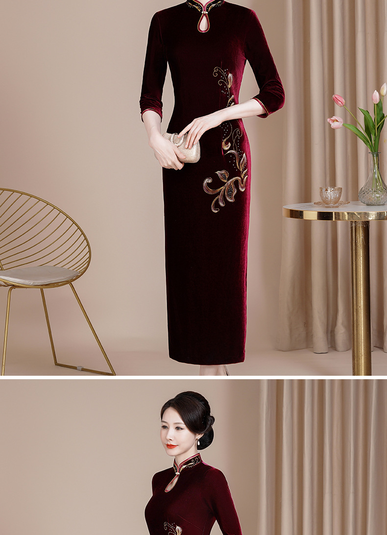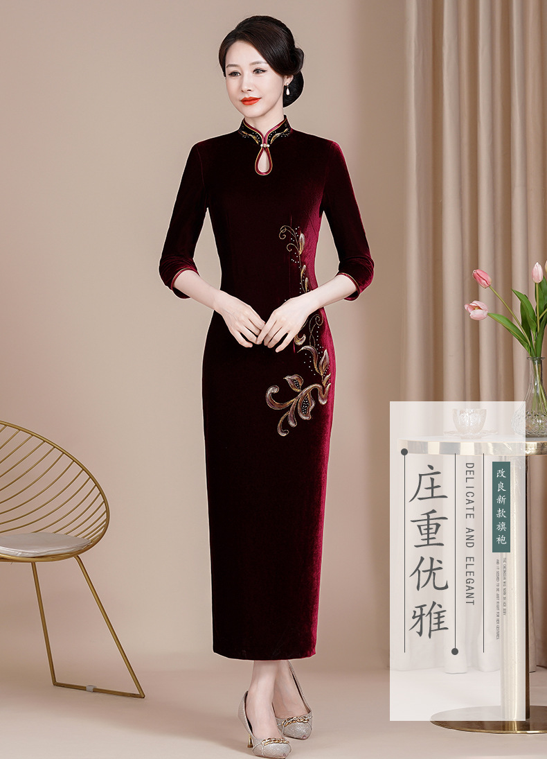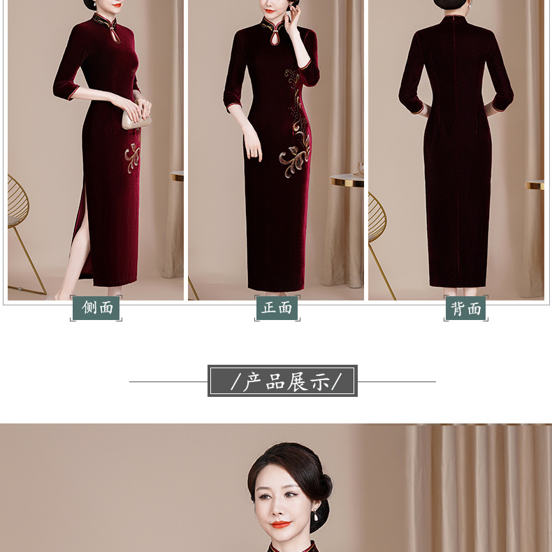HYX-24-7872新款修身改良丝绒旗袍裙大码喜妈妈婚宴礼服长款喜婆婆