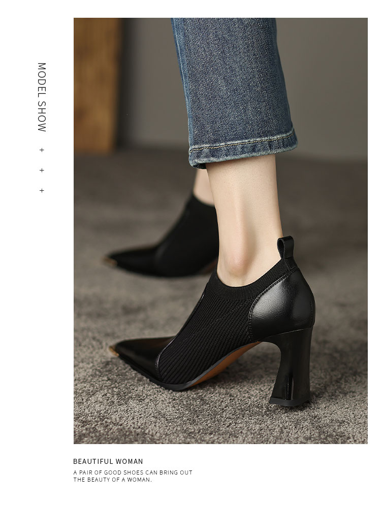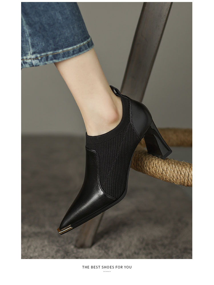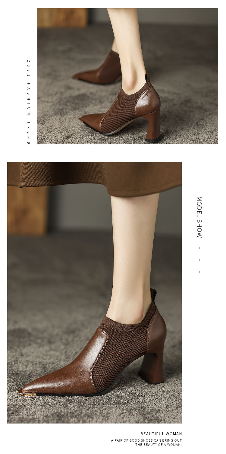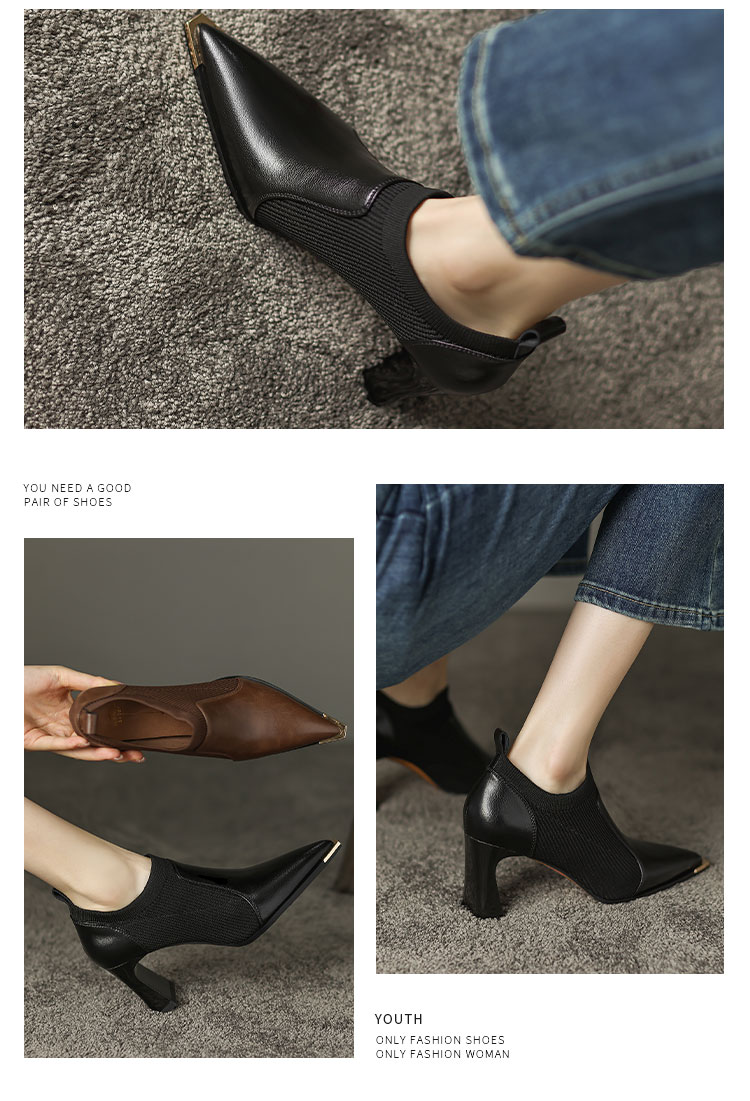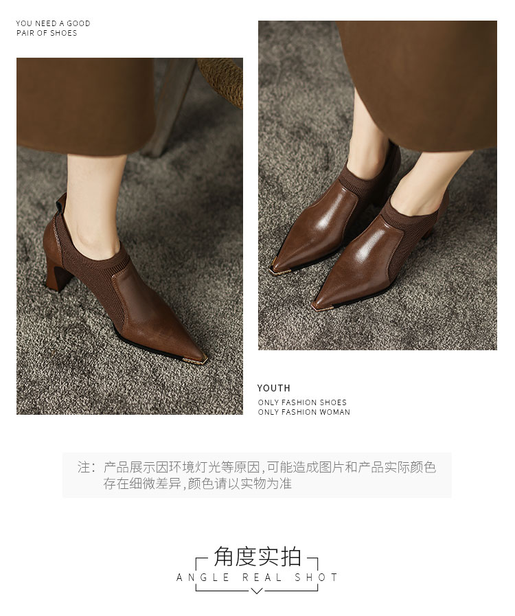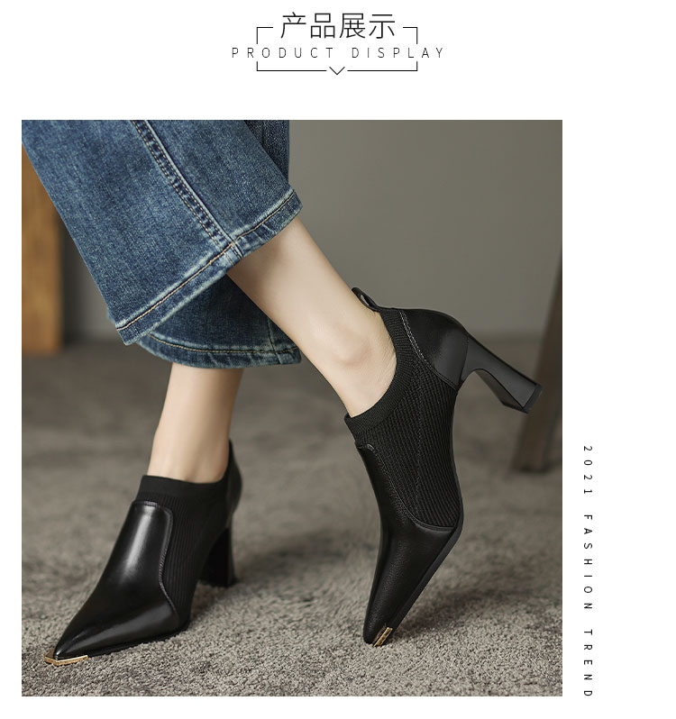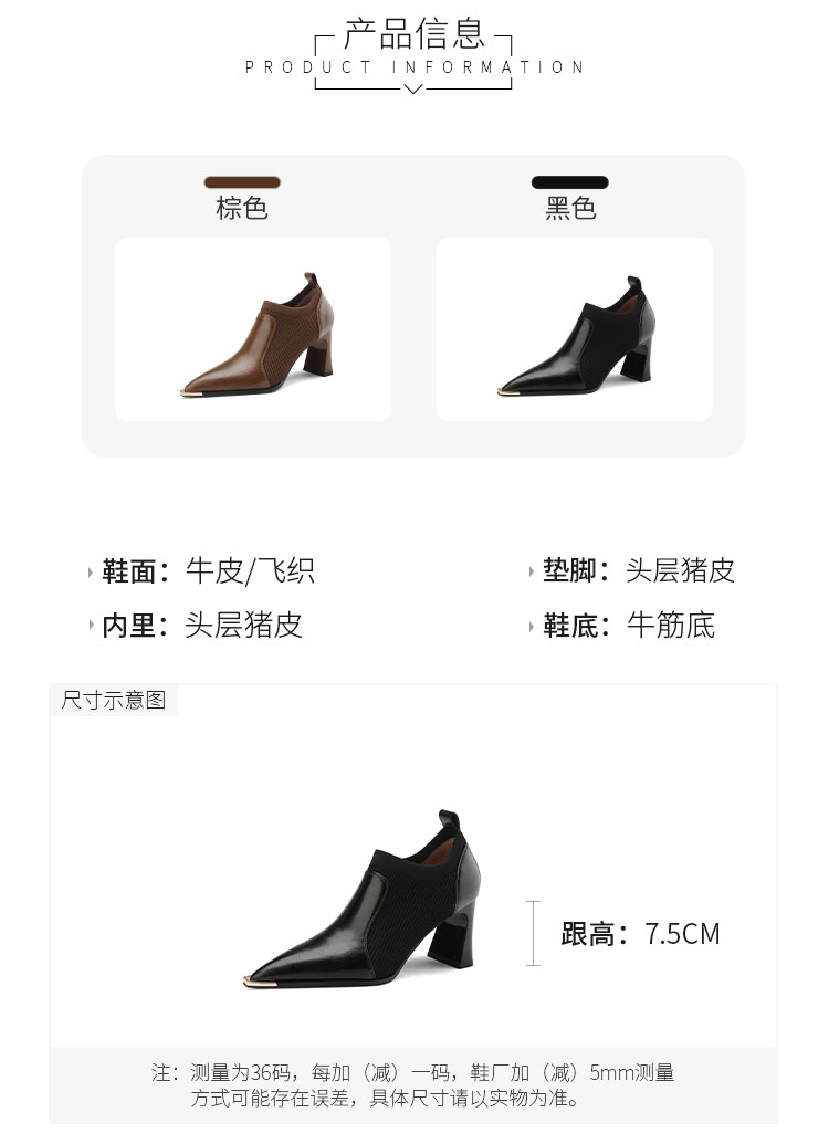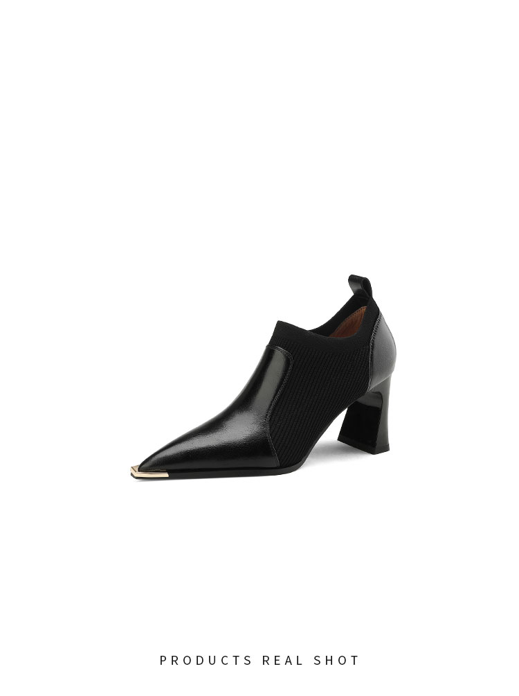 春季新款,里外全皮尖头拼接高跟深口单鞋HCY-K3298