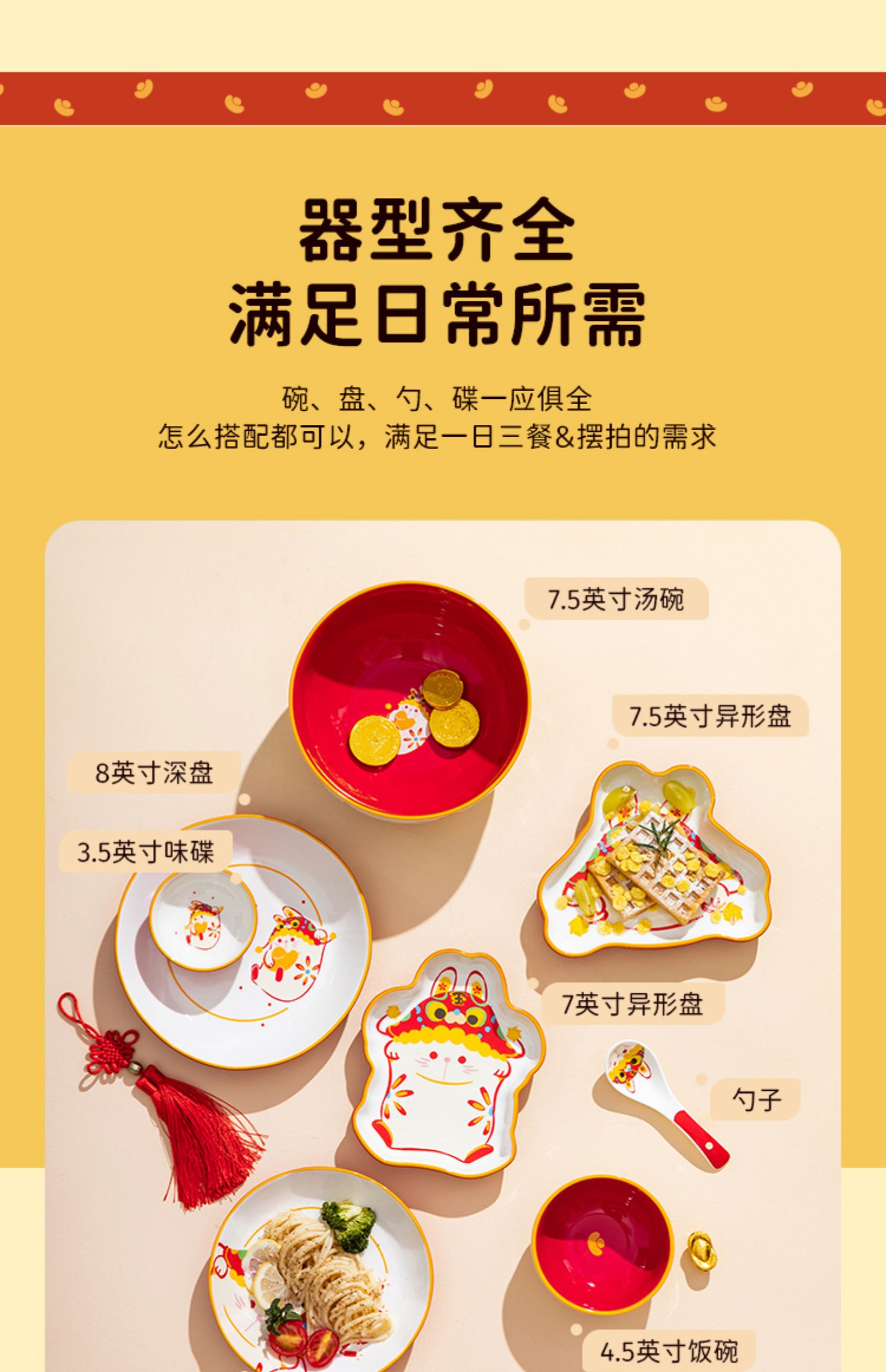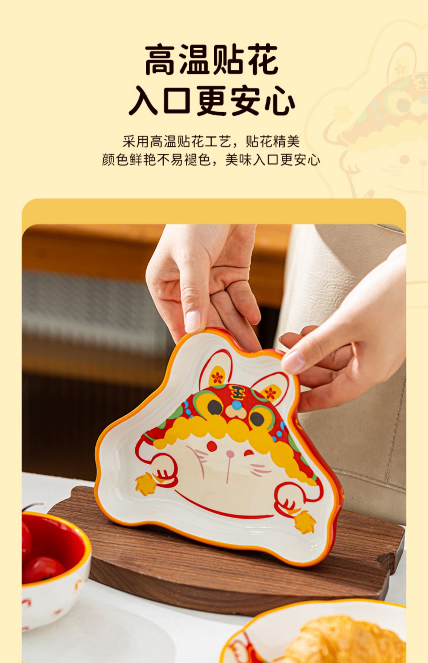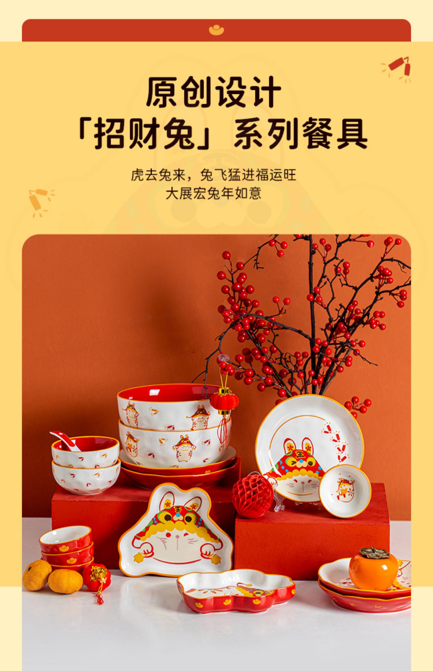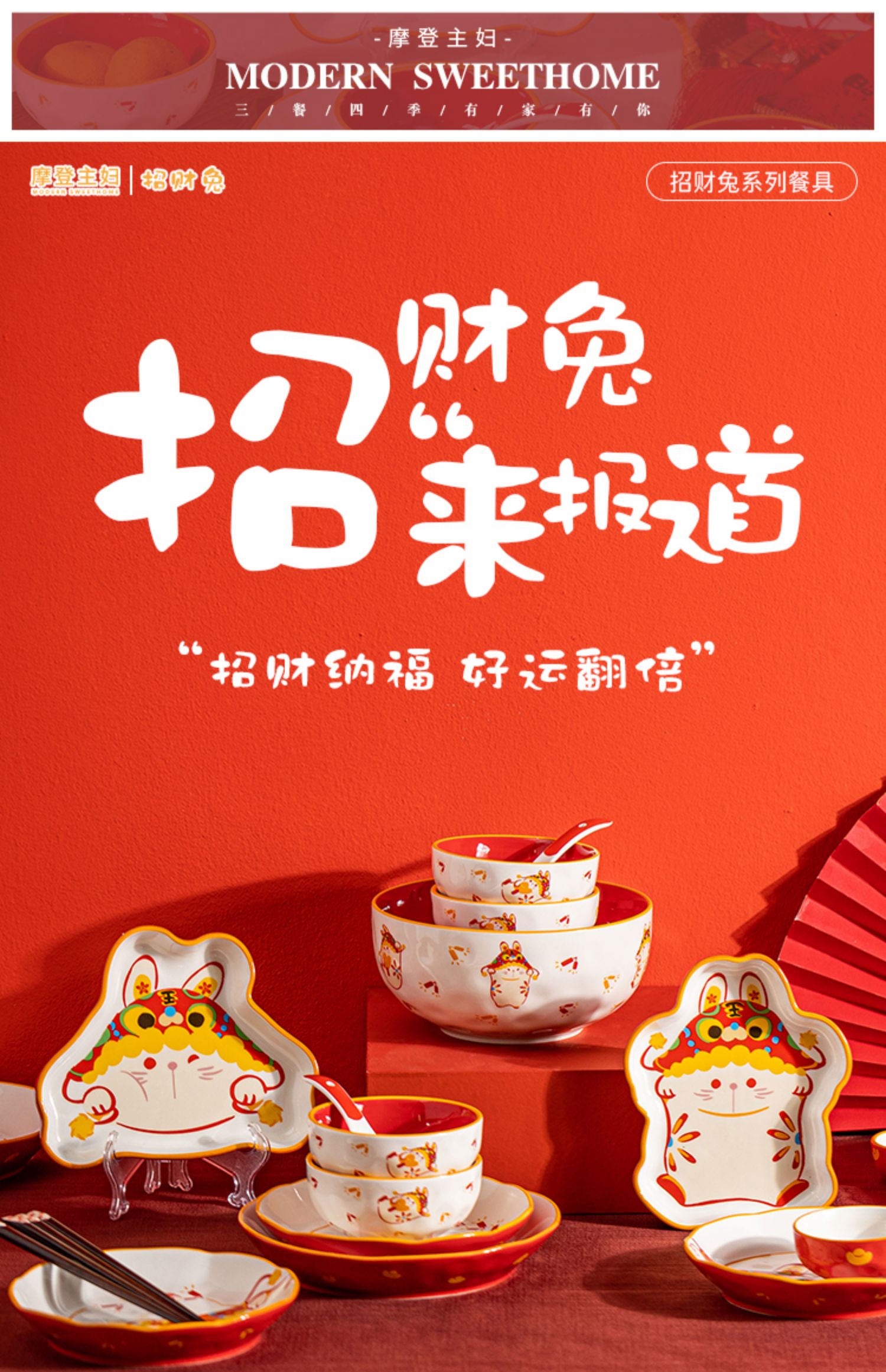 【摩登主妇&兔年限定】碗盘餐具可爱陶瓷饭碗碟套装新年家用汤碗