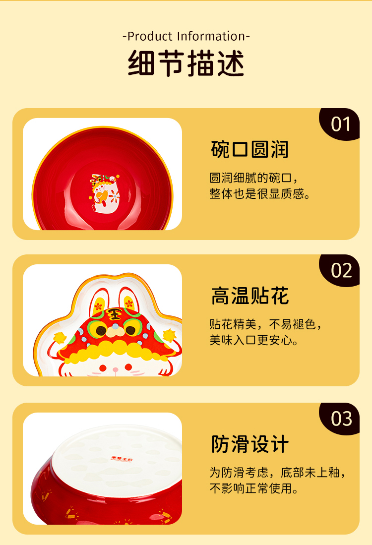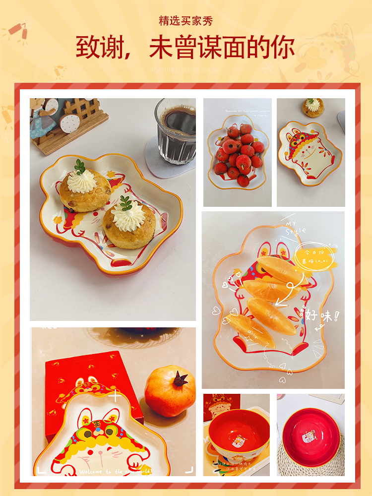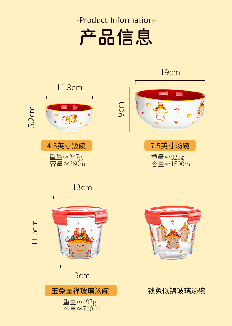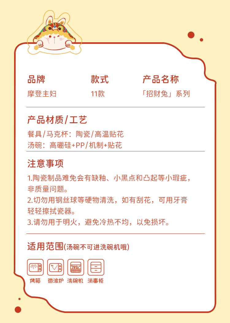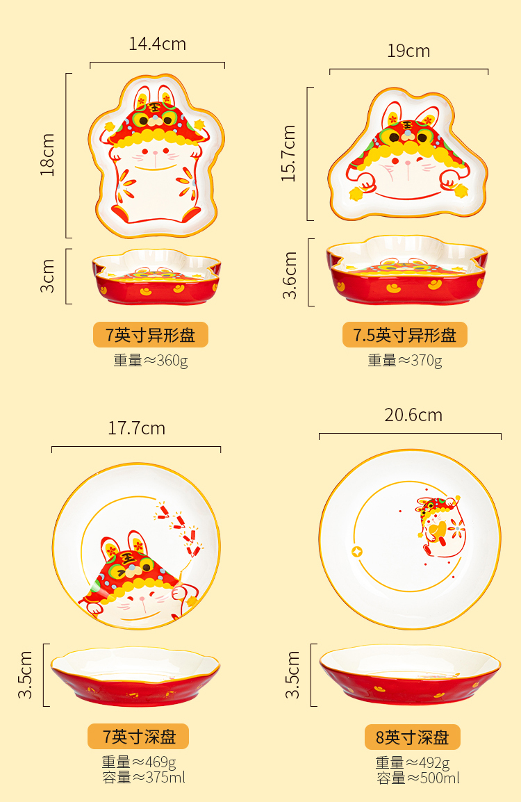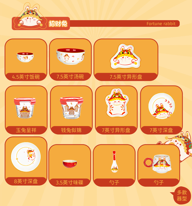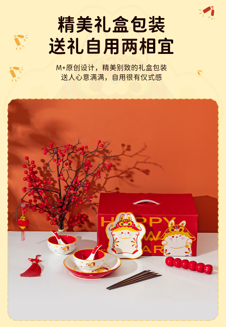 【摩登主妇&兔年限定】碗盘餐具可爱陶瓷饭碗碟套装新年家用汤碗