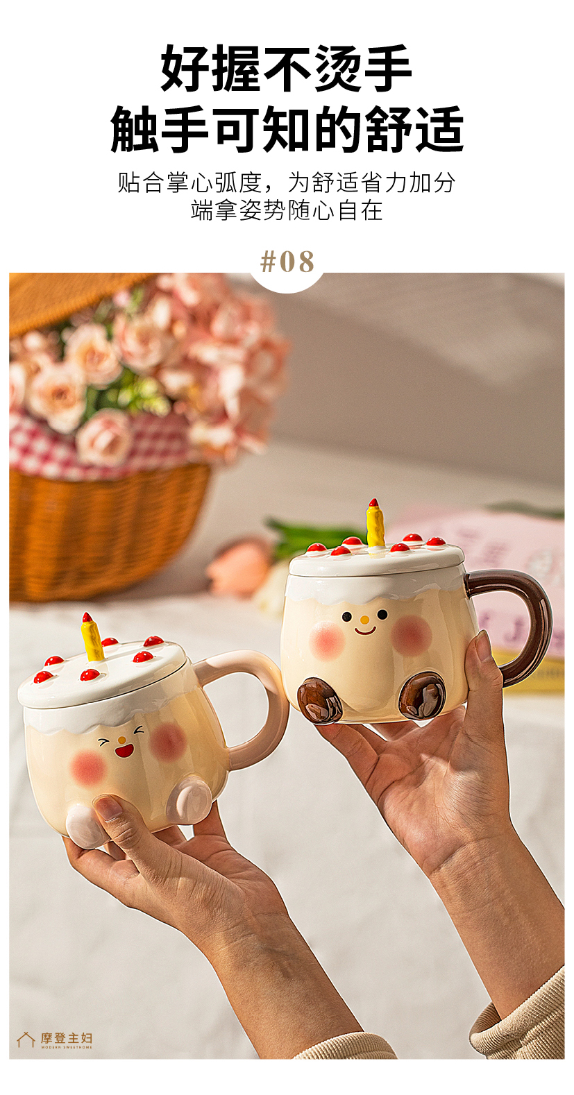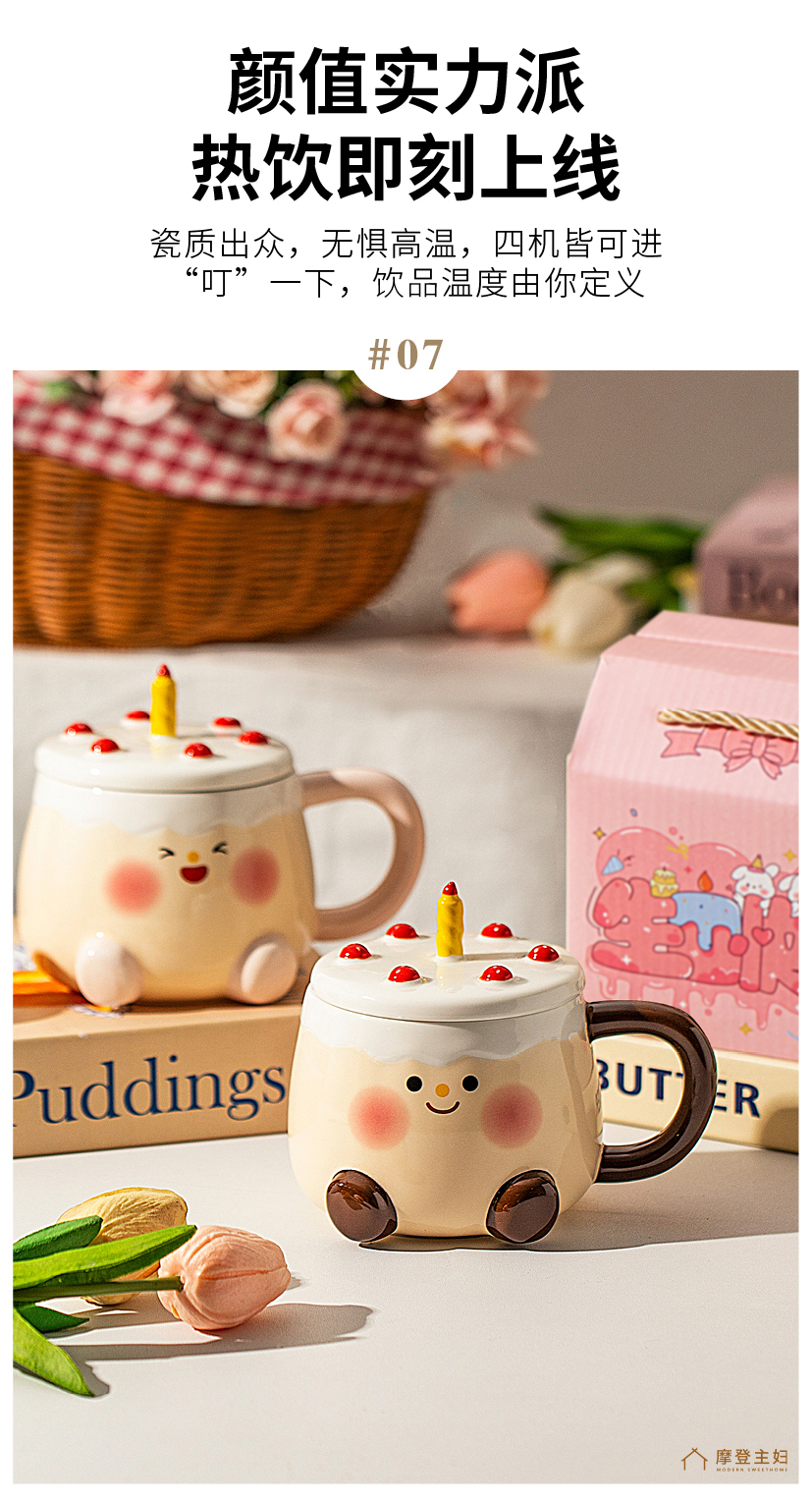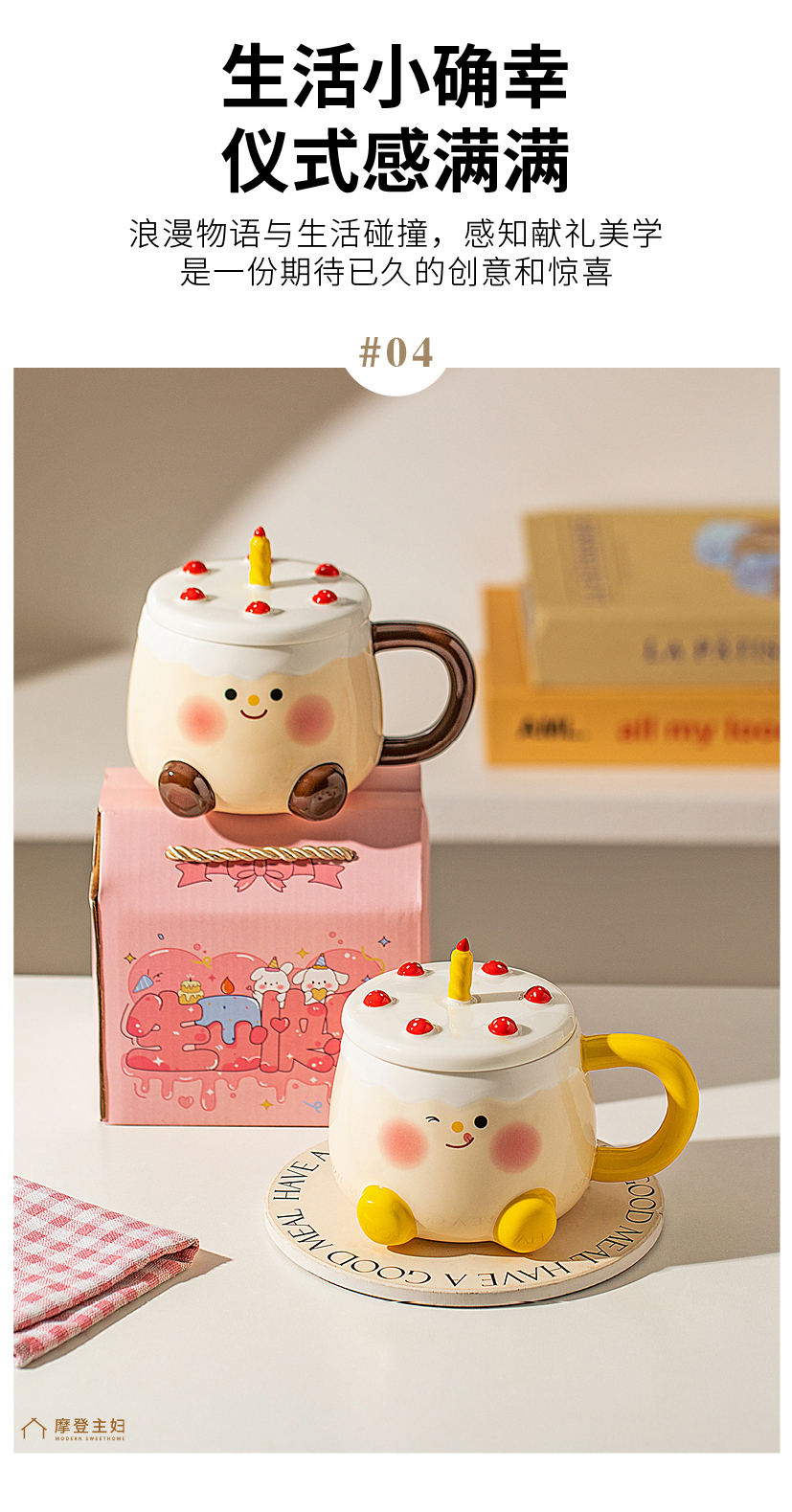 摩登主妇生日礼物杯子带盖高颜值喝水杯家用陶瓷杯可爱马克杯礼盒