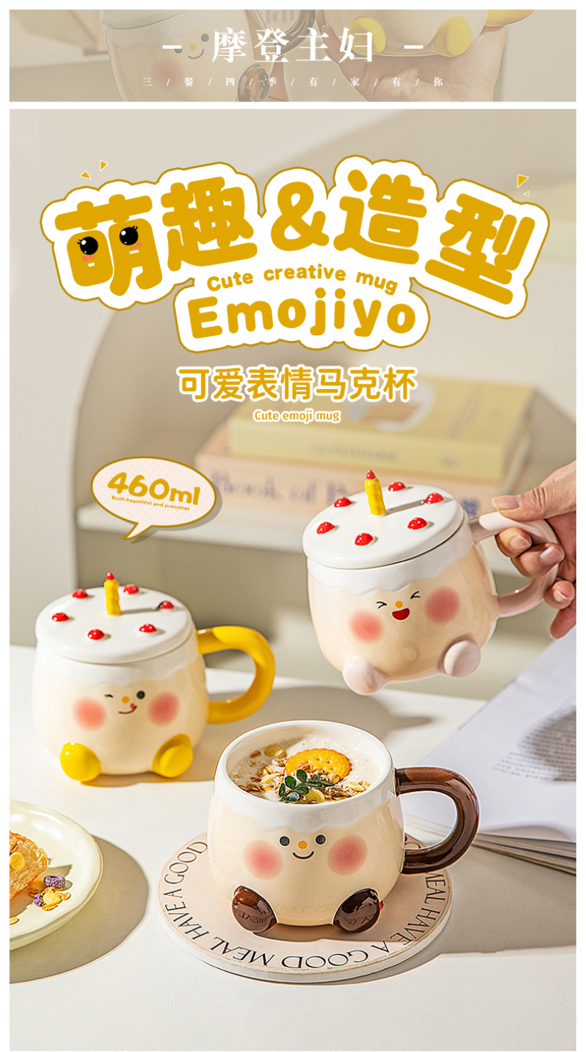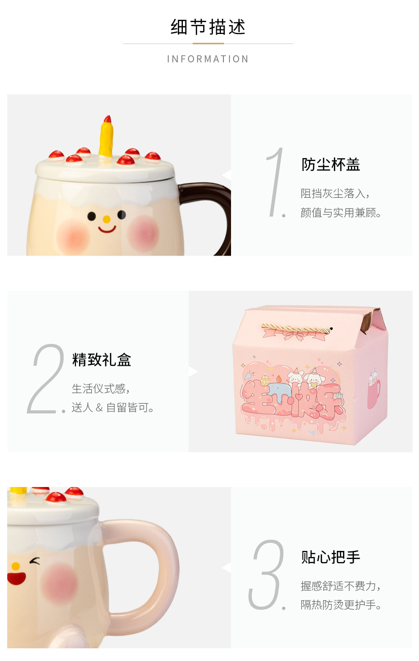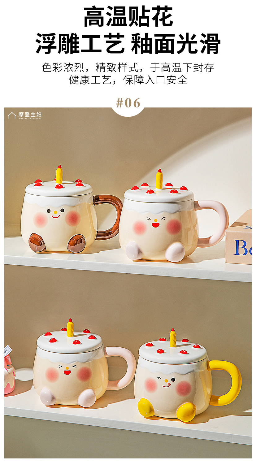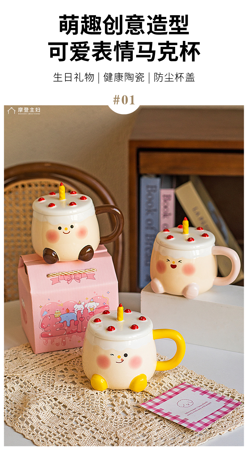 摩登主妇生日礼物杯子带盖高颜值喝水杯家用陶瓷杯可爱马克杯礼盒