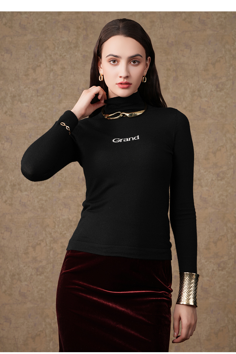 【山羊绒】【两色可选】乔万尼秋冬新品重磅山羊绒保暖亲肤高级感简约字母显瘦羊毛衫ES4M437