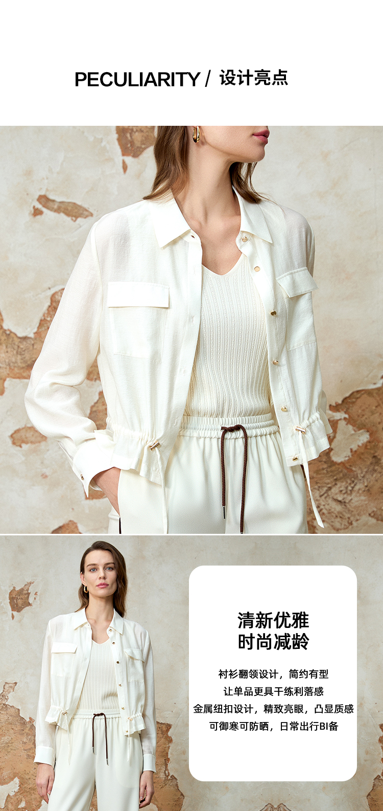 EITIE爱特爱简约时尚通勤百搭收腰短款休闲外套夏季新款8203906