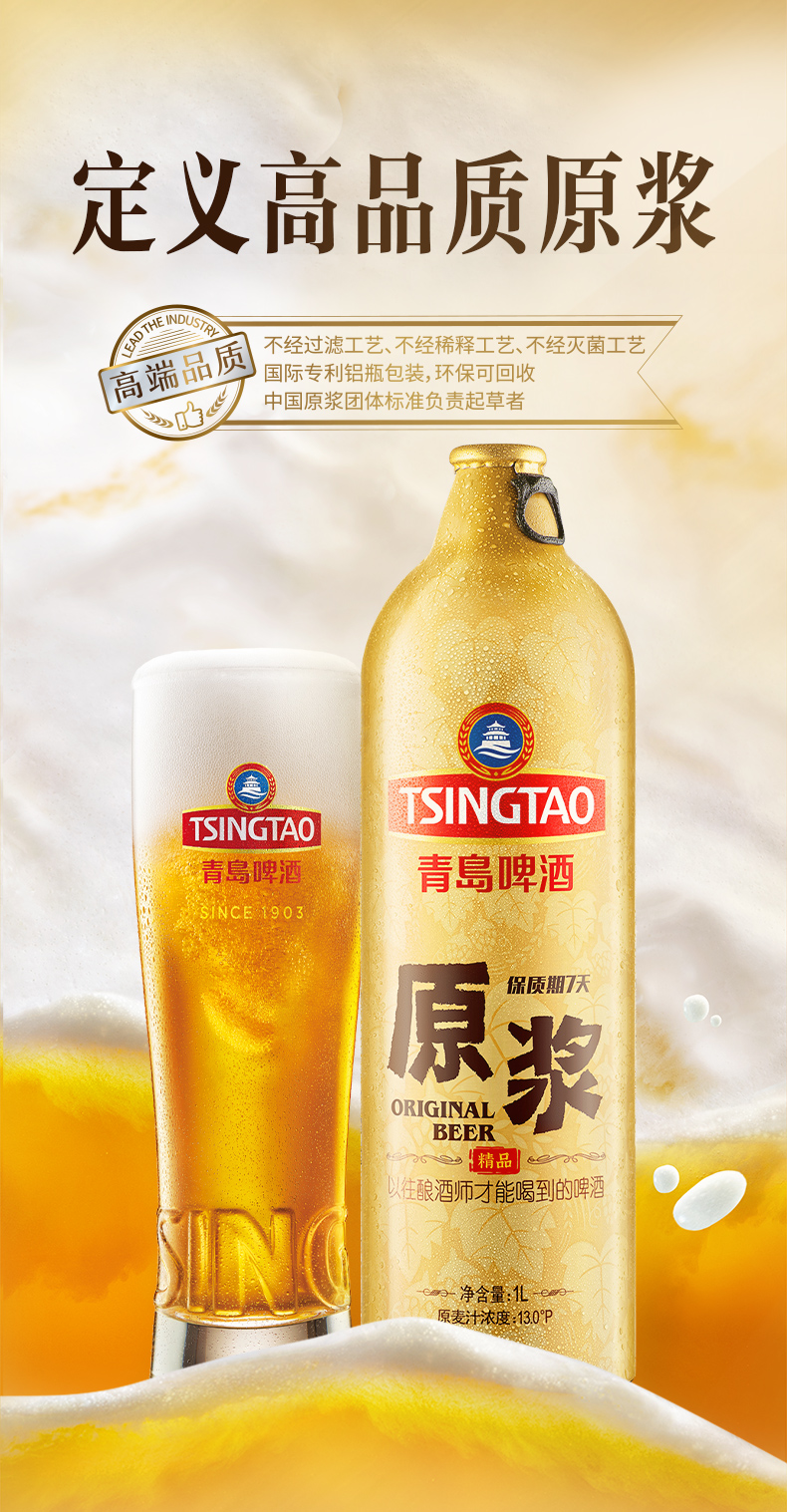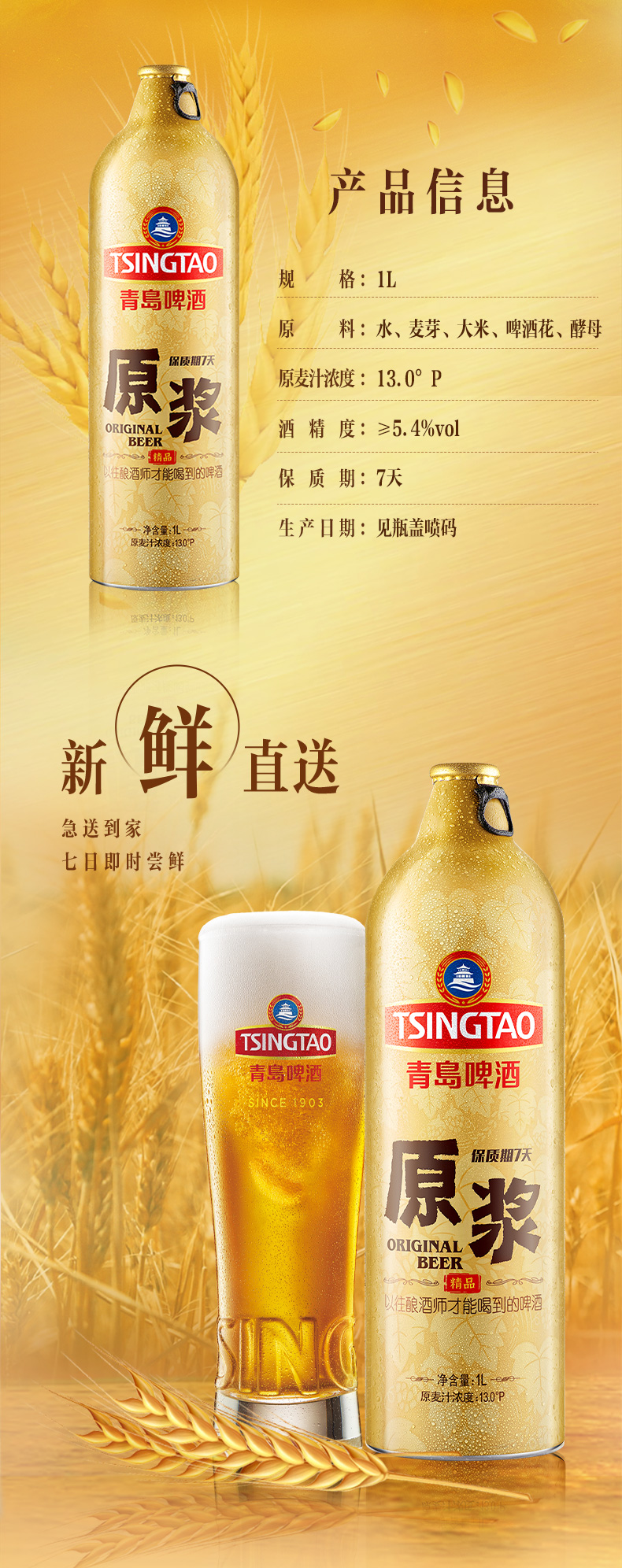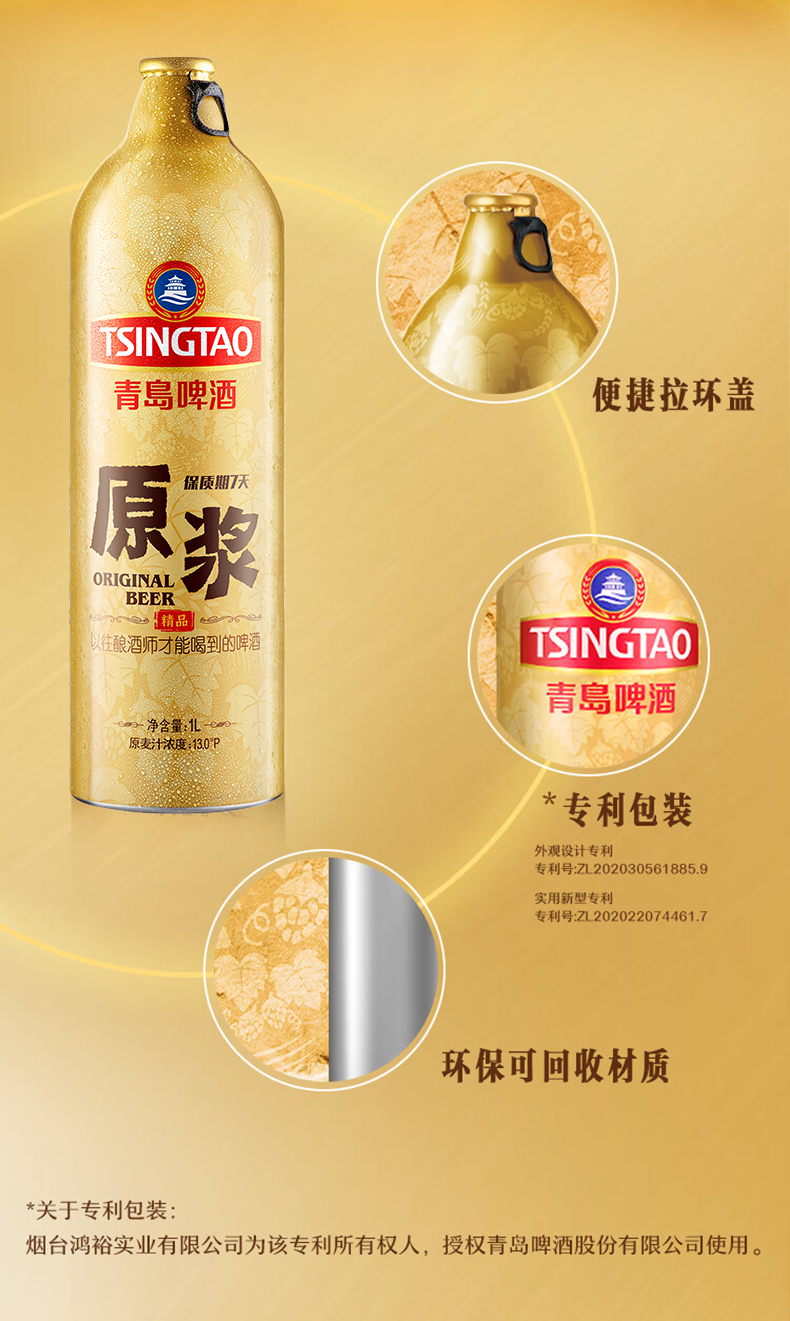 【新鲜上市】青岛啤酒原浆1L*4桶啤