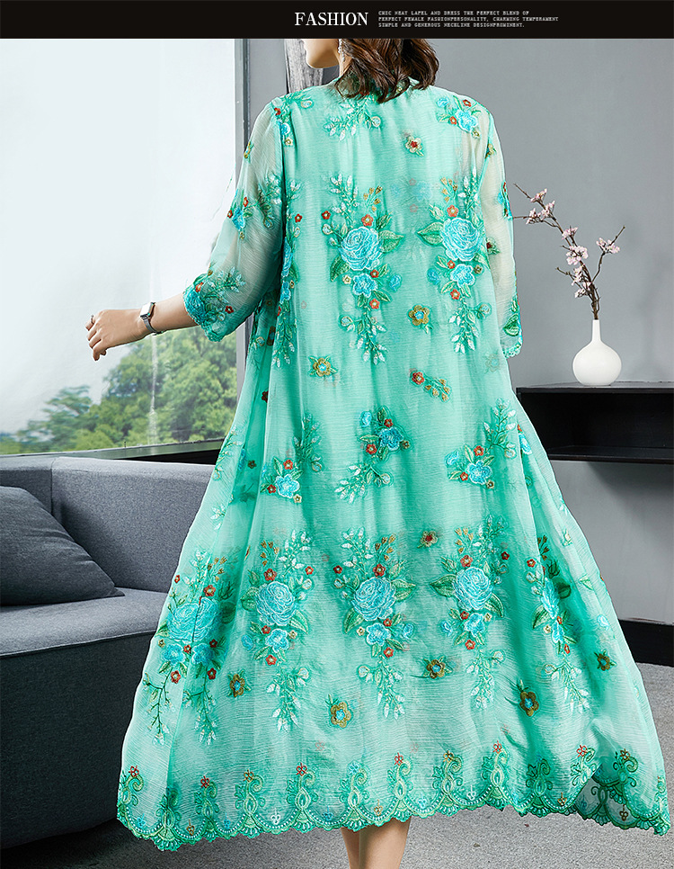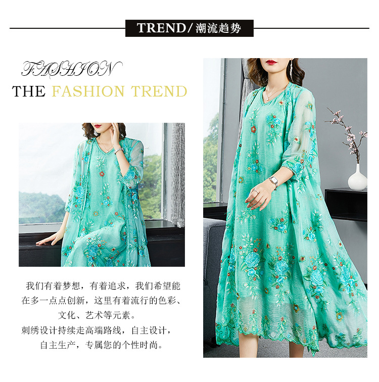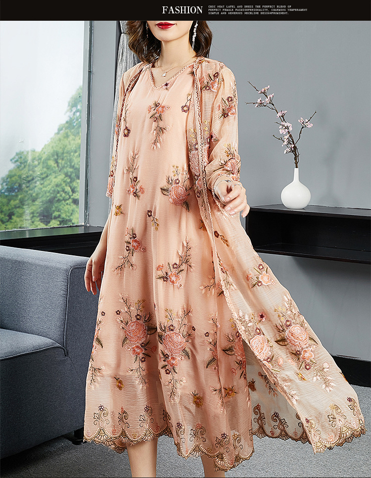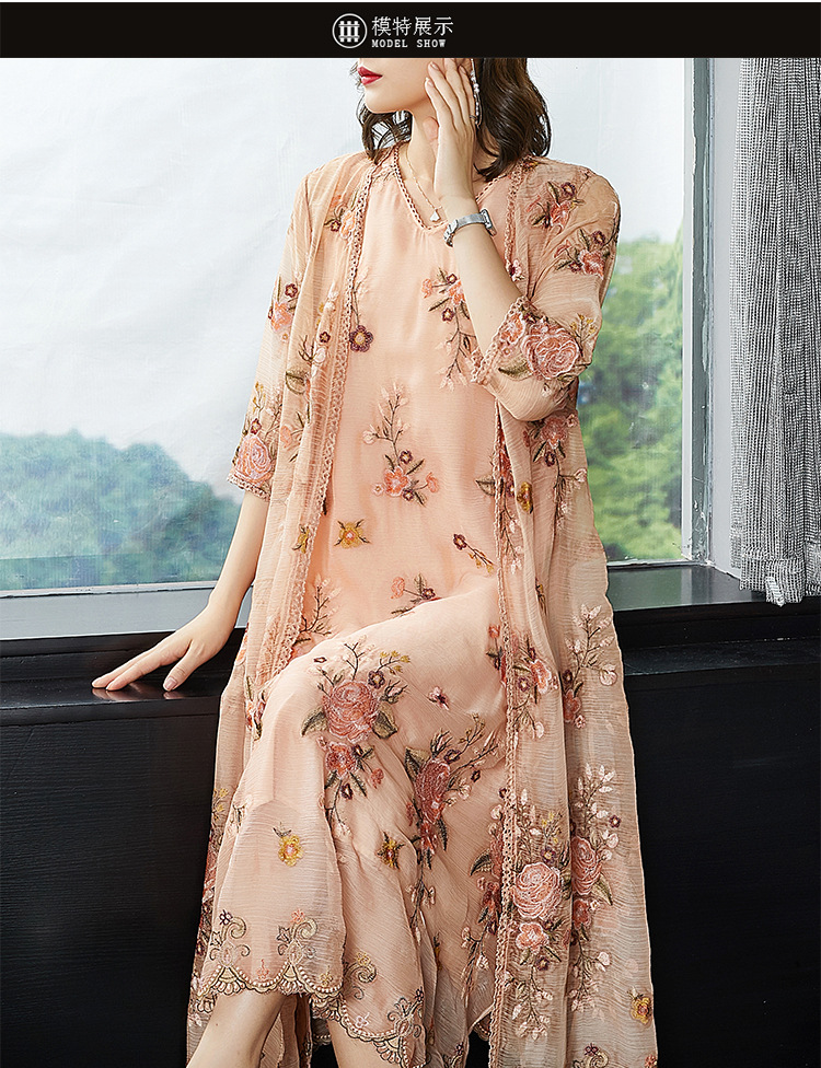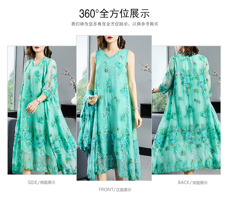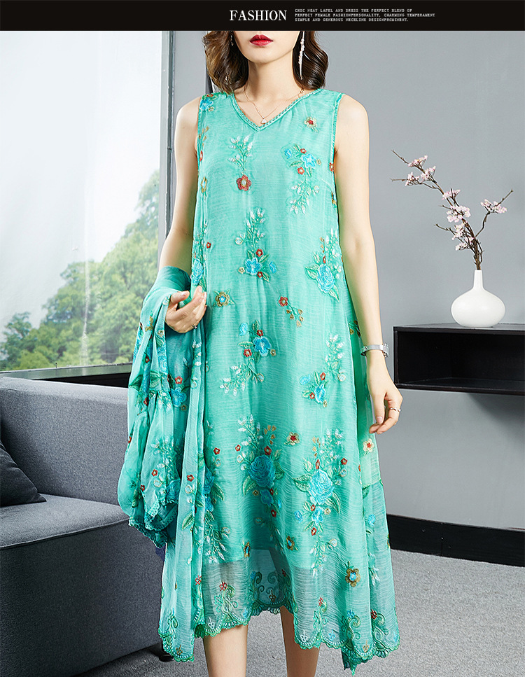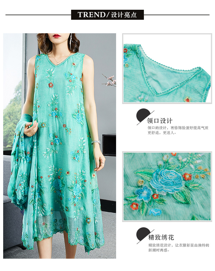 SM-SM20277夏季新款宽松绣花圆领无袖连衣裙外披两件套