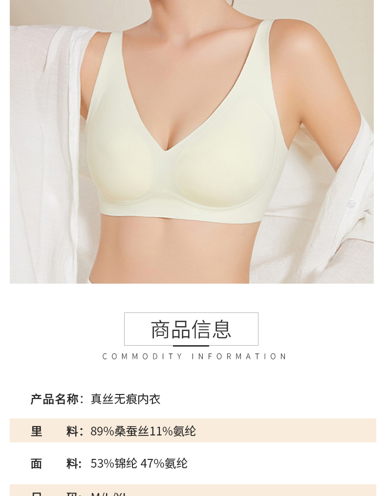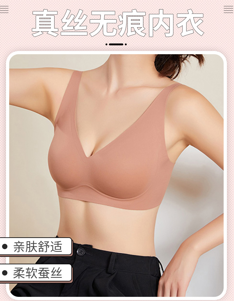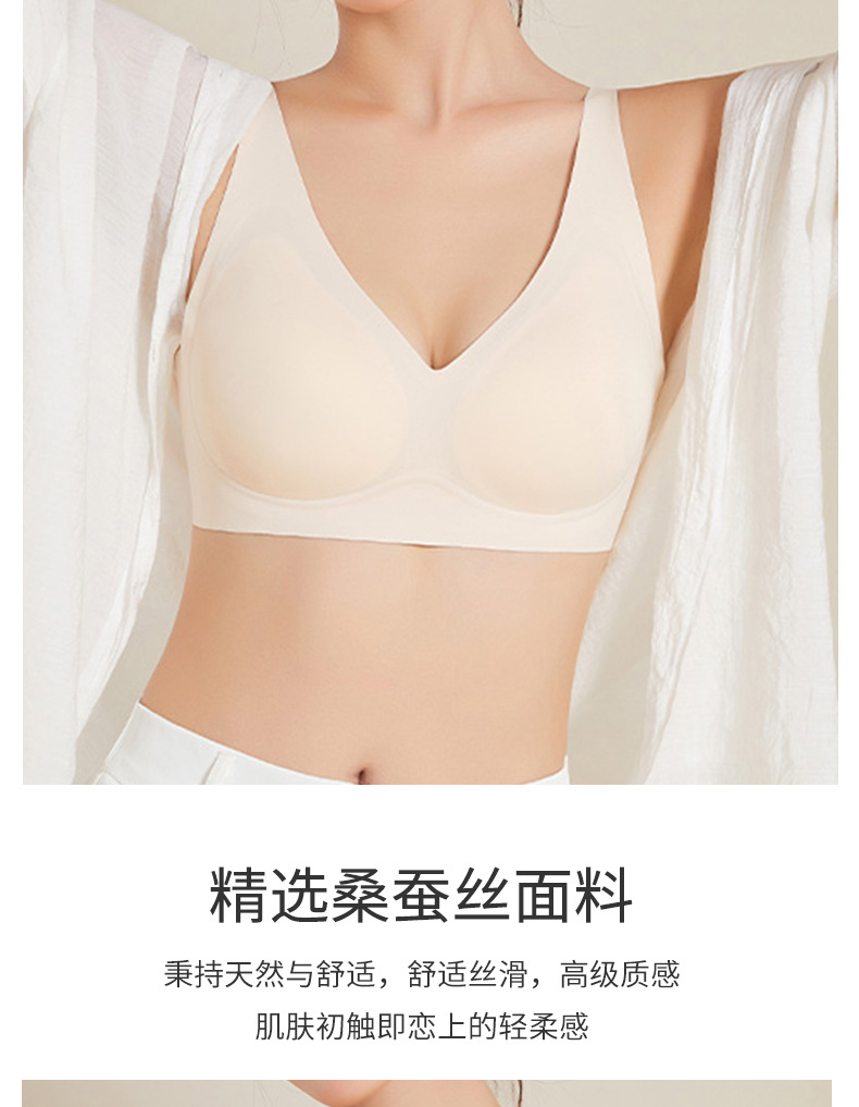 丁摩新款真丝无痕女文胸桑蚕丝无钢圈内衣大胸显小舒适透气胸罩AL300147