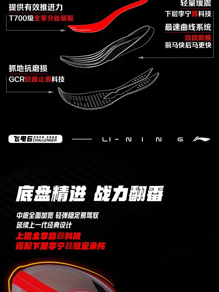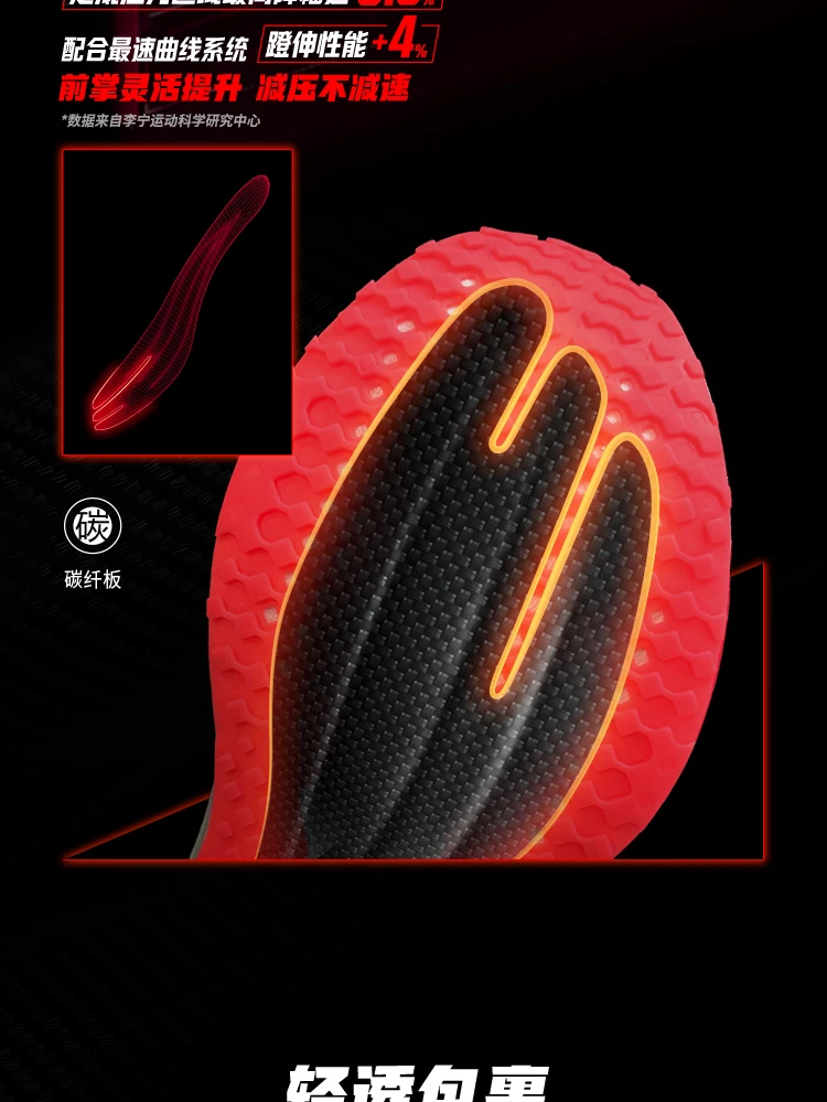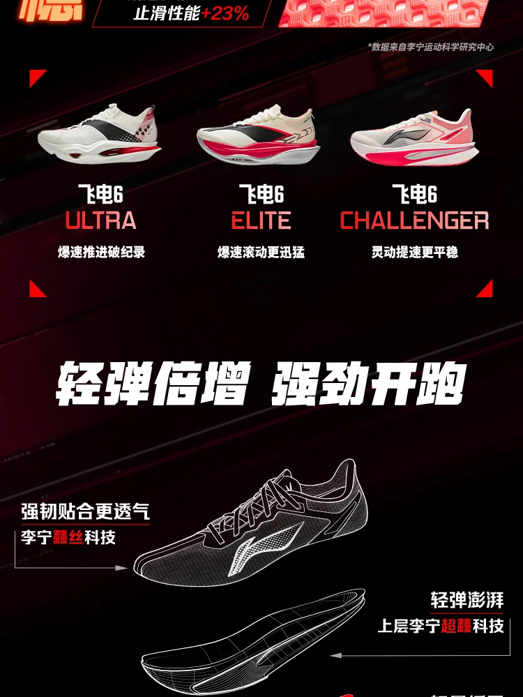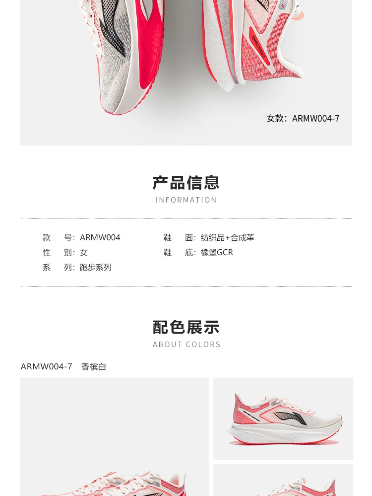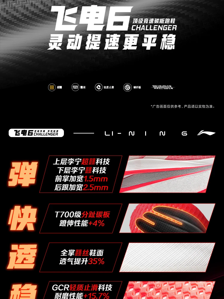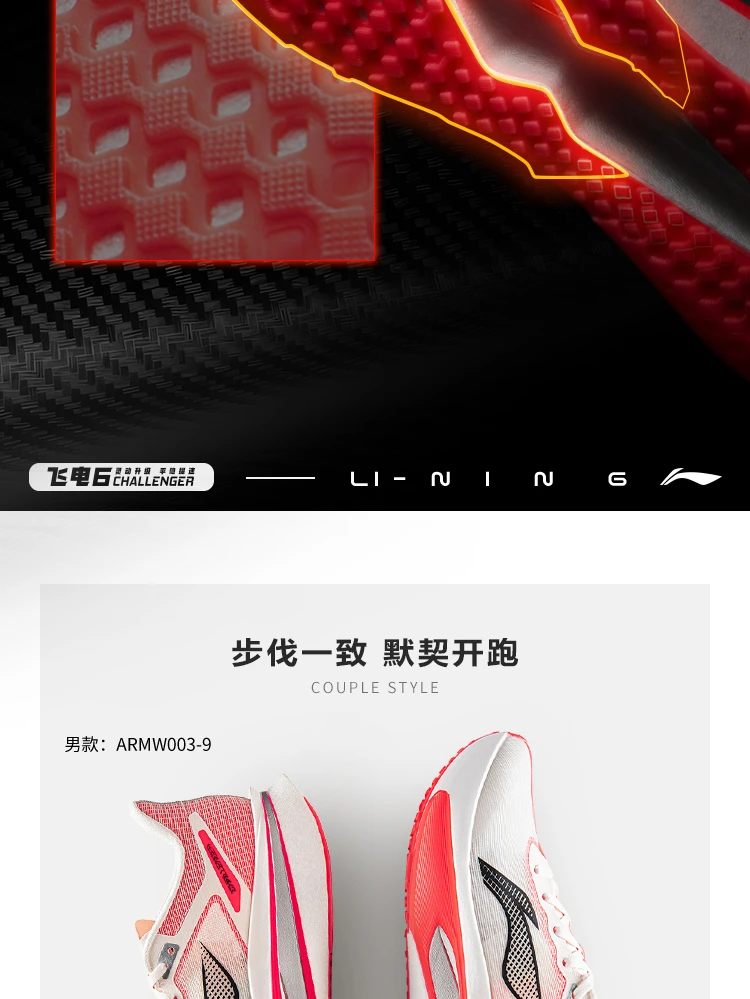 李宁飞电6 CHALLENGER女子䨻丝反光轻量高回弹竞速比赛跑鞋ARMW004
