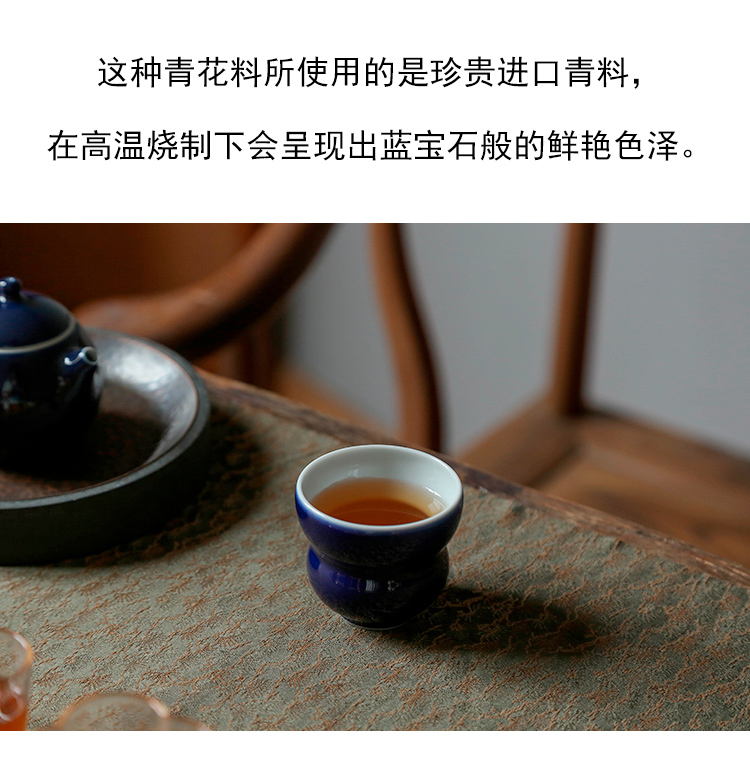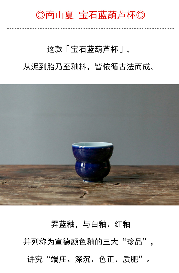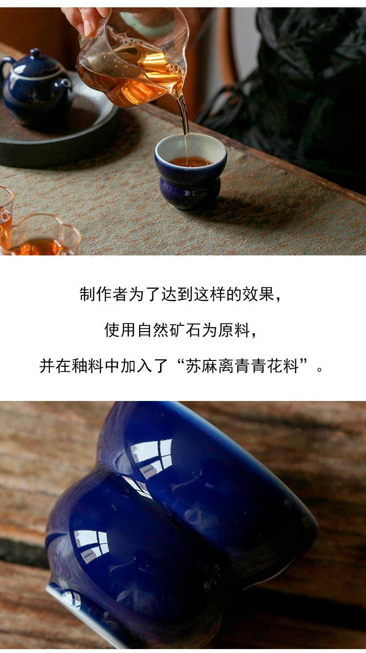 茶香记 南山夏 宝石蓝葫芦杯 肥腴润泽 持握趁手 功夫茶具 茶杯