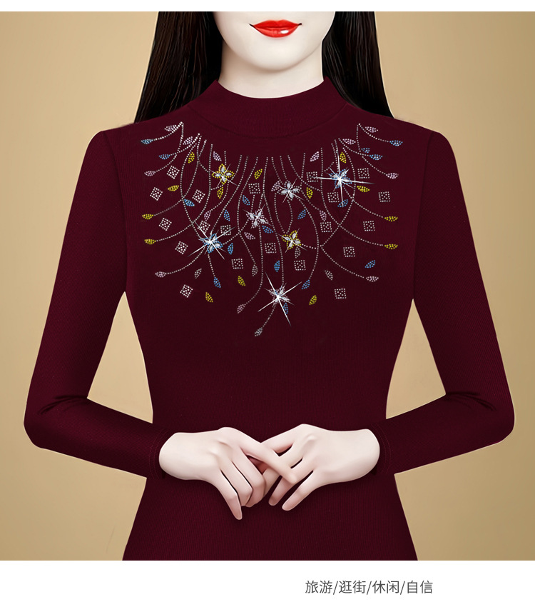 KQL C20N179洋气修身显瘦打底衫半高领上衣气质纯色