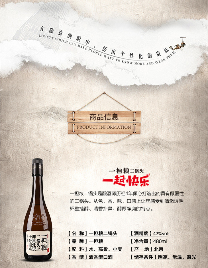 【百汇到家】乐享美酒一担粮老北京二锅头 42度 清香型白的酒 480ml一支