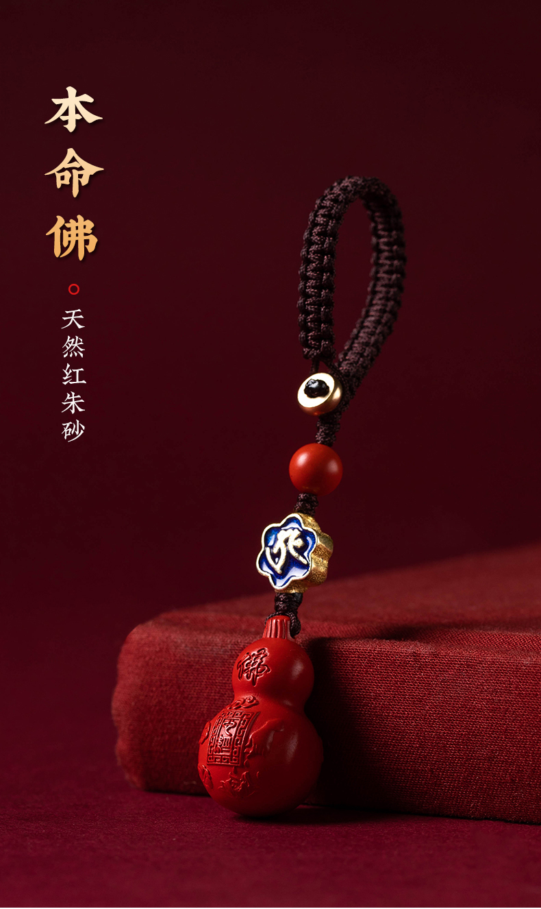 2-4天然朱砂吊坠本命年福禄葫芦钥匙扣男女款本命佛挂件手机链