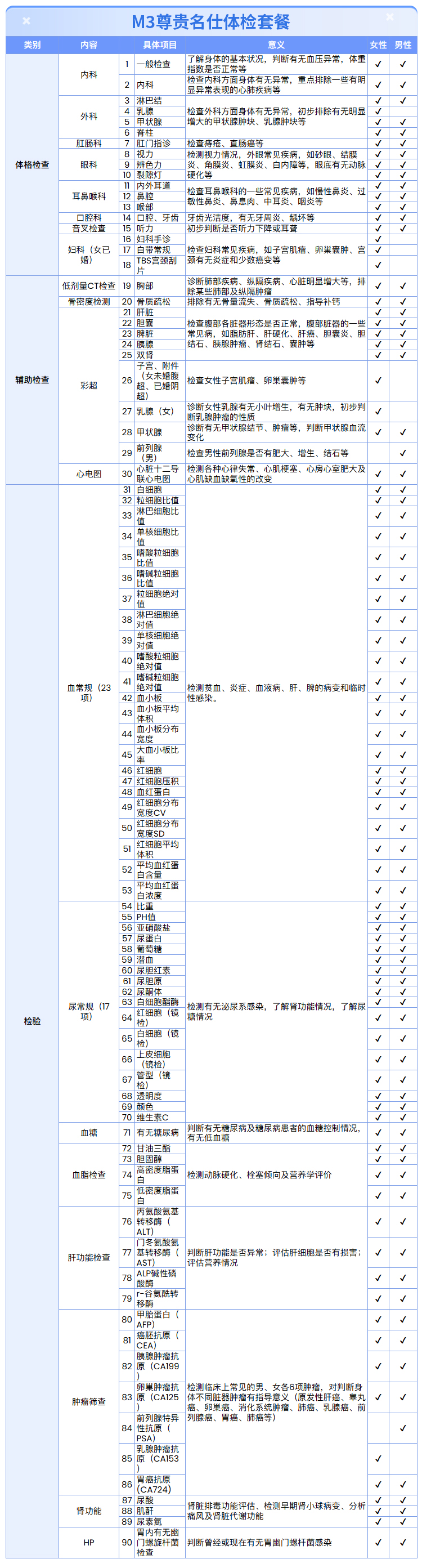 【中青年|优选强化】含胸部CT+骨密度+七彩超+肝功四项+肿瘤六项 M3