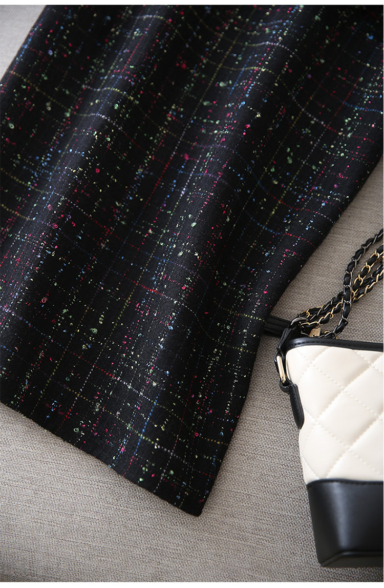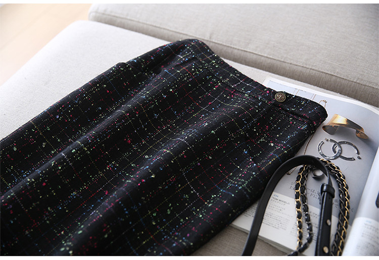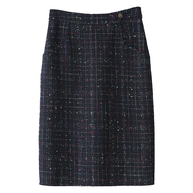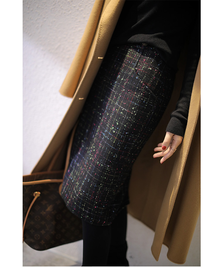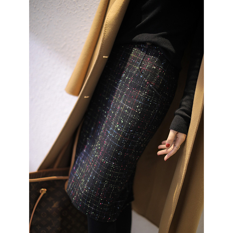 百媚生 毛呢格子半身裙女高腰显瘦包臀裙W26Q6B0066