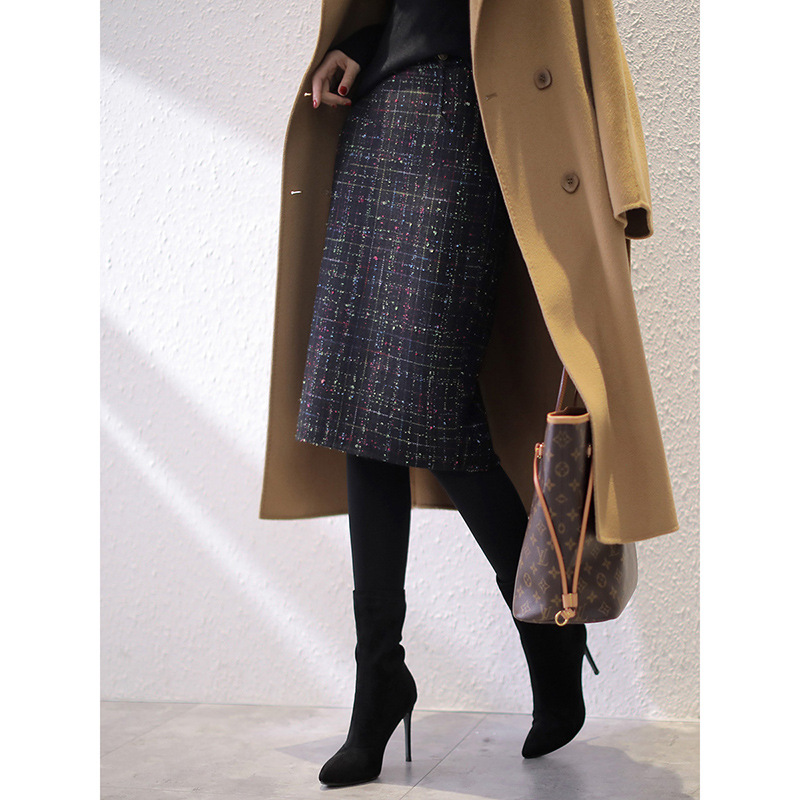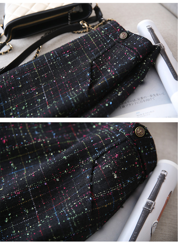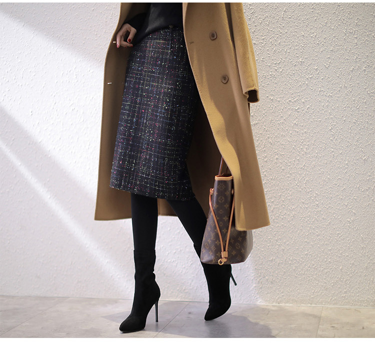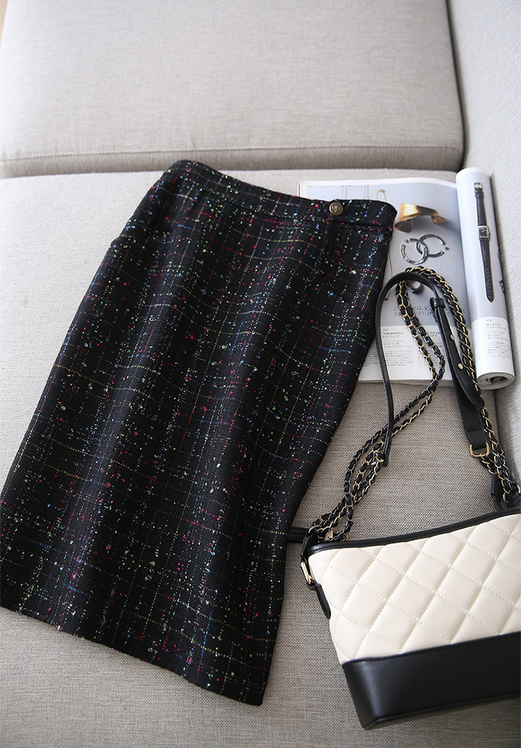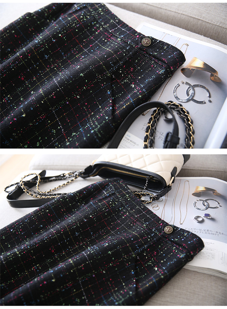 百媚生 毛呢格子半身裙女高腰显瘦包臀裙W26Q6B0066