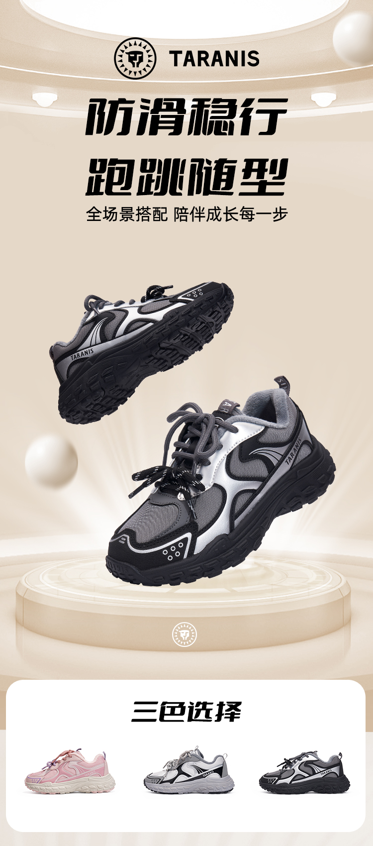 【泰兰尼斯】【新品】中大童冬款加绒时尚炫酷运动鞋T01D5D8439