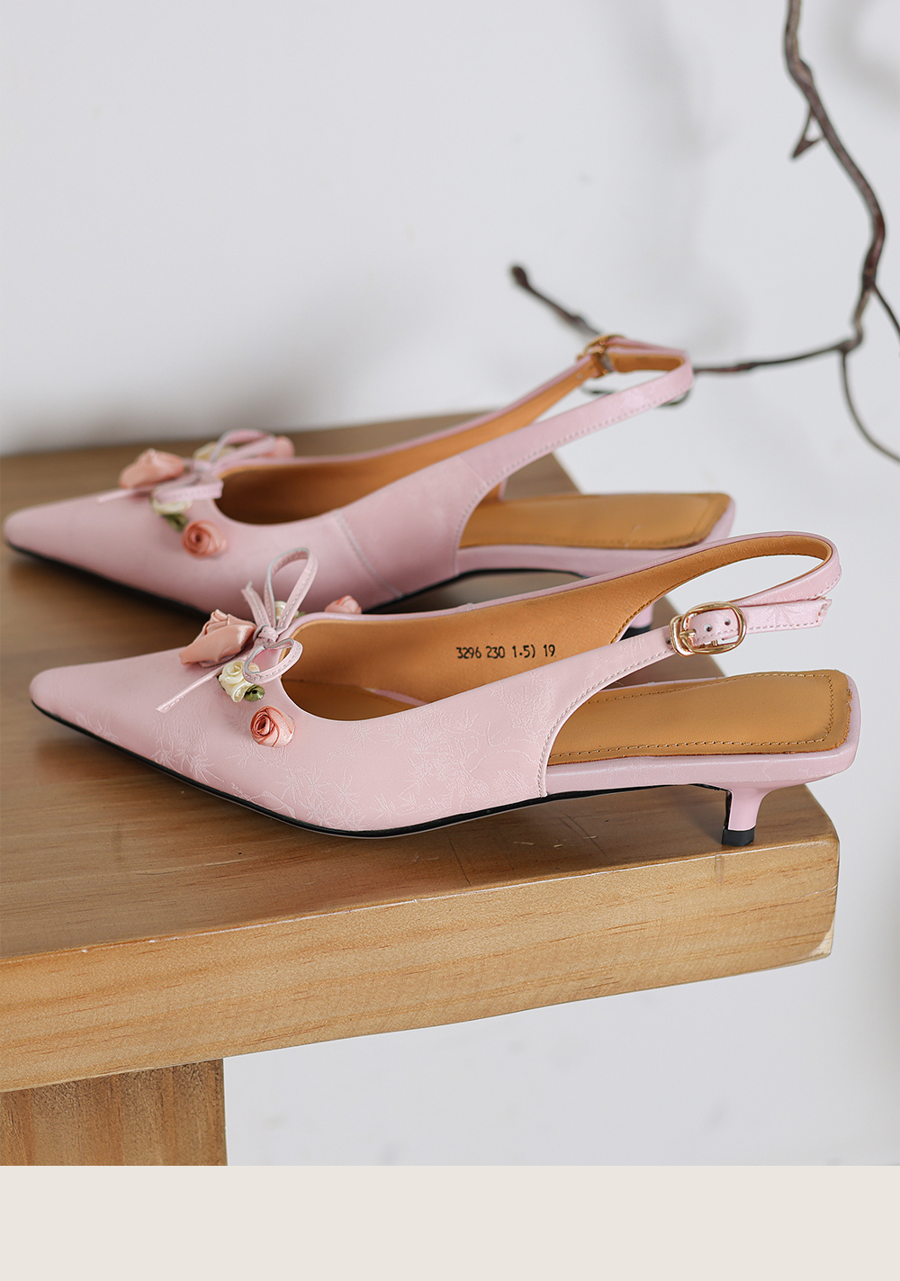 【预售5天】优雅个性,花朵蝴蝶结里外全皮包头高跟鞋MT&ML3296