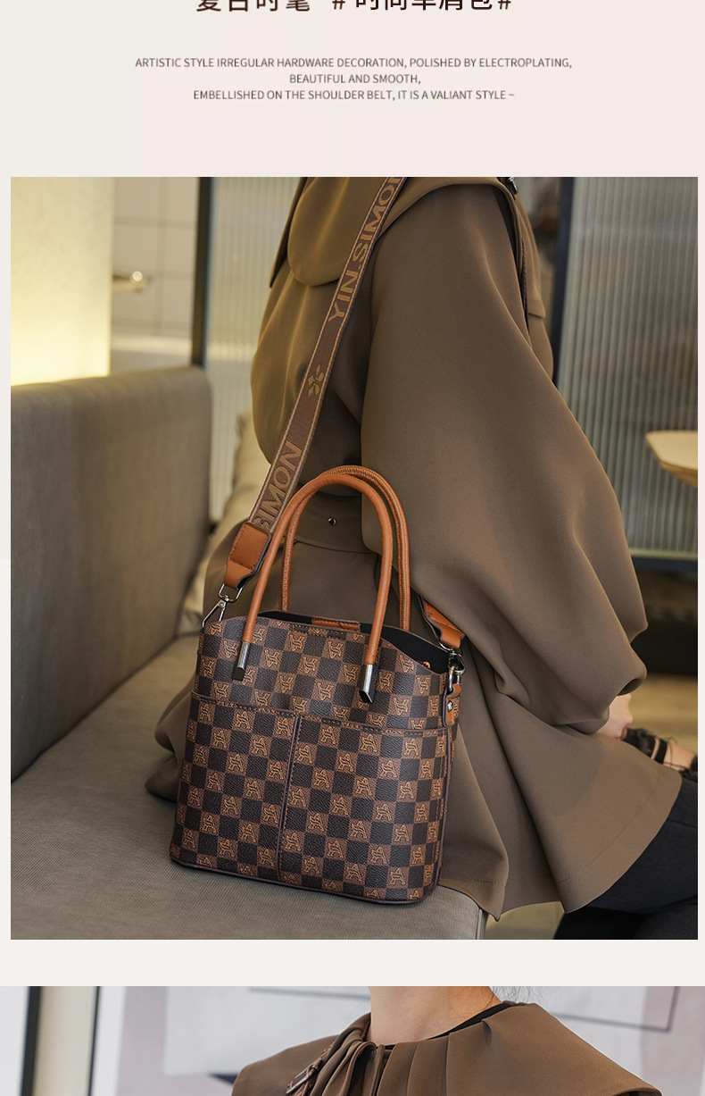 丁摩 单肩斜挎包女士大容量隔层水桶包女包T5199