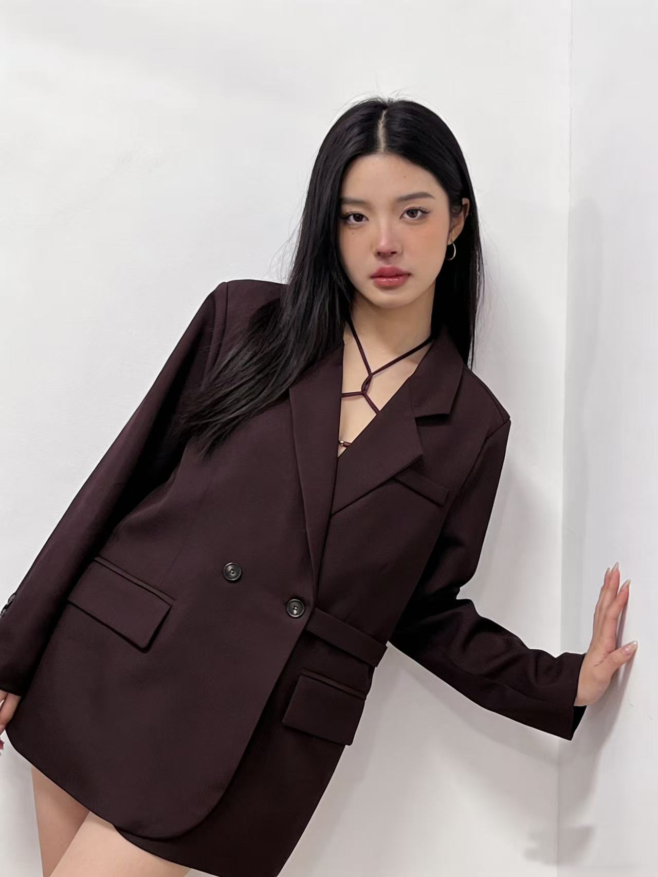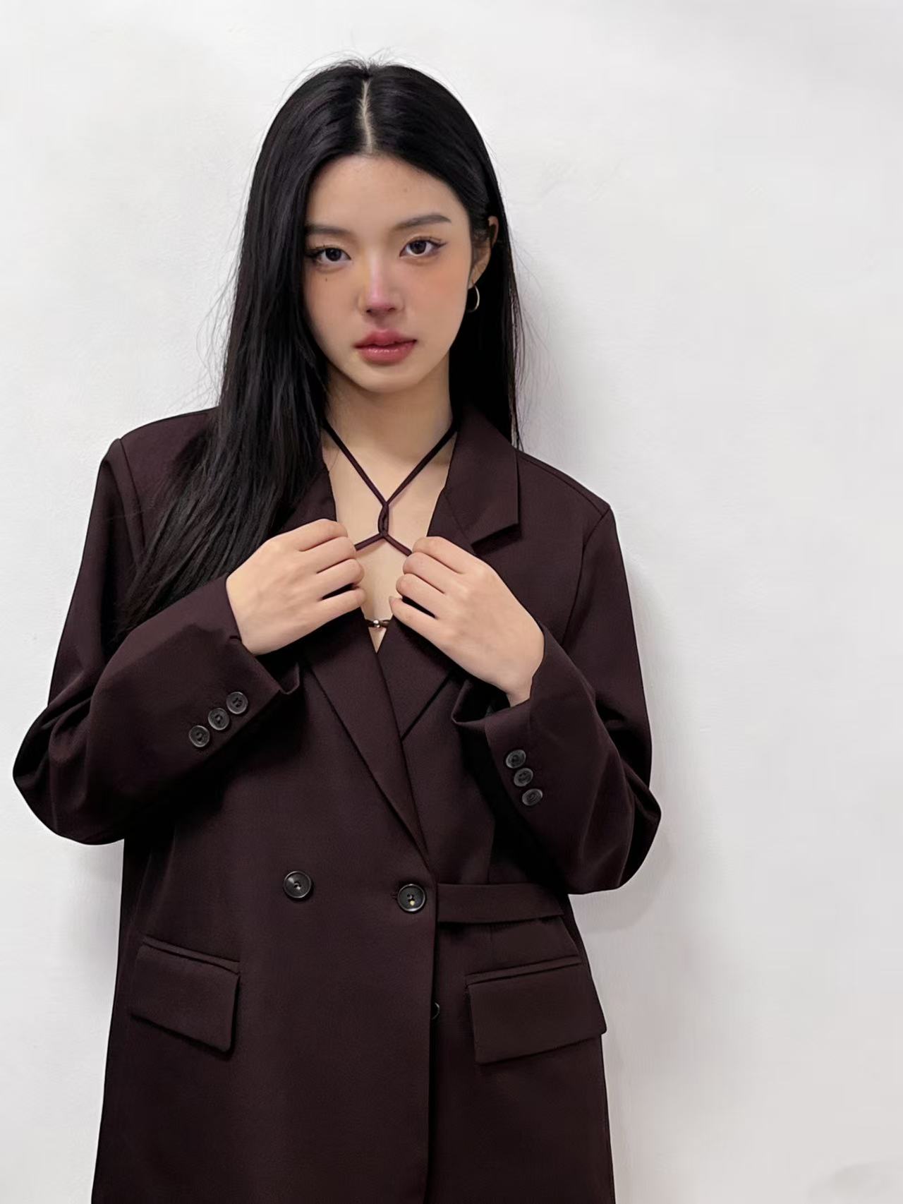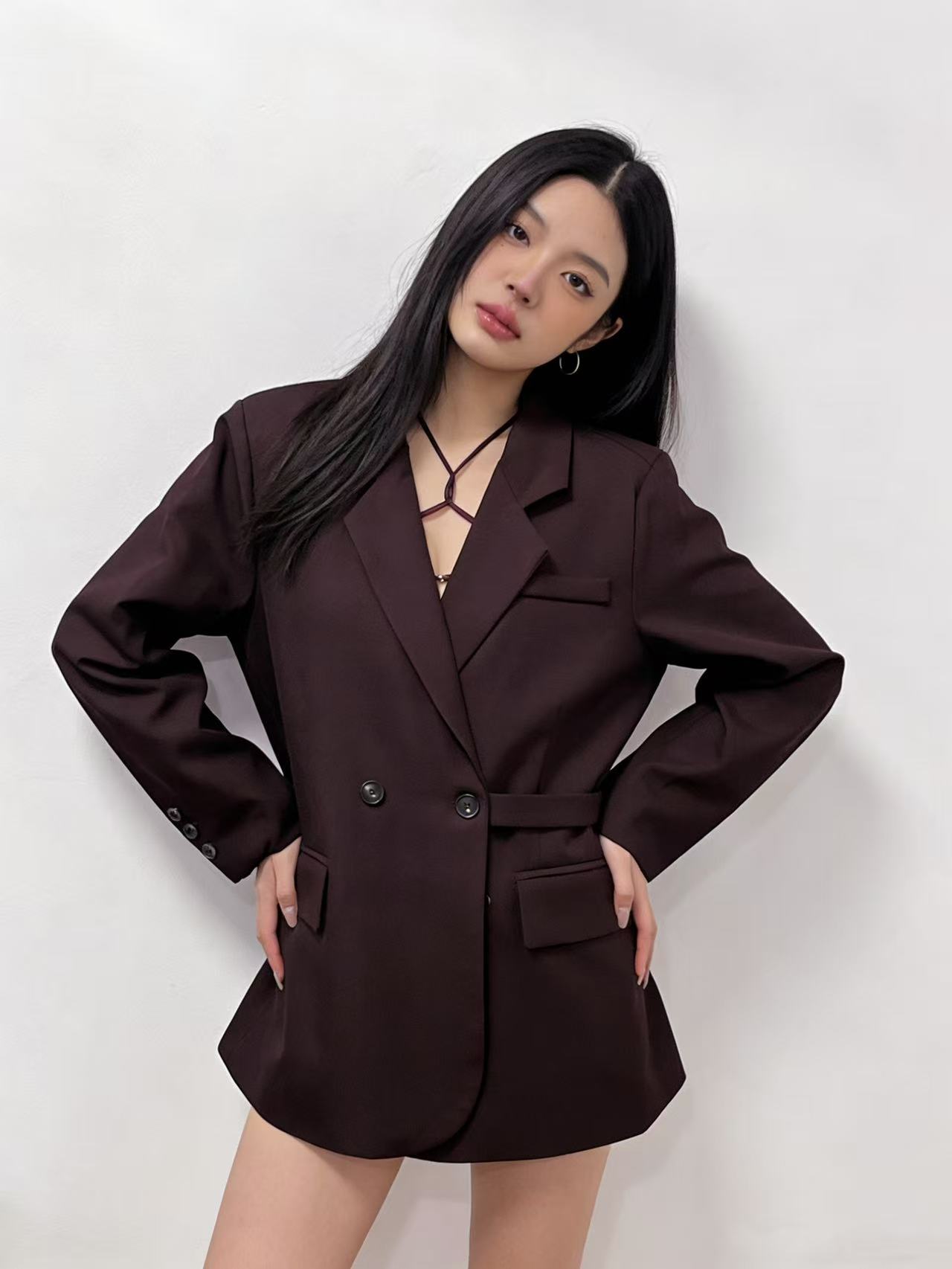 418良粉节|2026 活动爆款 活动爆款【自营】衣周期~613系带腰带酒红西服外套-喜出