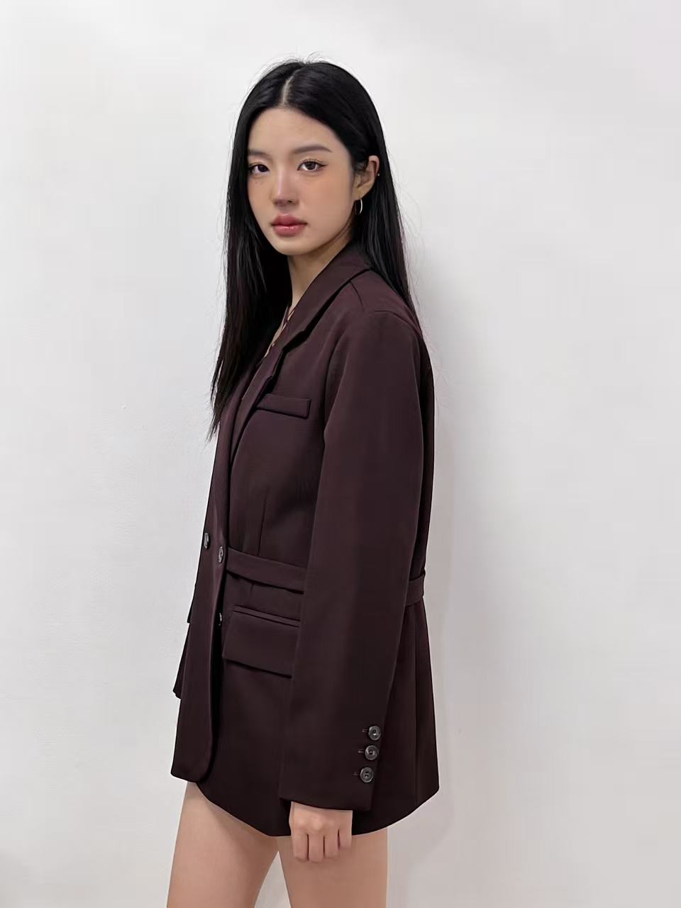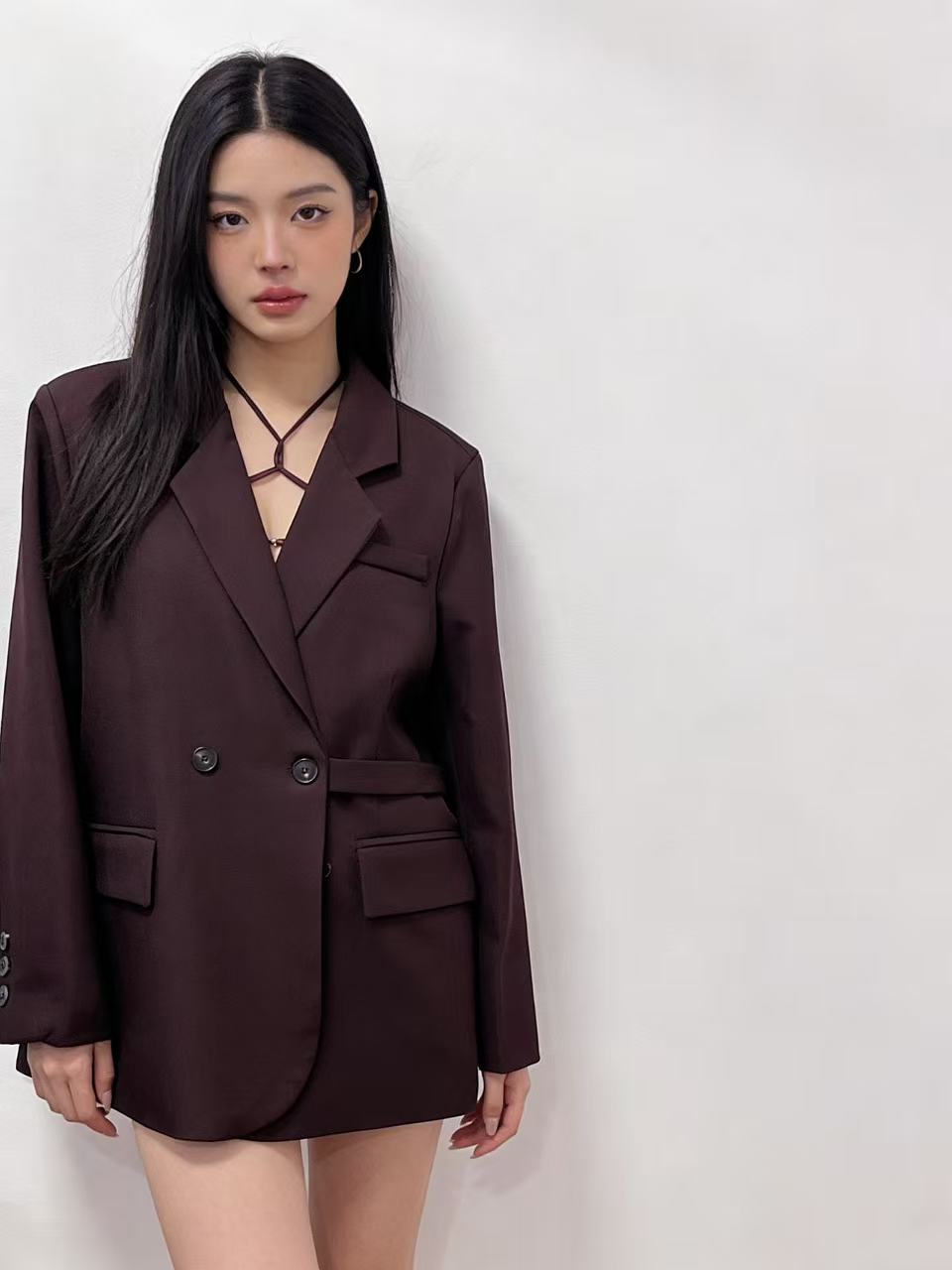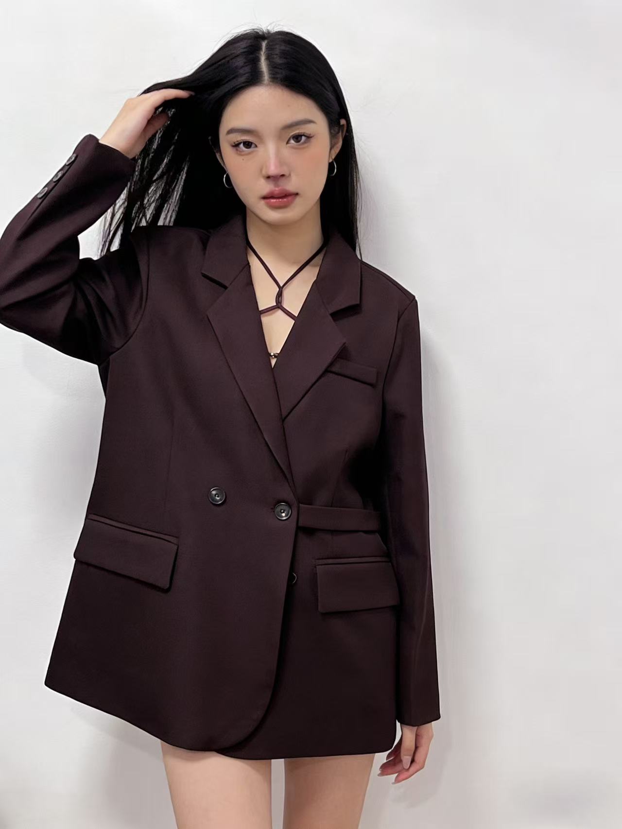418良粉节|2026 活动爆款 活动爆款【自营】衣周期~613系带腰带酒红西服外套-喜出