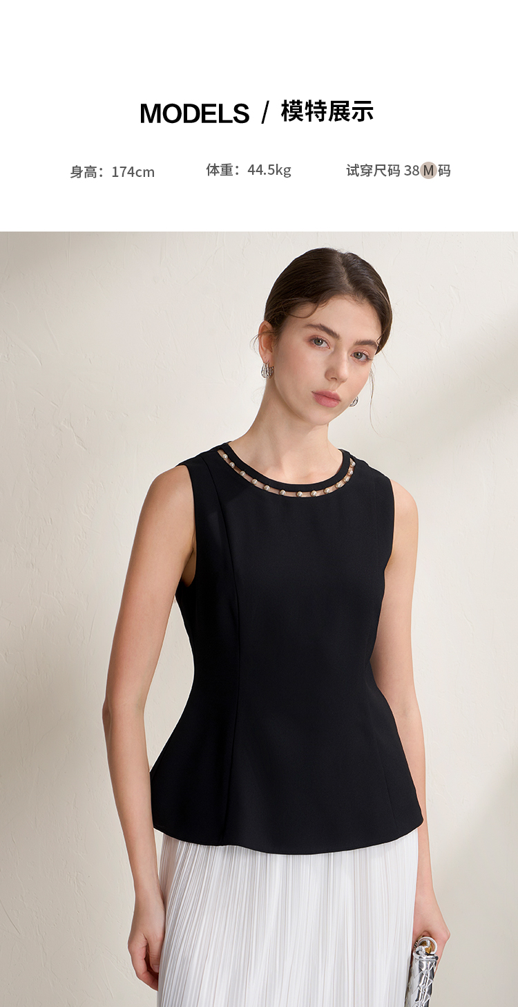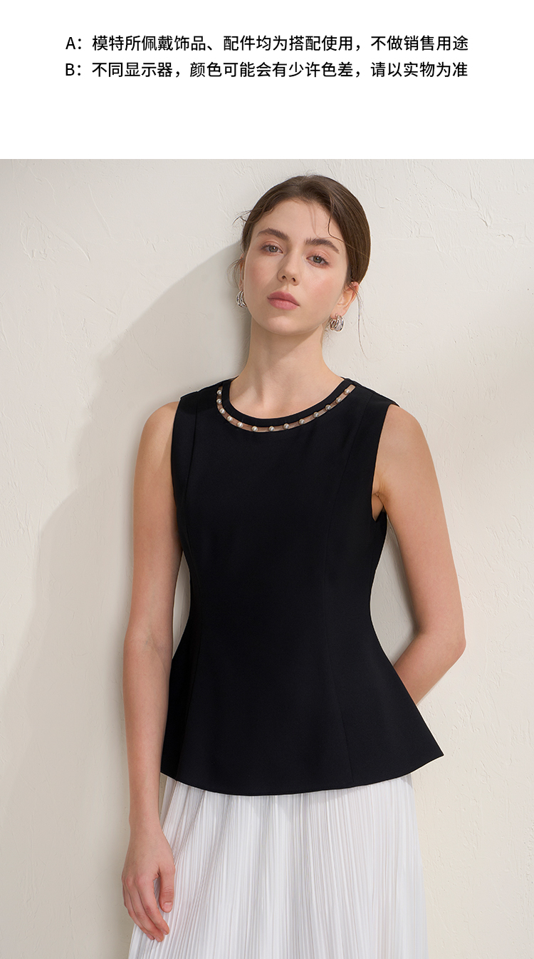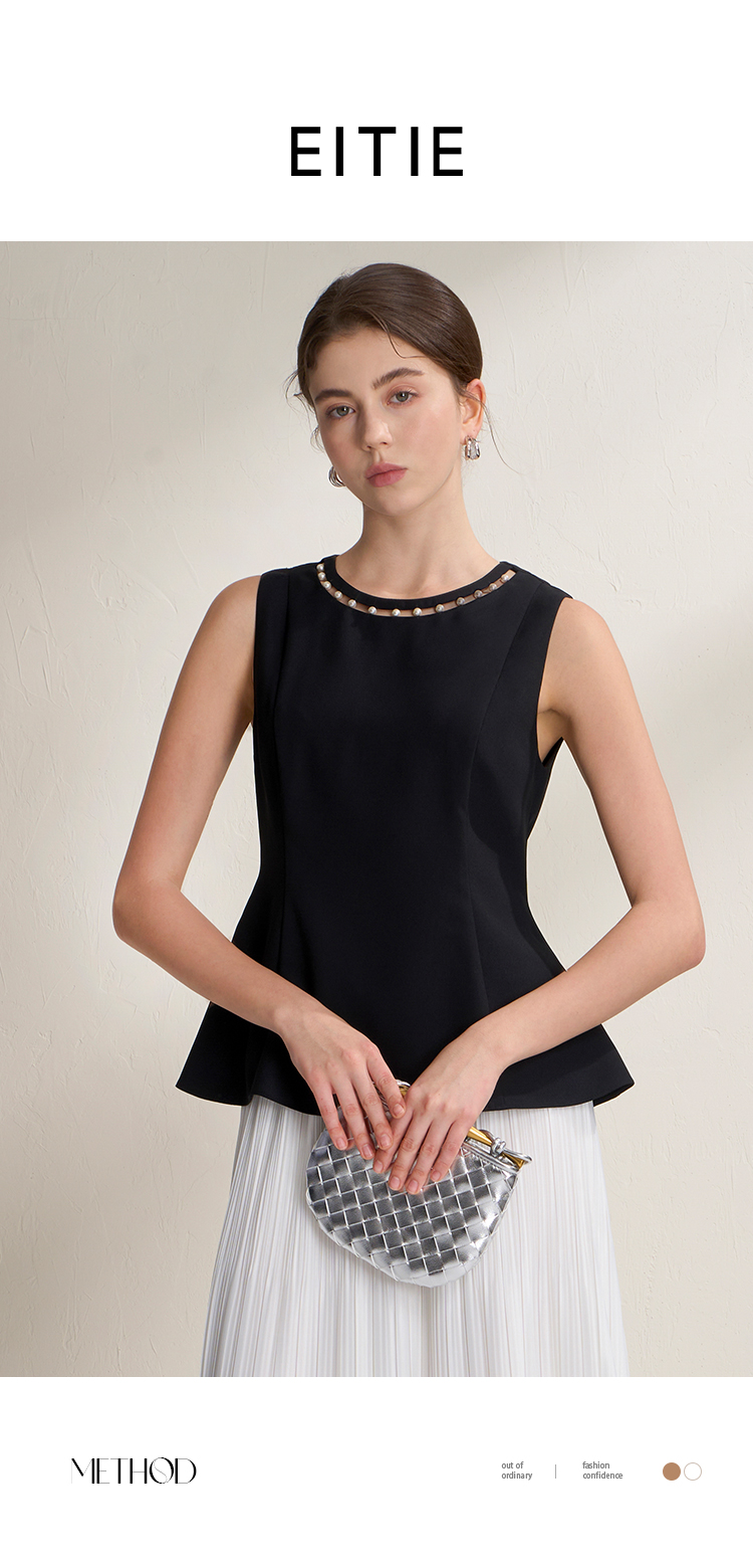 EITIE爱特爱千金风设计感显瘦荷叶边下摆无袖小上衣2026夏新款B2613202