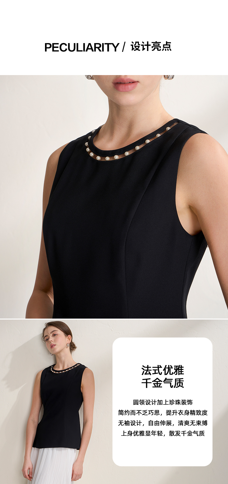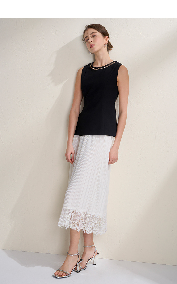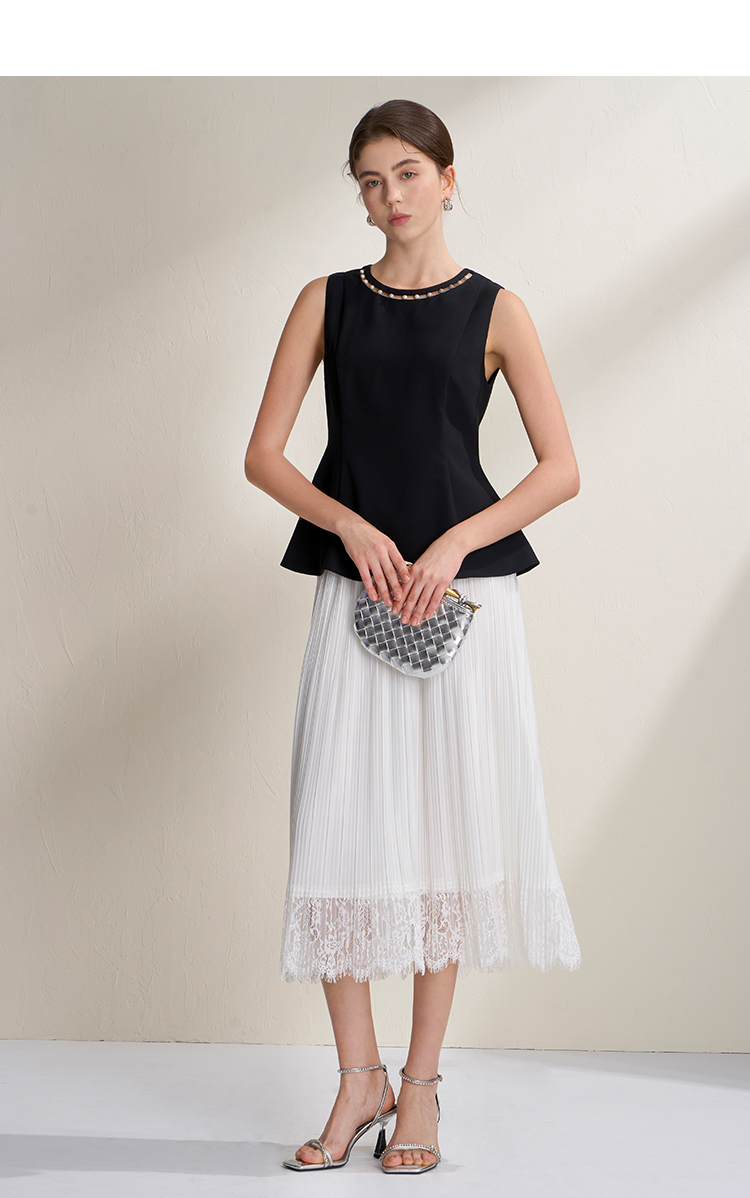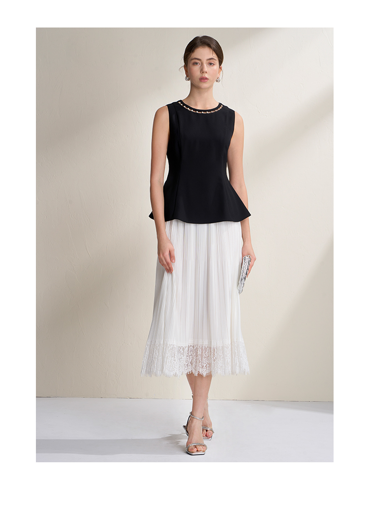 EITIE爱特爱千金风设计感显瘦荷叶边下摆无袖小上衣2026夏新款B2613202