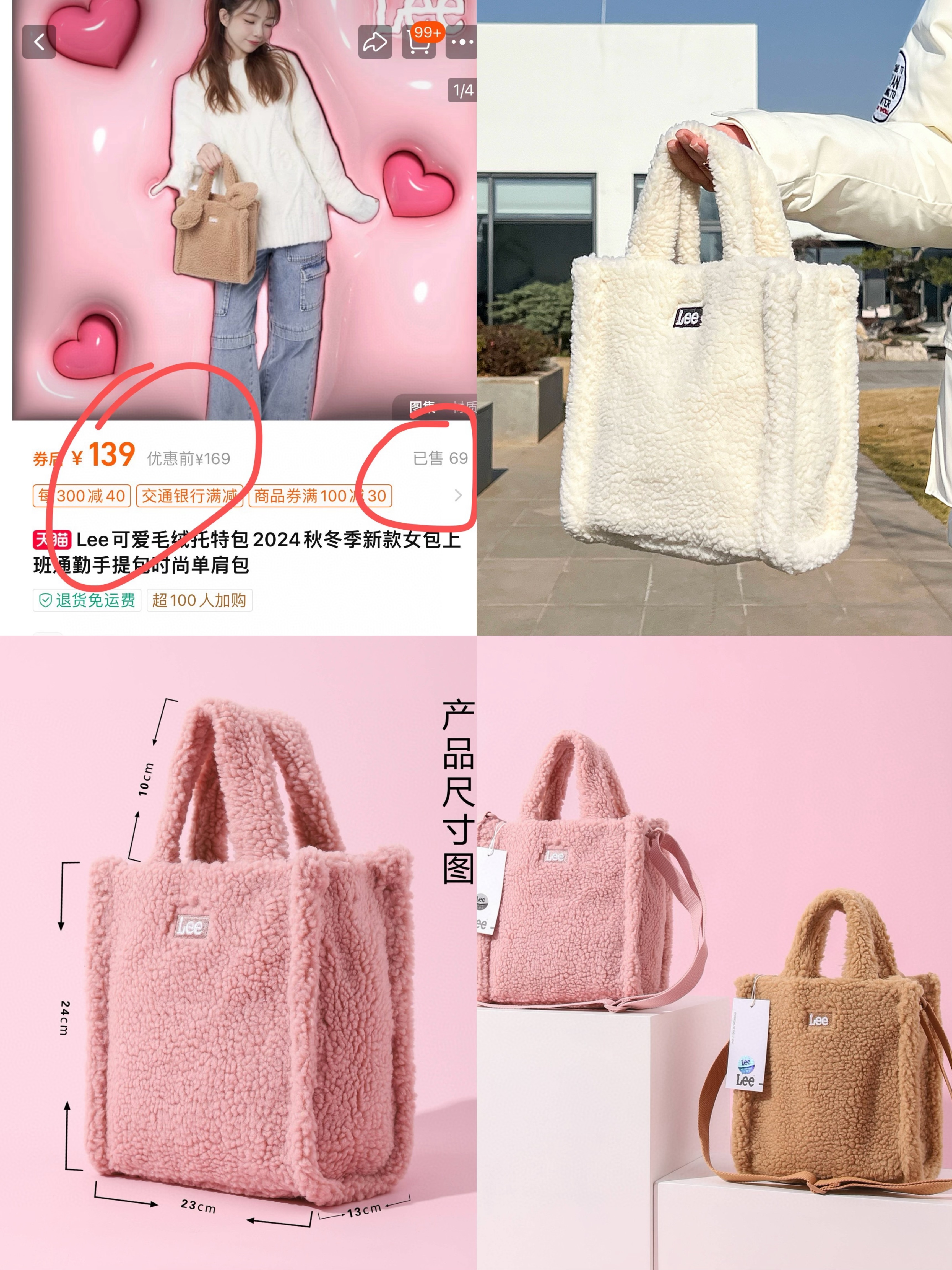 采用了仿羊羔绒材质的面料 极简中又透露着可爱。真的是性价比极高!正品Lee Book Tote 毛绒托特包 必备毛绒包!时尚百搭,品牌方直发✈️