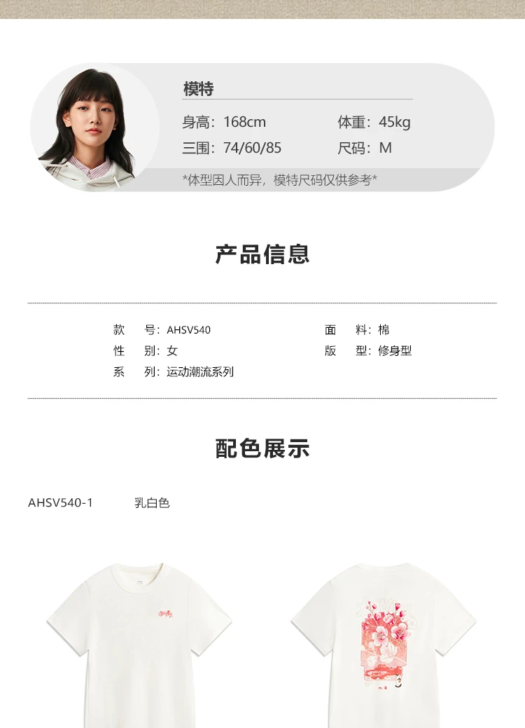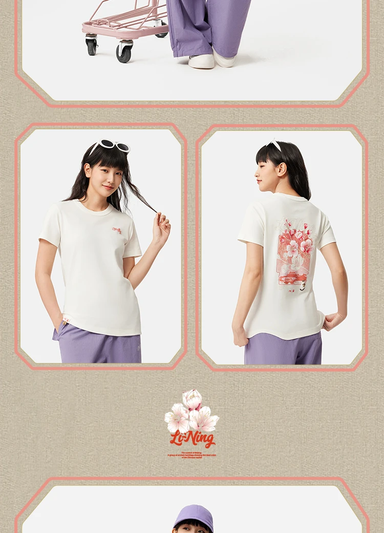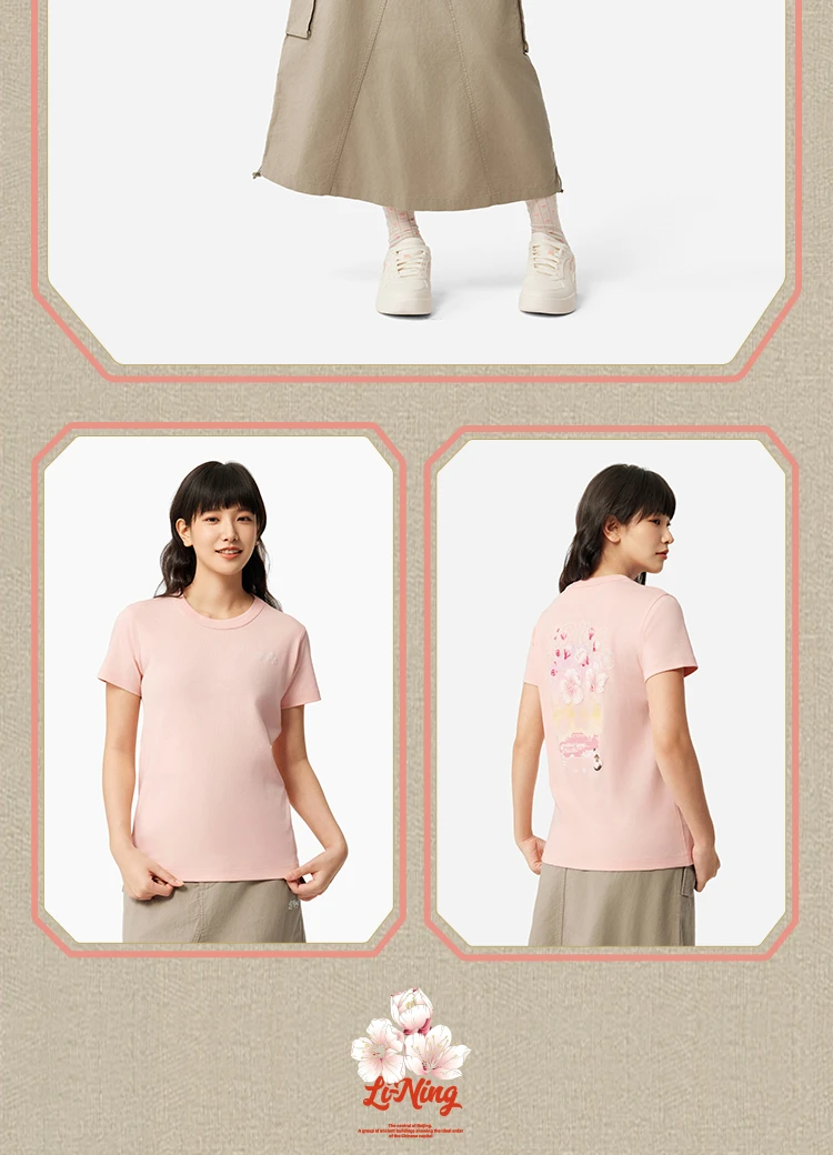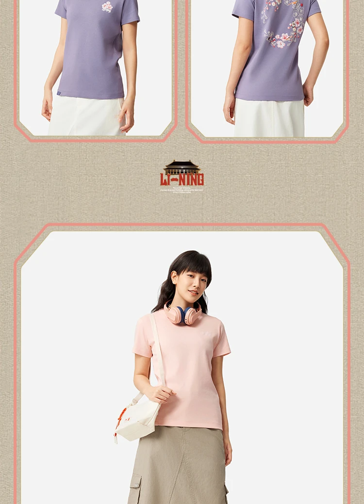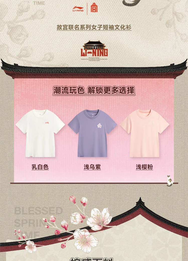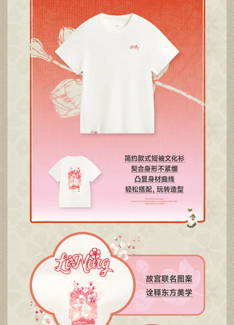 李宁中国文化系列故宫联名妙笔生花女子修身短袖文化衫AHSV540