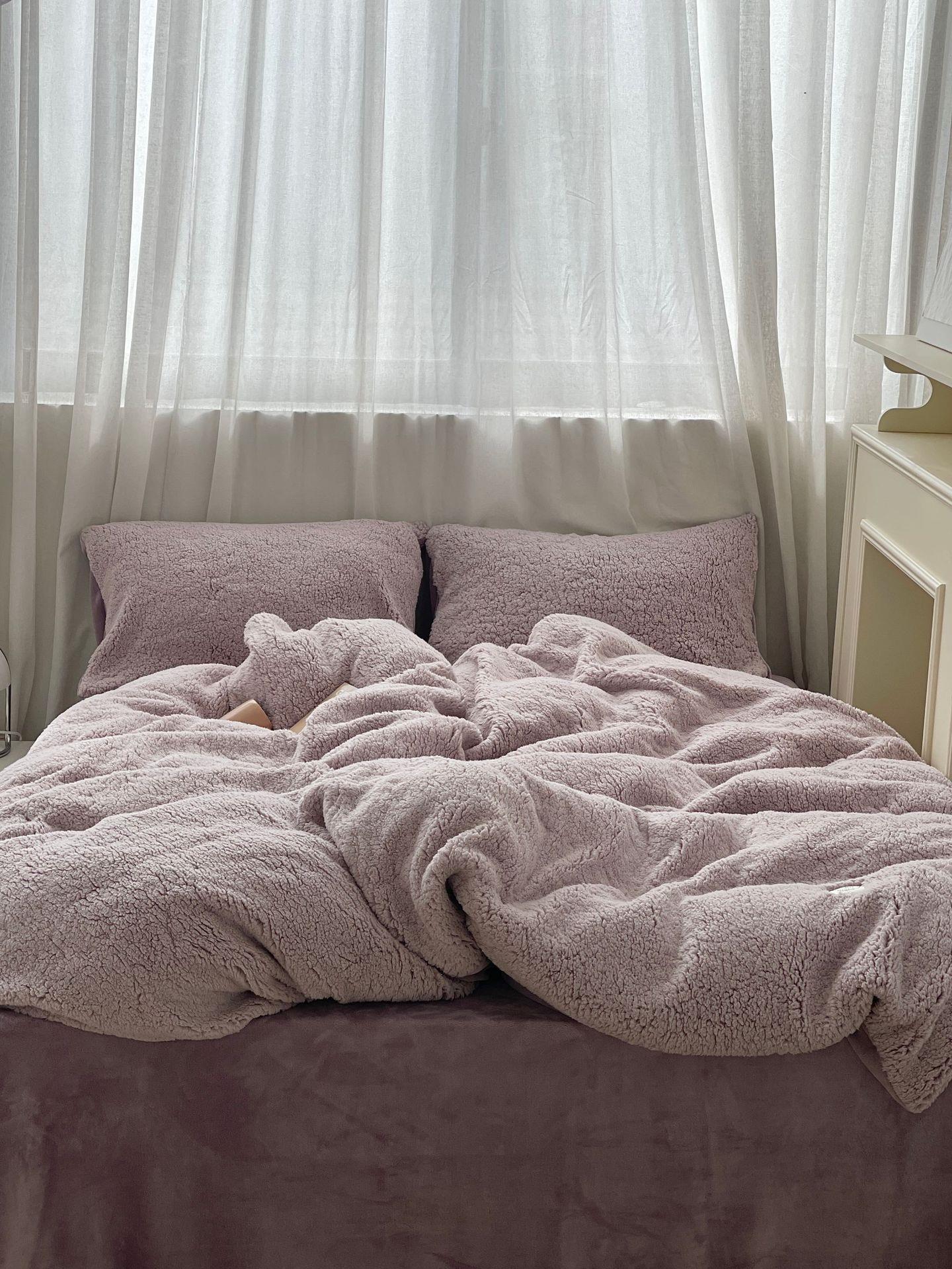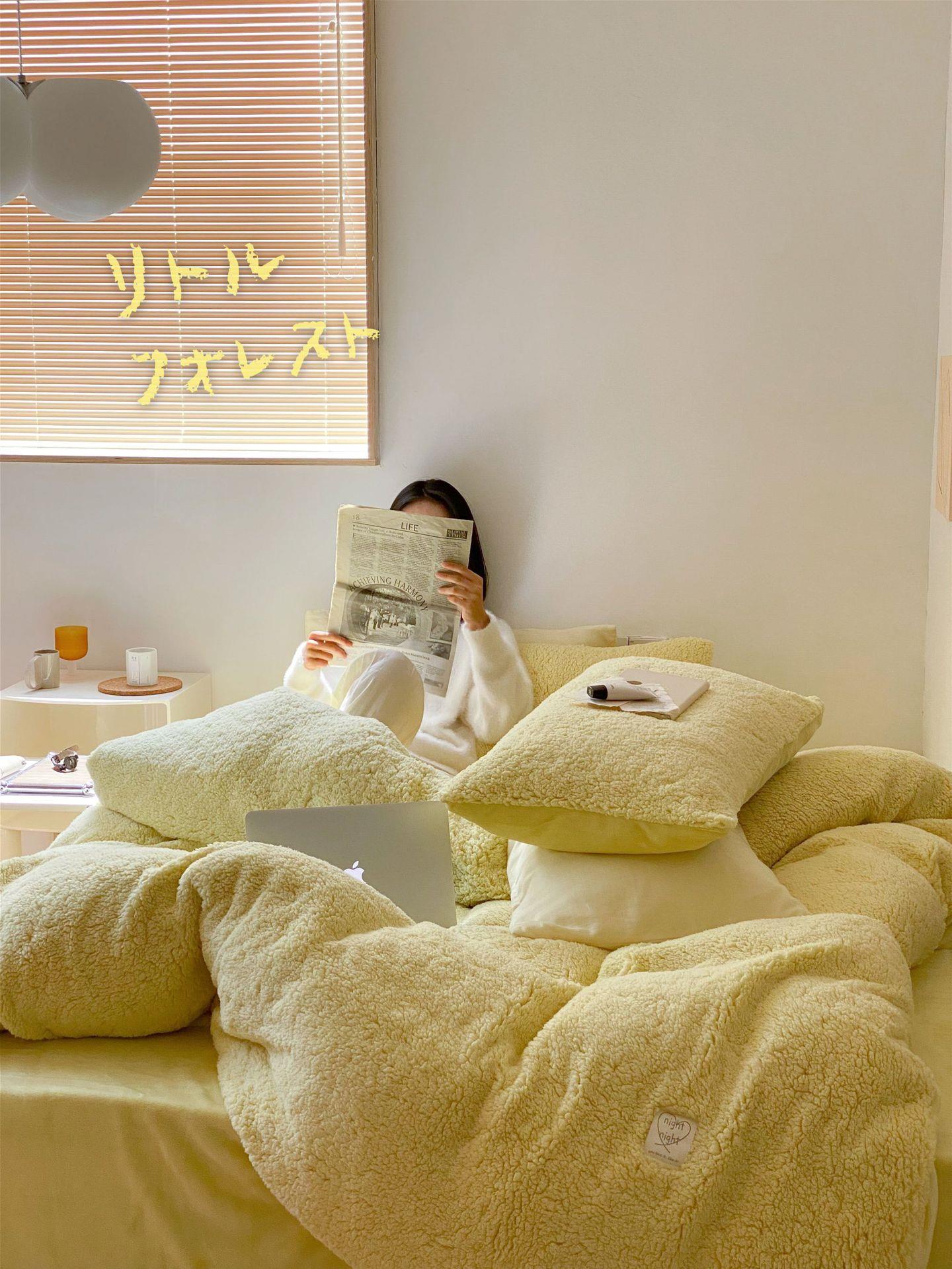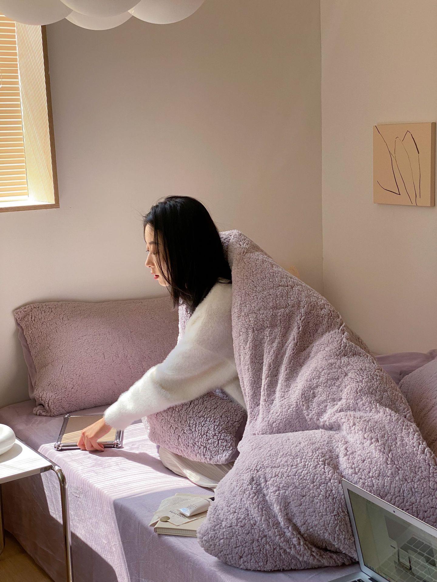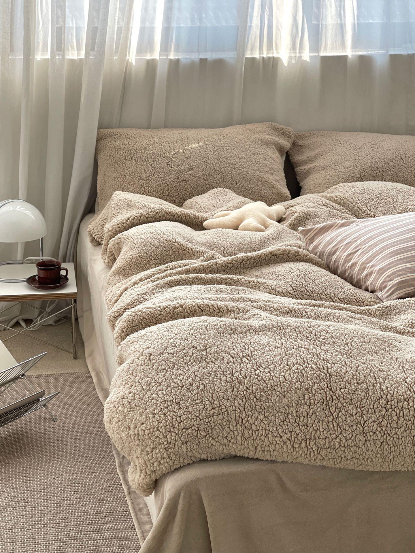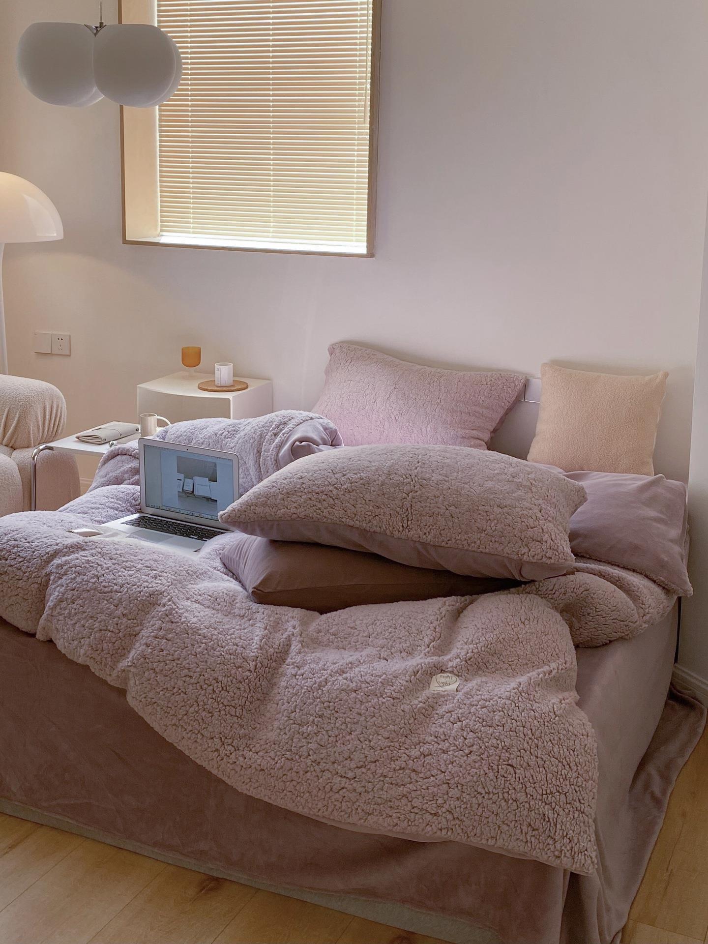 柔软体验感︱ins氛围加厚加密羊驼绒简约四件套冬保暖牛奶绒床品