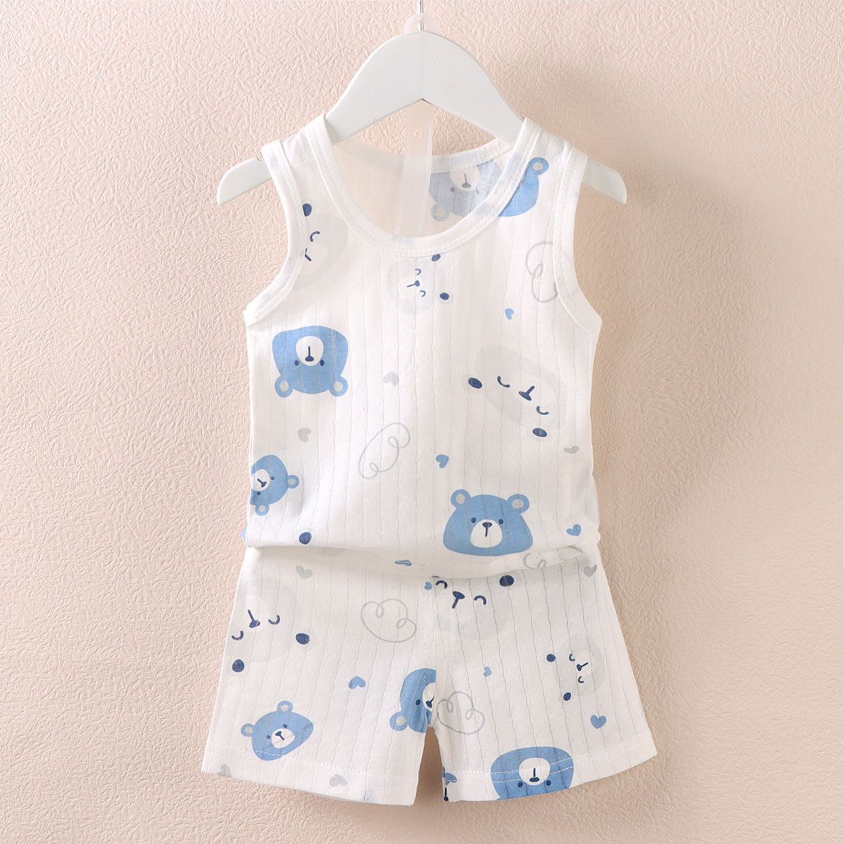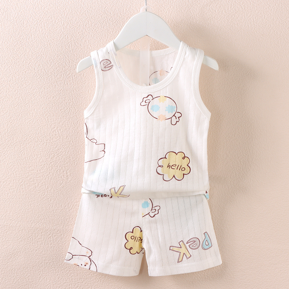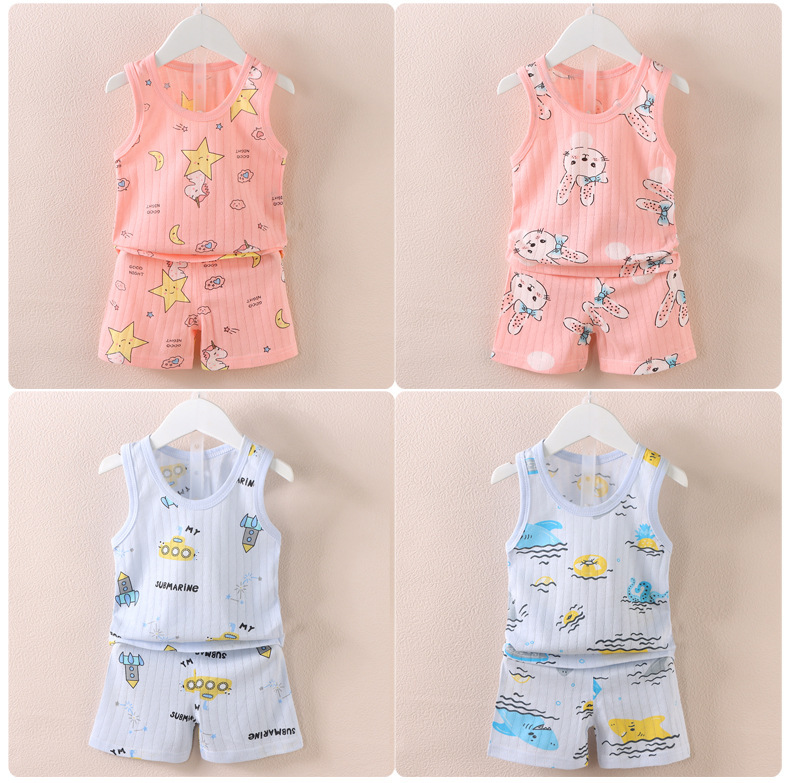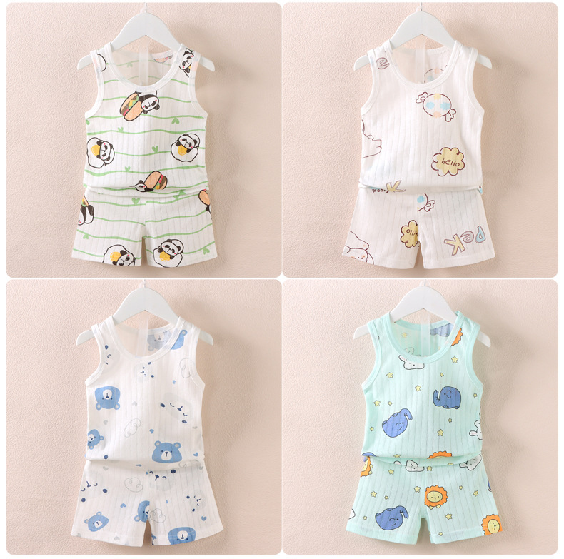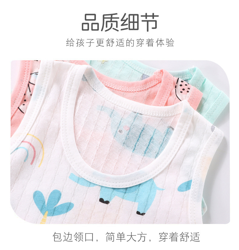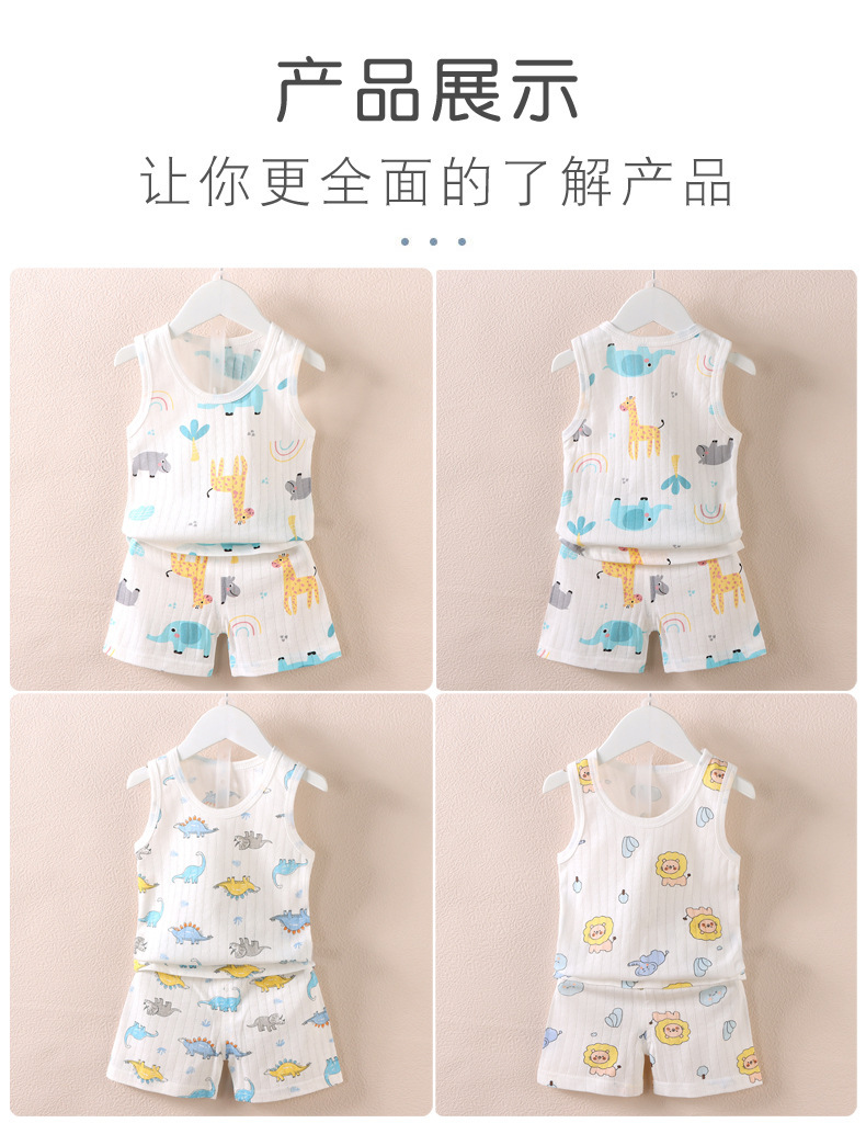 【薄如蝉翼宝宝贴肤软糯清爽舒适】会呼吸的面料,包边领口简单大方穿着舒适a类新款儿童宝宝提花背心短裤套装,中小童夏季男女童薄款棉两件套sh
