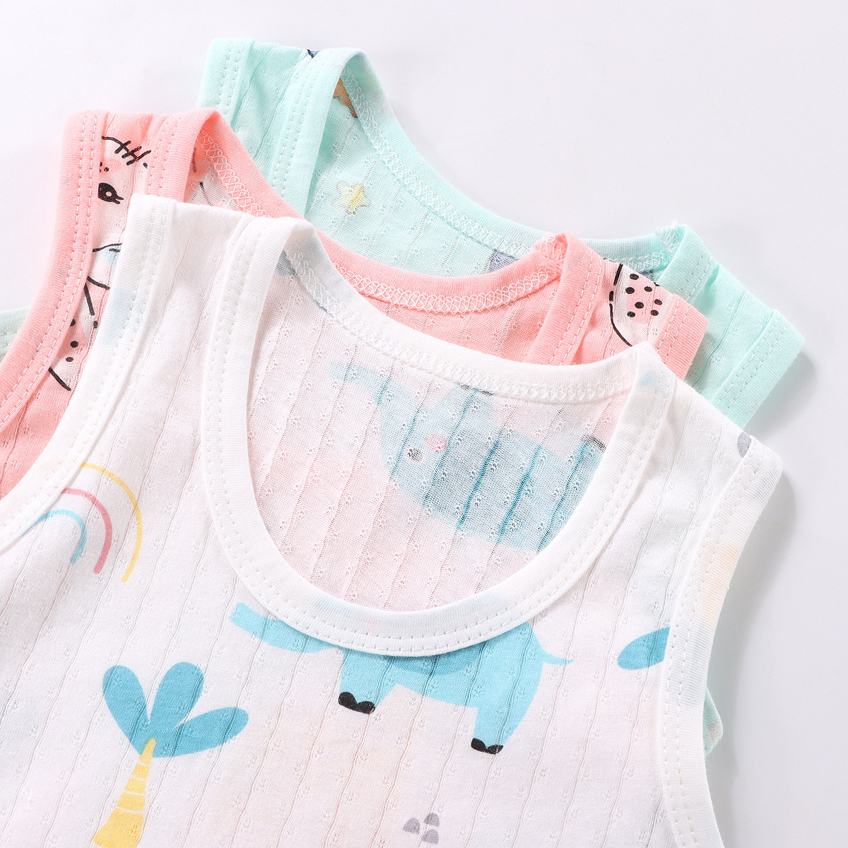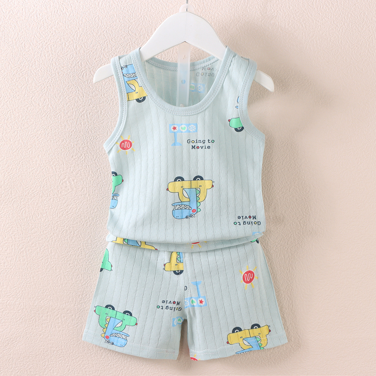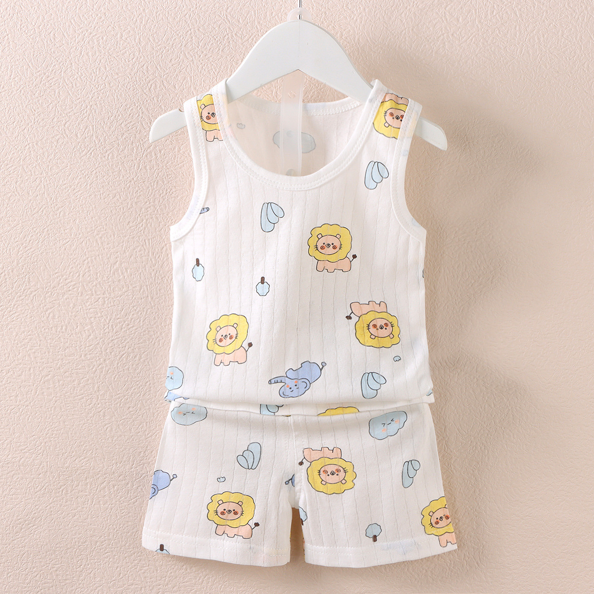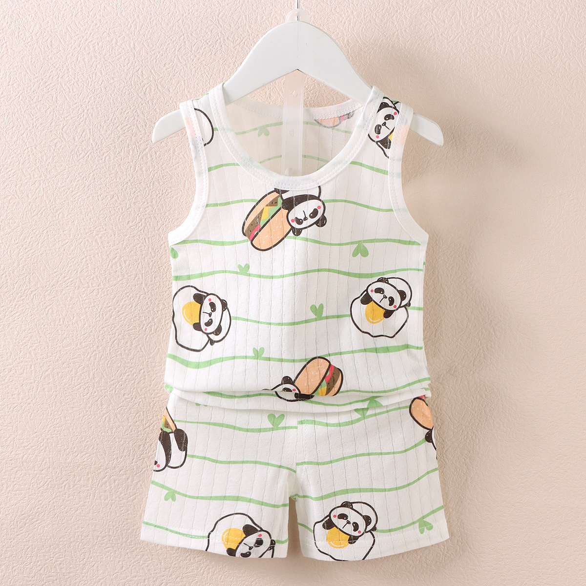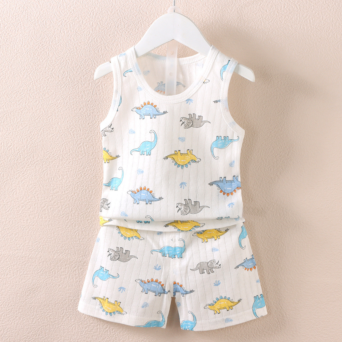 【薄如蝉翼宝宝贴肤软糯清爽舒适】会呼吸的面料,包边领口简单大方穿着舒适a类新款儿童宝宝提花背心短裤套装,中小童夏季男女童薄款棉两件套sh