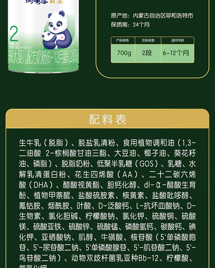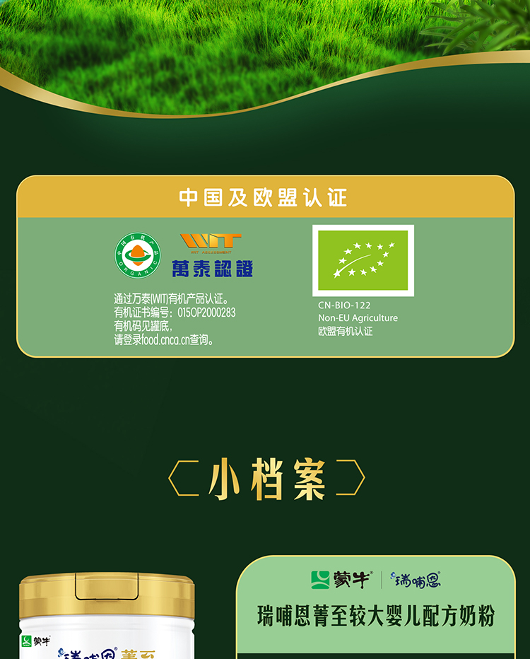 蒙牛瑞哺恩菁至2段较大婴儿配方奶粉 700g(有机A2版)【12月专享价】
