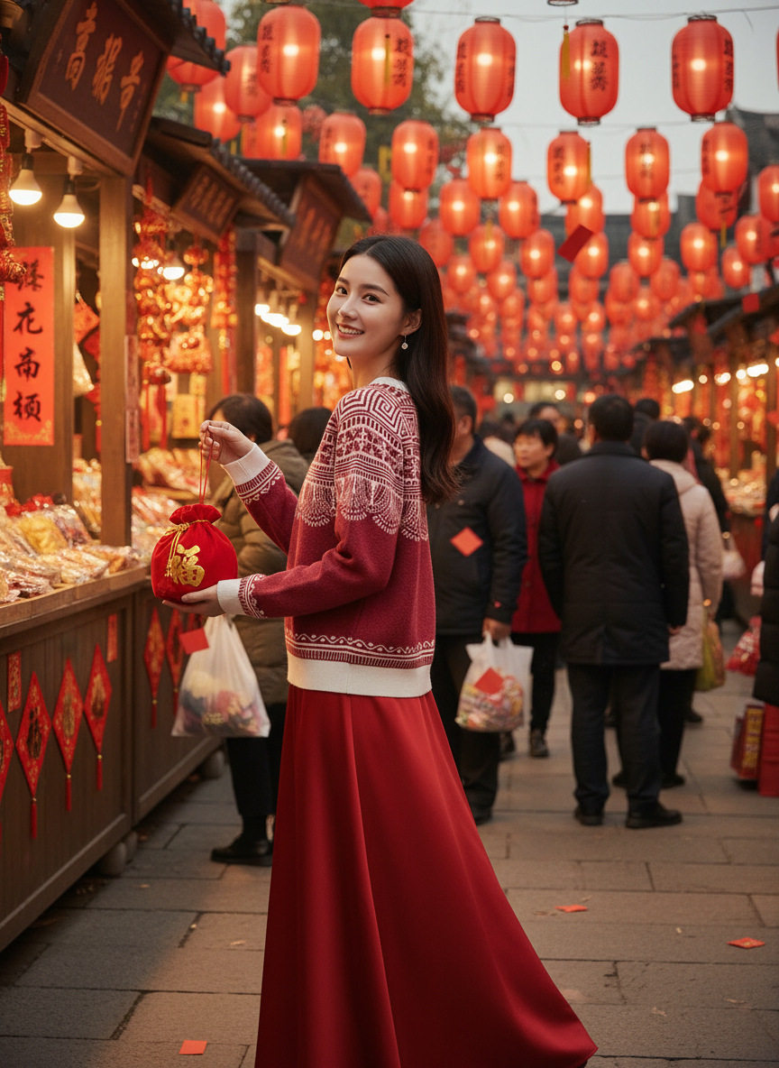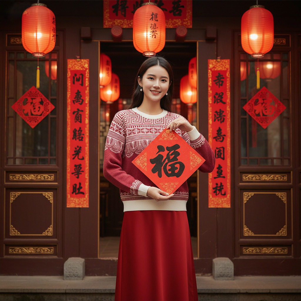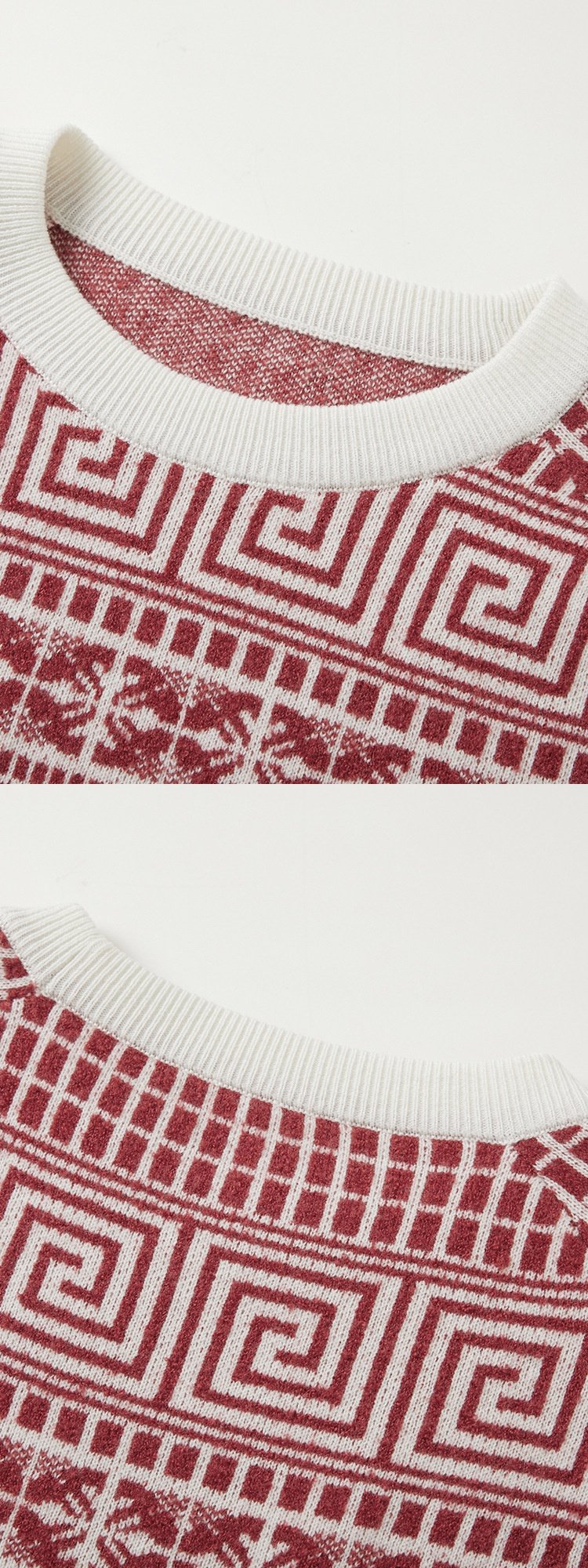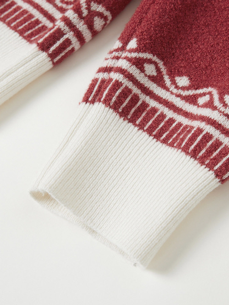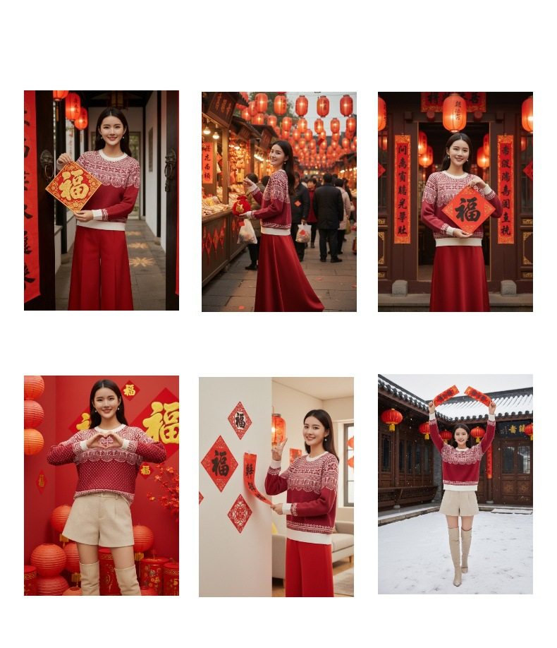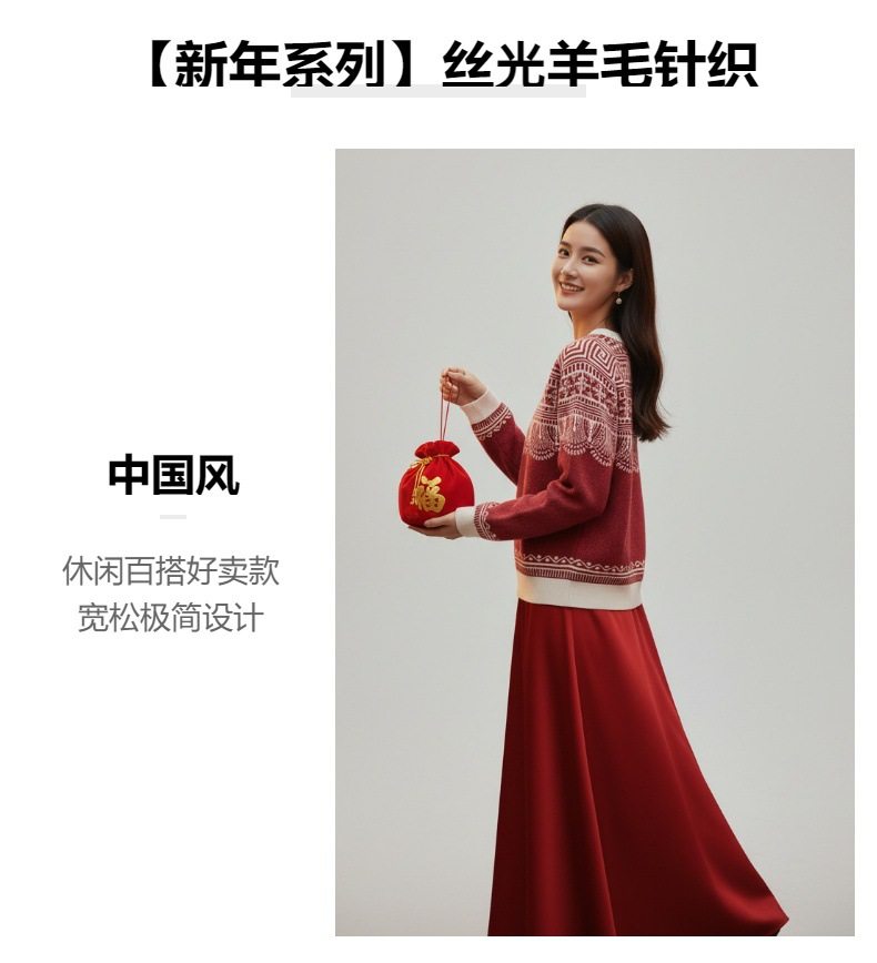 「自」全新升级【铂金会员330/天猫439/差价109】(14436)洛诗琳新年系列红色毛衣2025秋冬国风提花圆领羊毛针织上衣