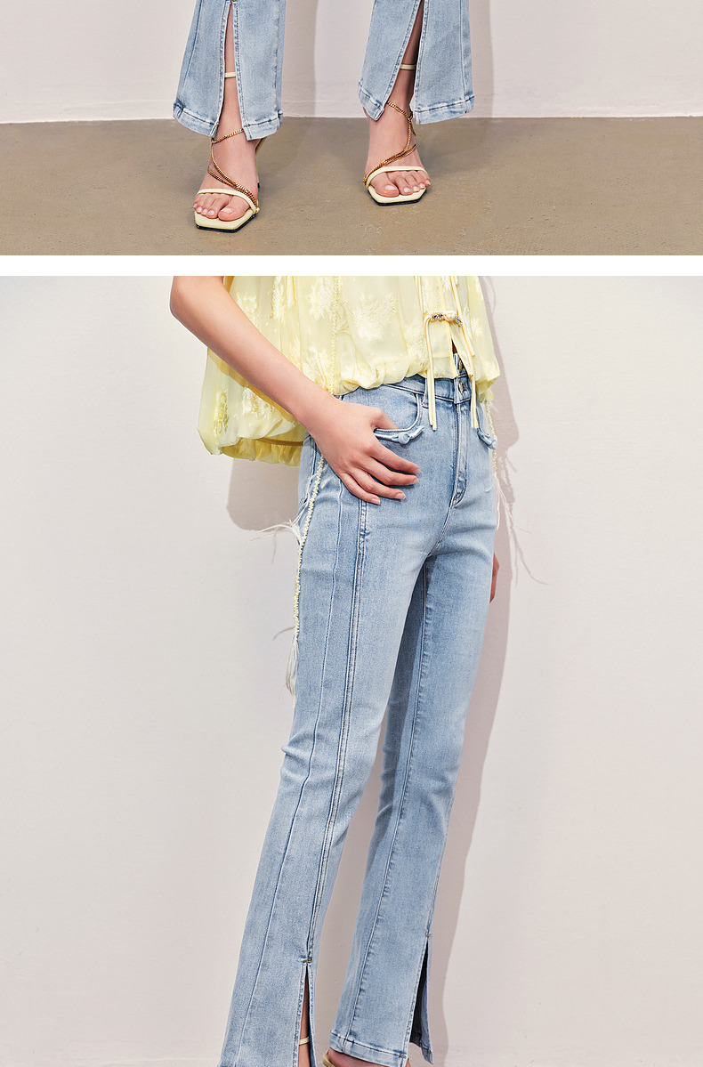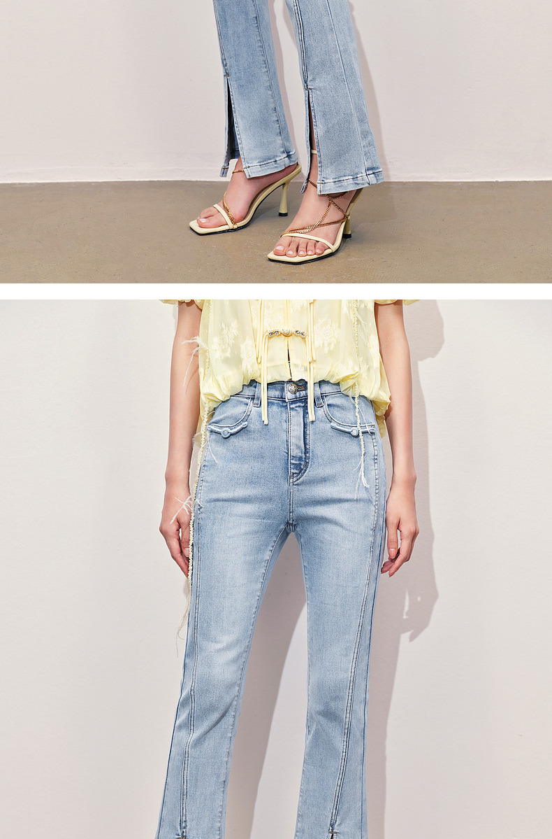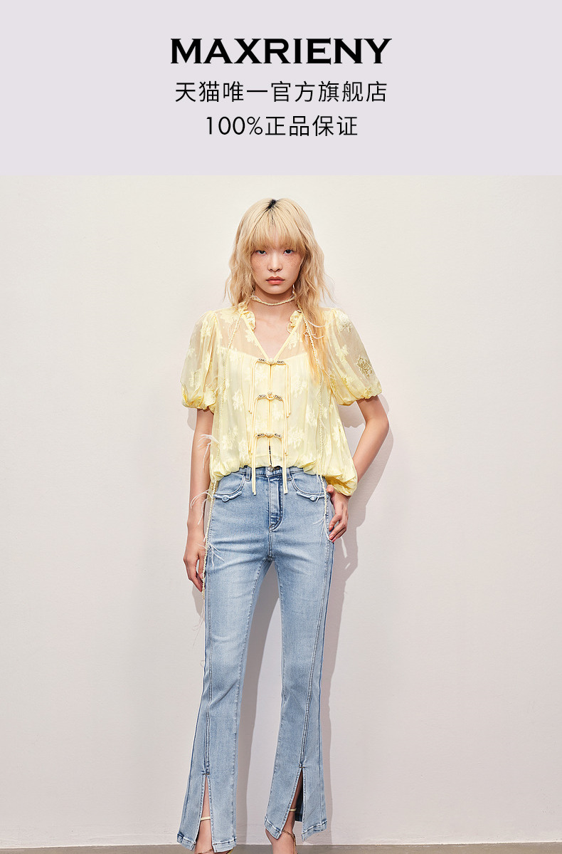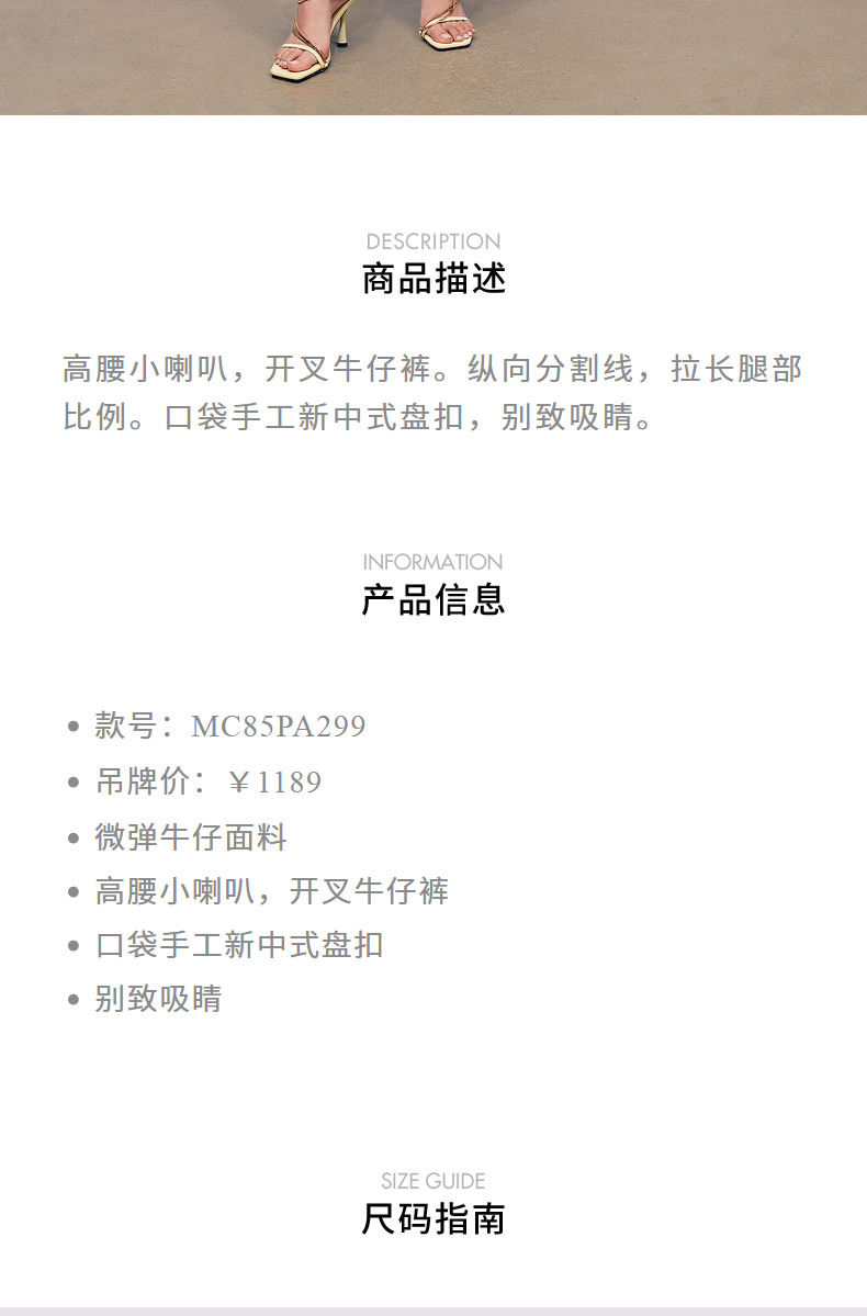 【静奢度假-商场同款】MAXRIENY新中式高腰开叉复古牛仔裤修身女(货号:MC85PA299)