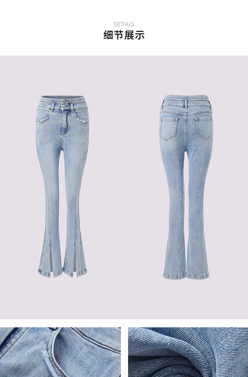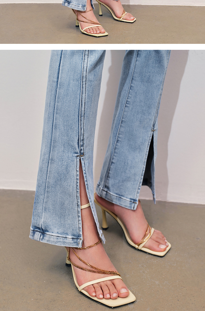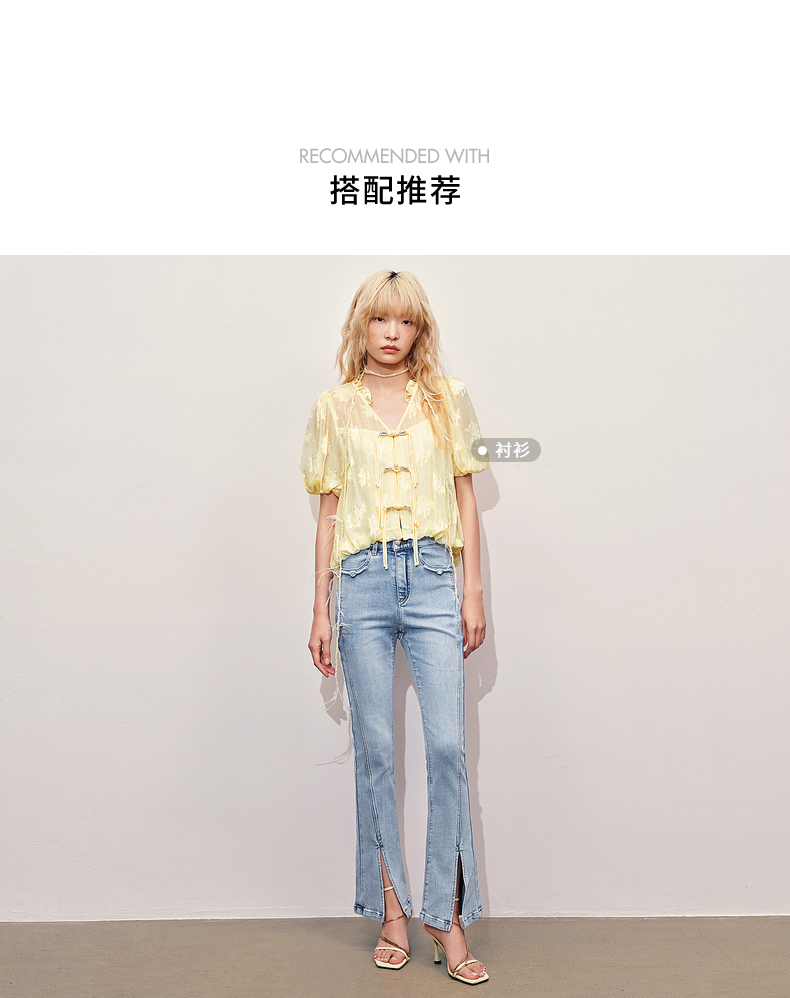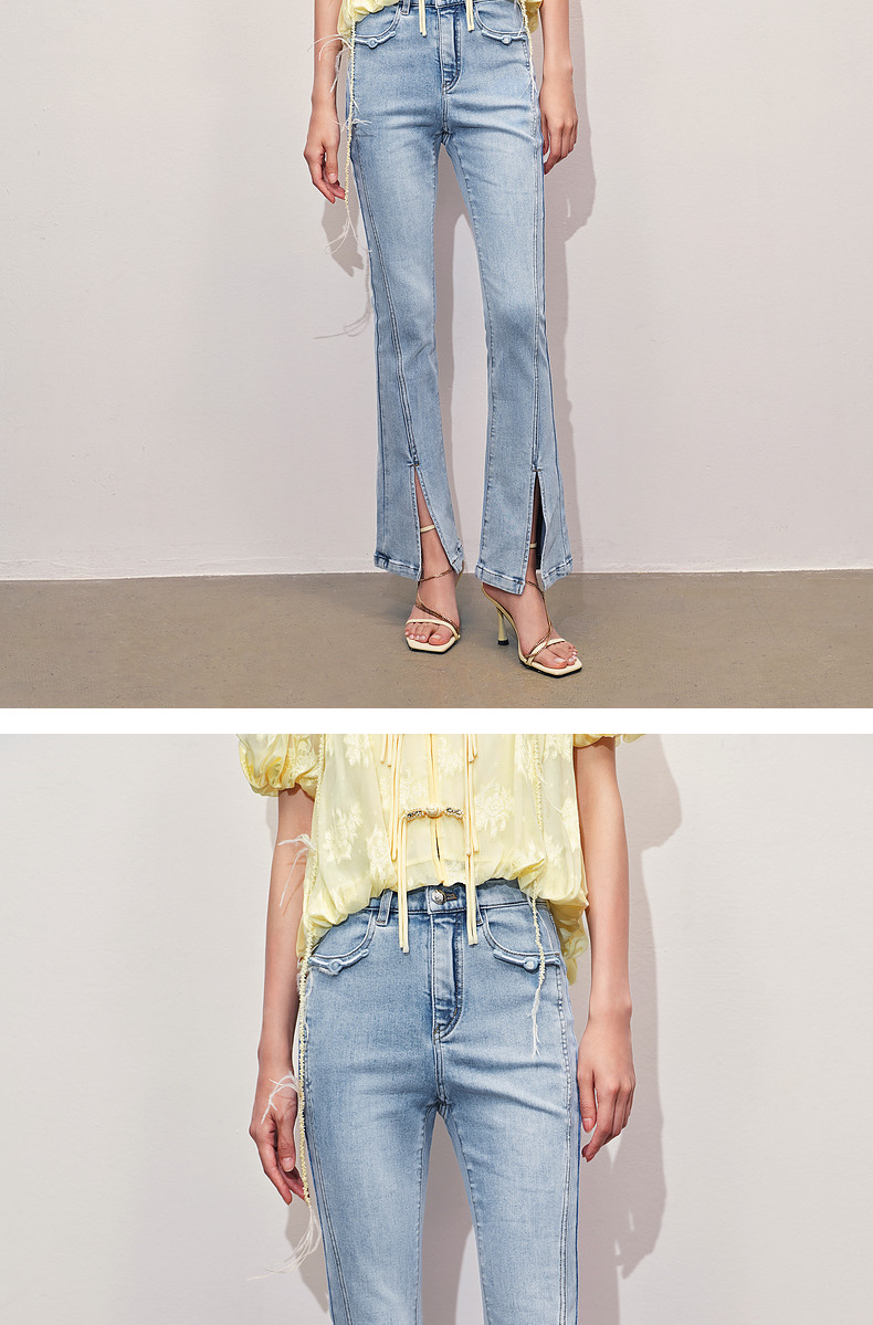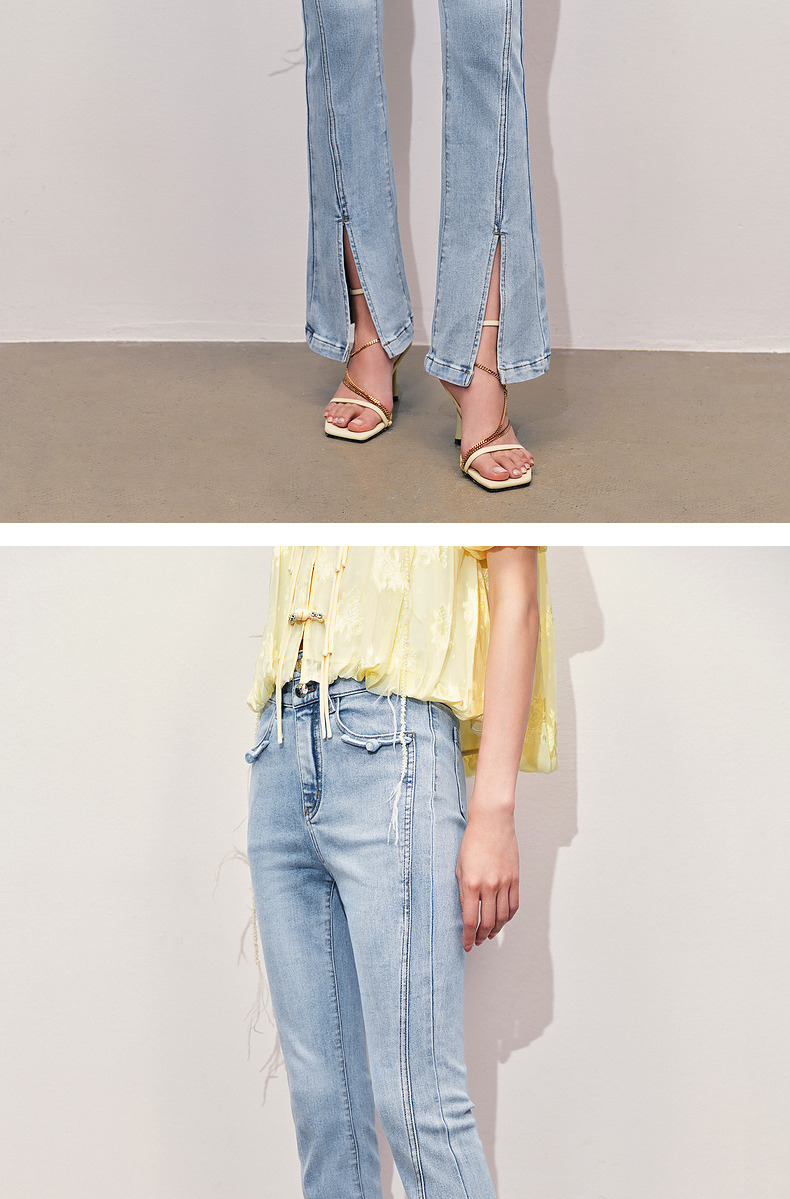 【静奢度假-商场同款】MAXRIENY新中式高腰开叉复古牛仔裤修身女(货号:MC85PA299)