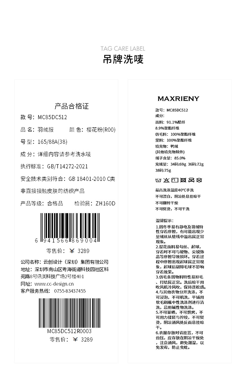 玛克门店发货:MAXRIENY中式流苏盘扣羽绒服(货号:MC85DC512)