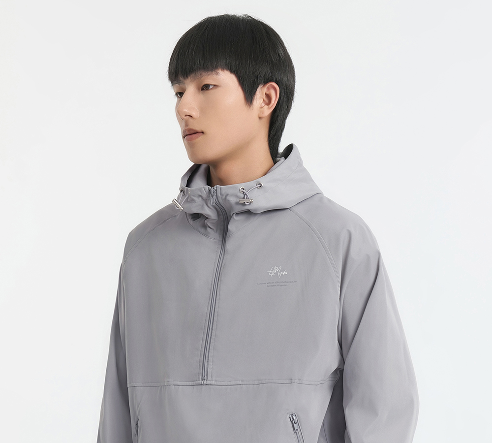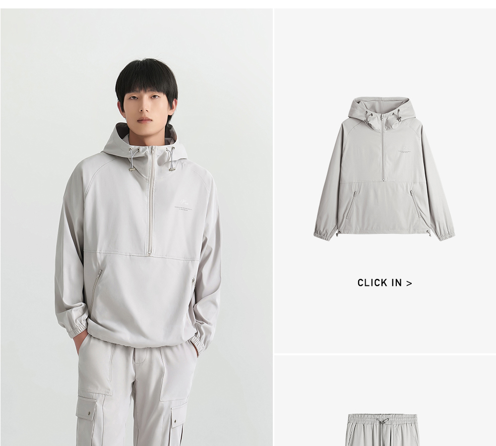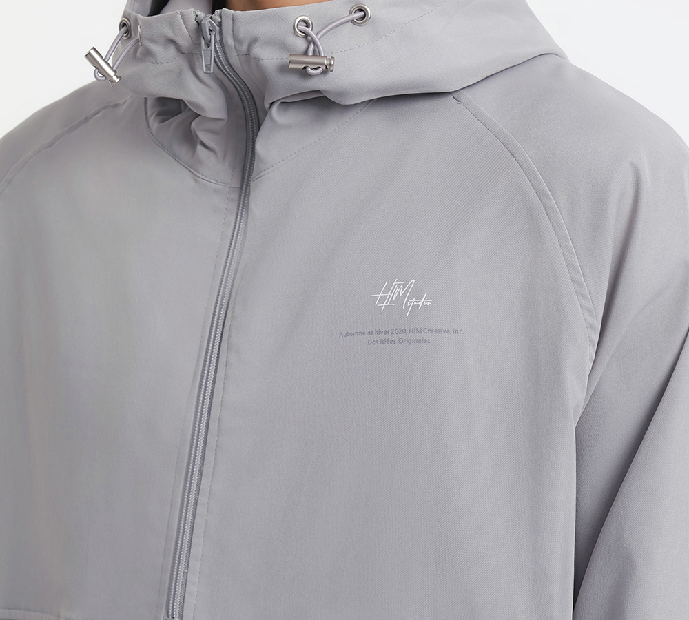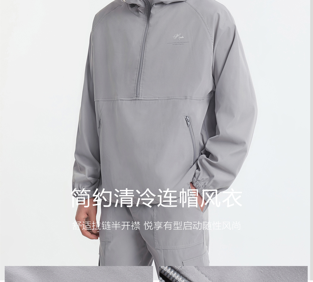 HIM漢崇 拉链半开襟夹克男轻薄休闲宽松连帽运动外套 2025秋季