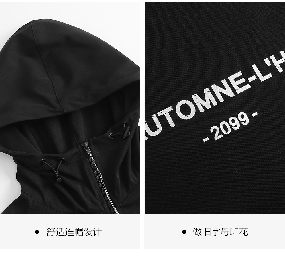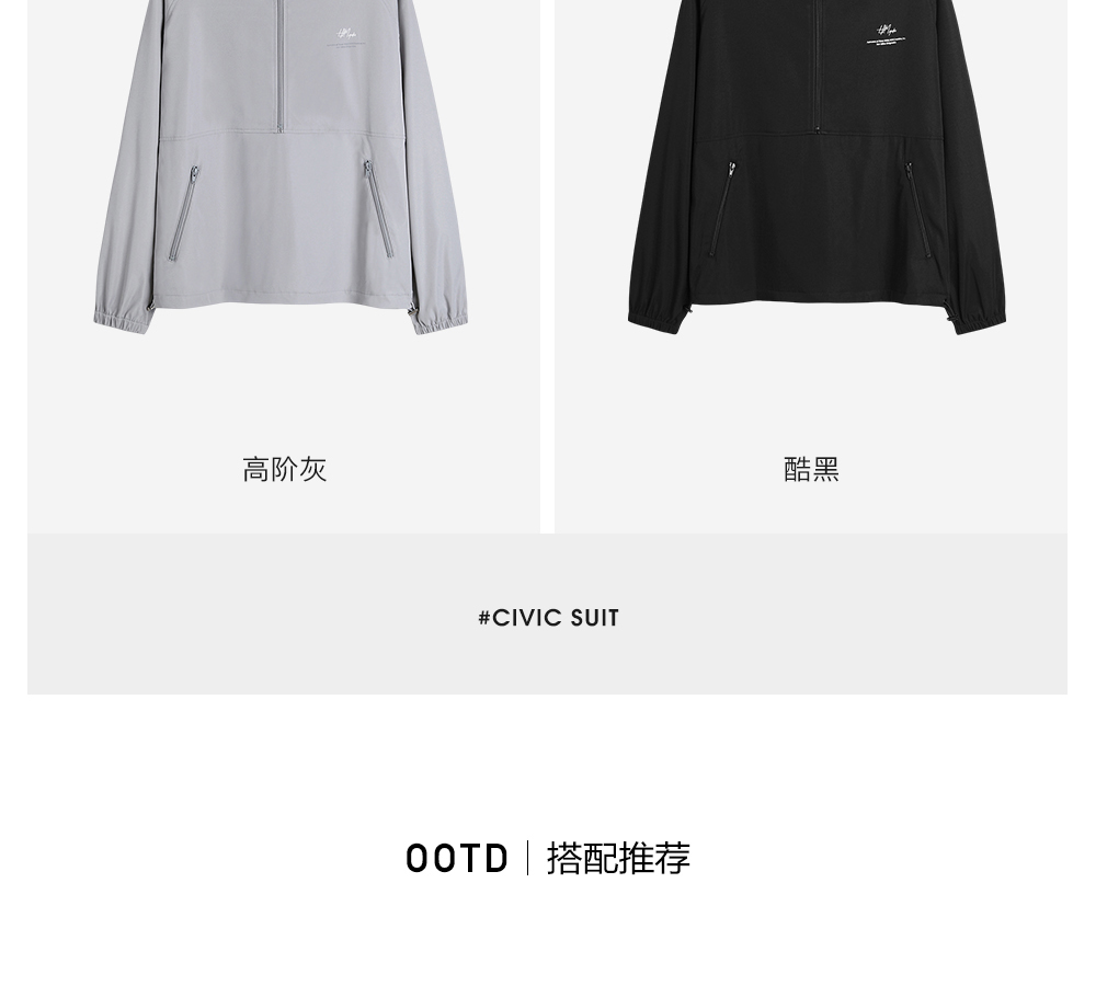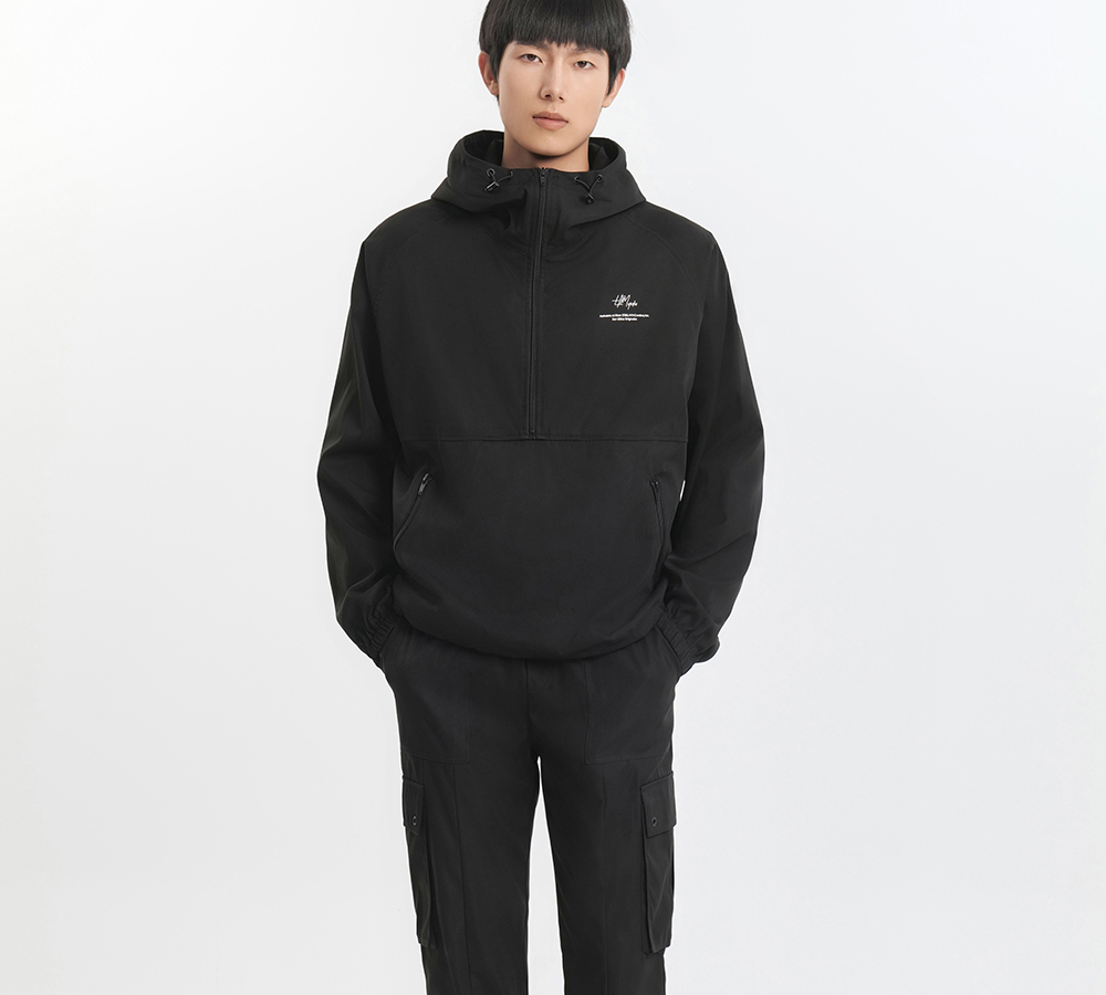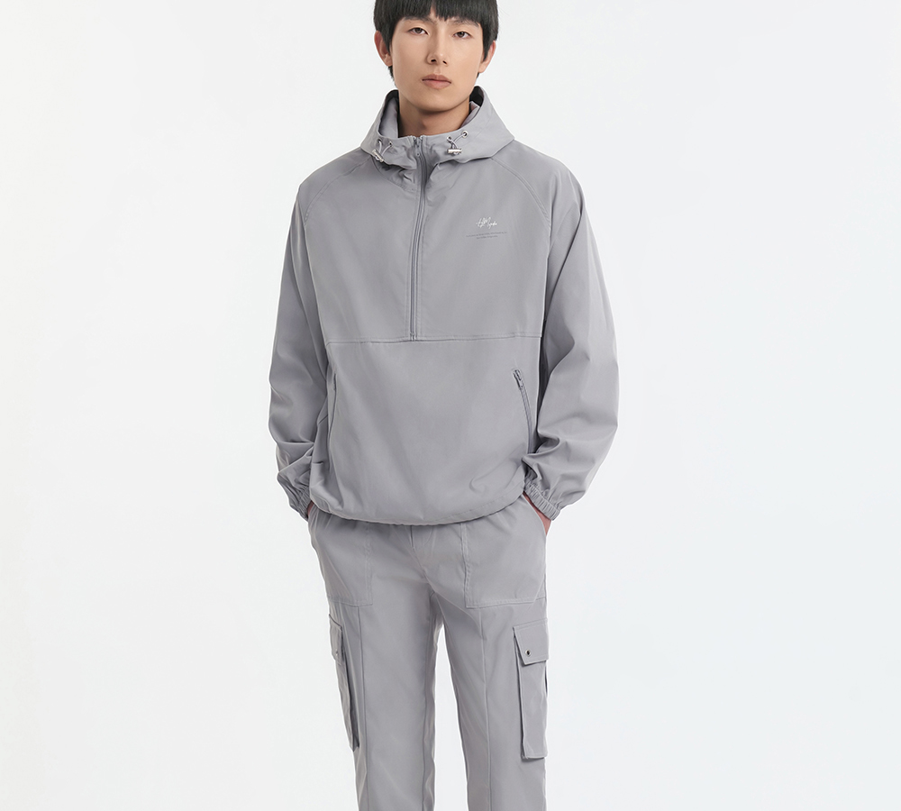 HIM漢崇 拉链半开襟夹克男轻薄休闲宽松连帽运动外套 2025秋季