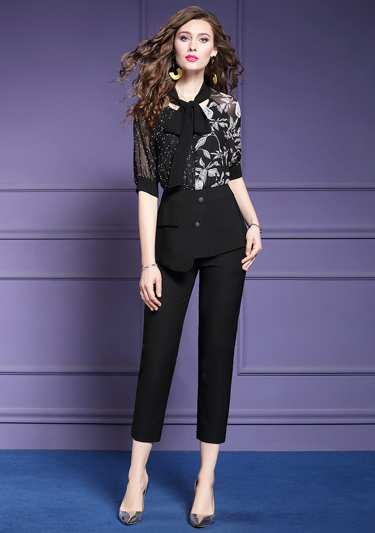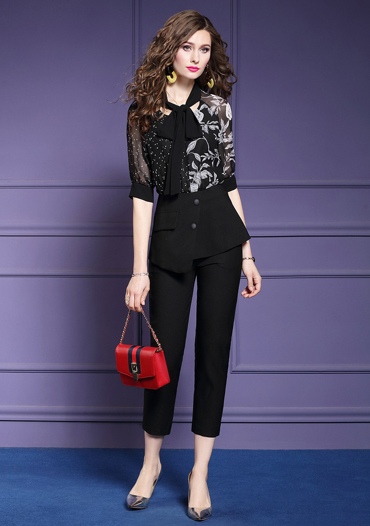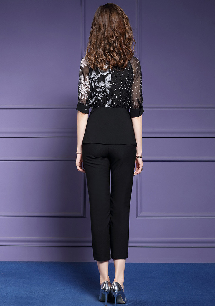 FMY-24234洋气减龄夏雪纺衫上衣配高腰九分裤两件套