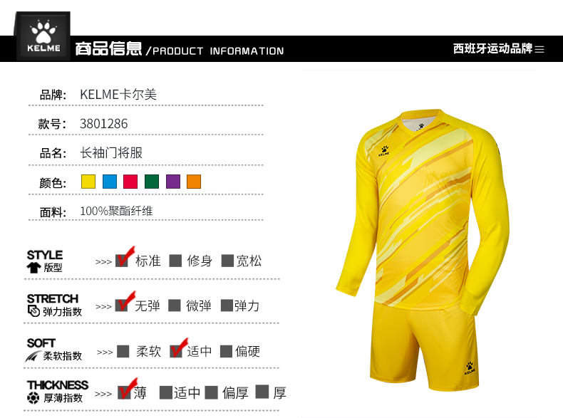 卡尔美 官方旗舰足球守门员服长袖套装男比赛训练门将服印制