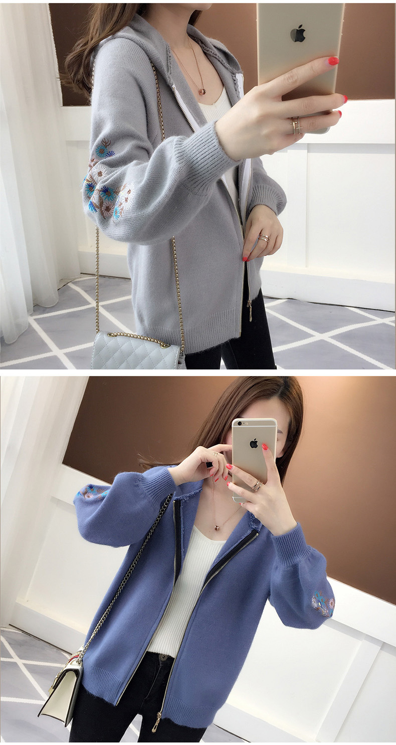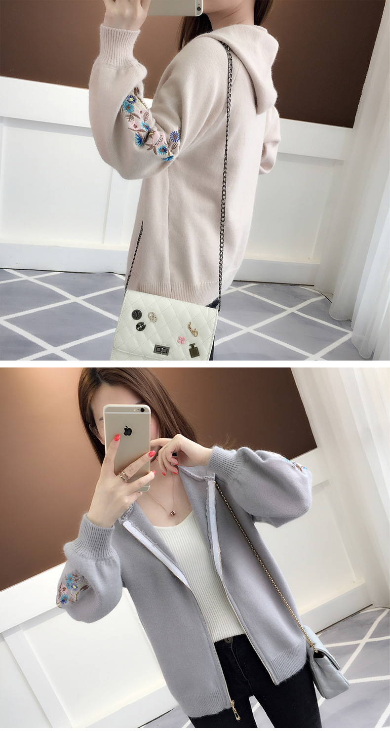 LM-28秋季新款宽松绣花长袖韩版连帽外套