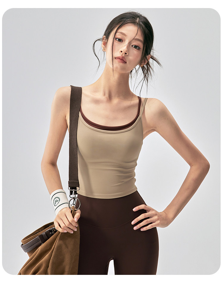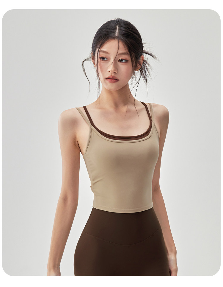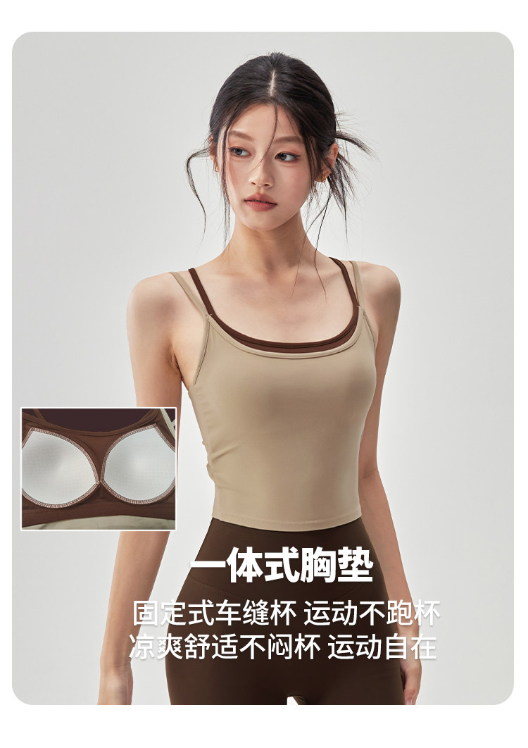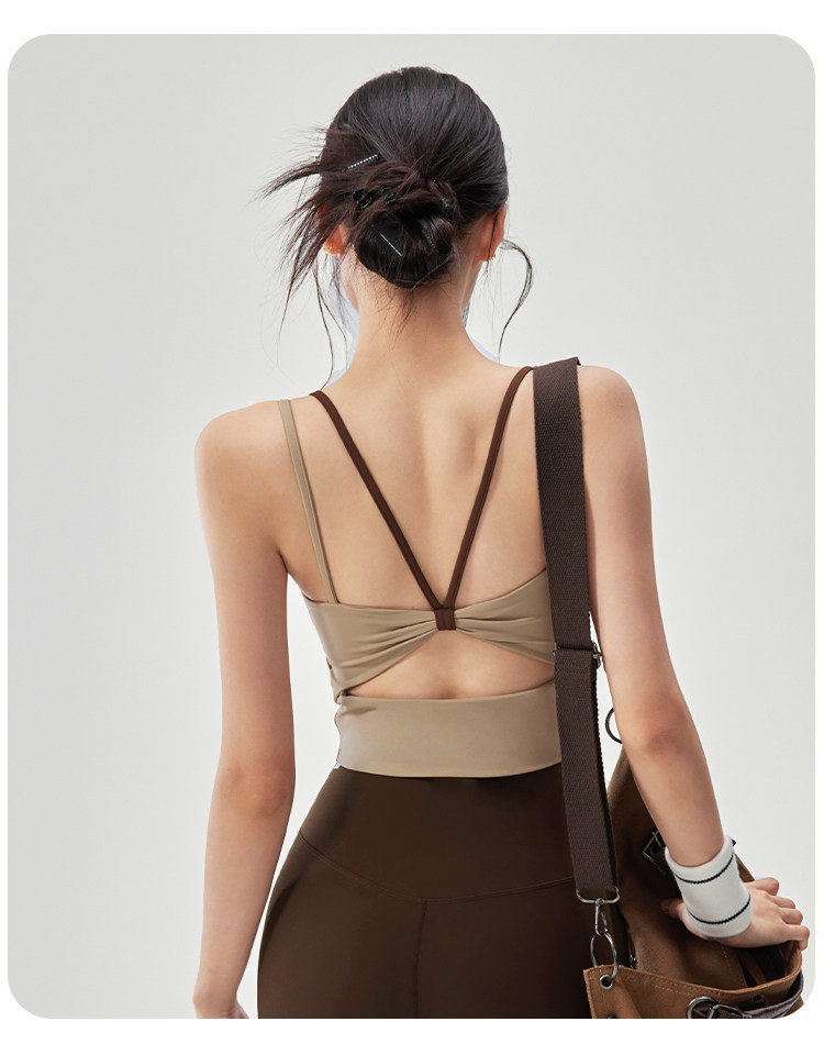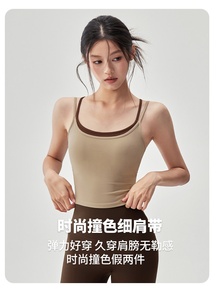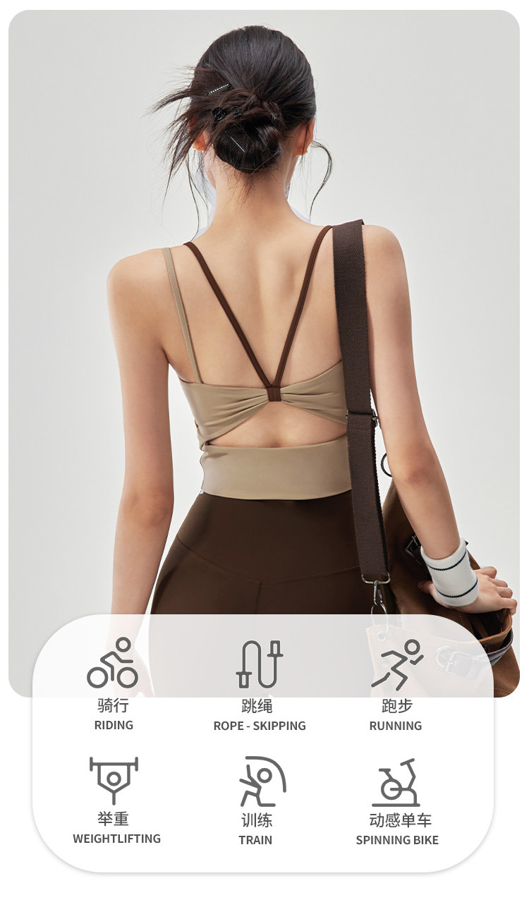 【3~5天发货】跃牌【美度空间】系列 瑜伽美背运动内衣一体式防震拼色瑜伽背心WX62020