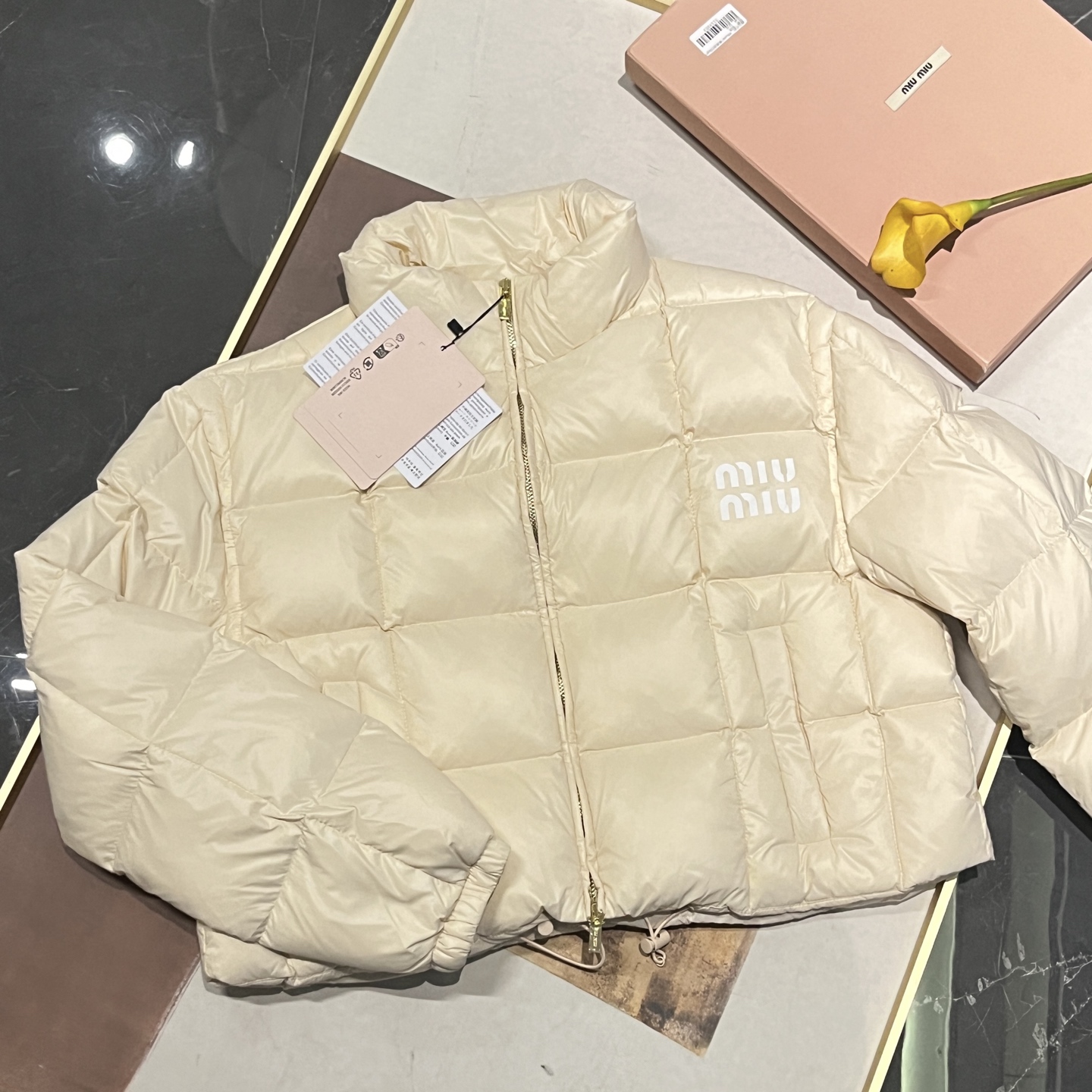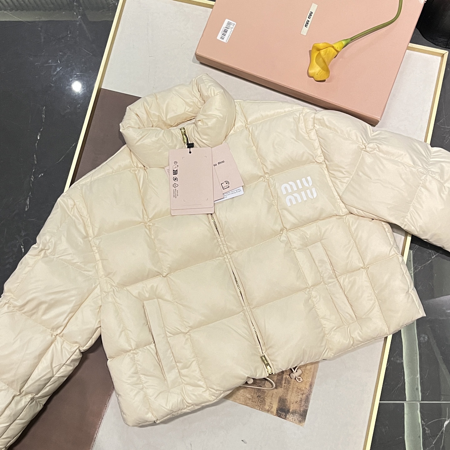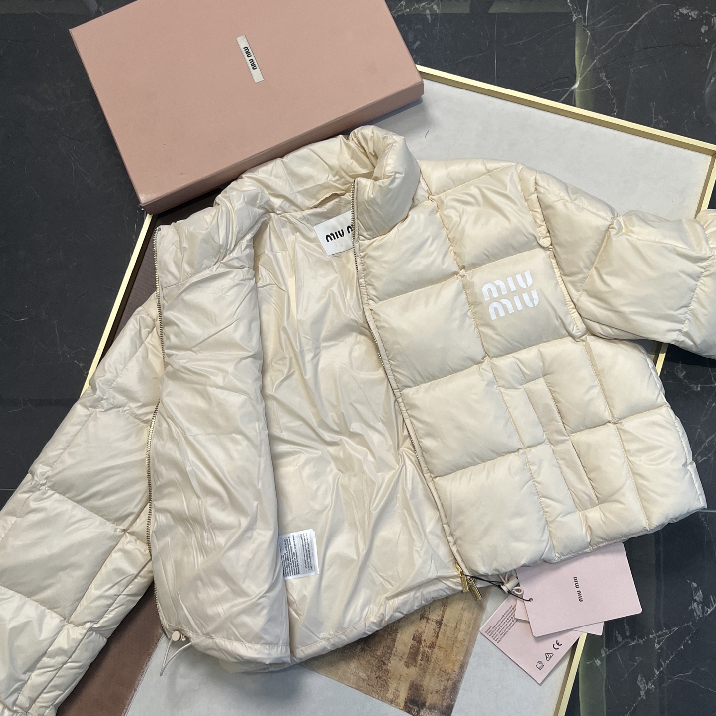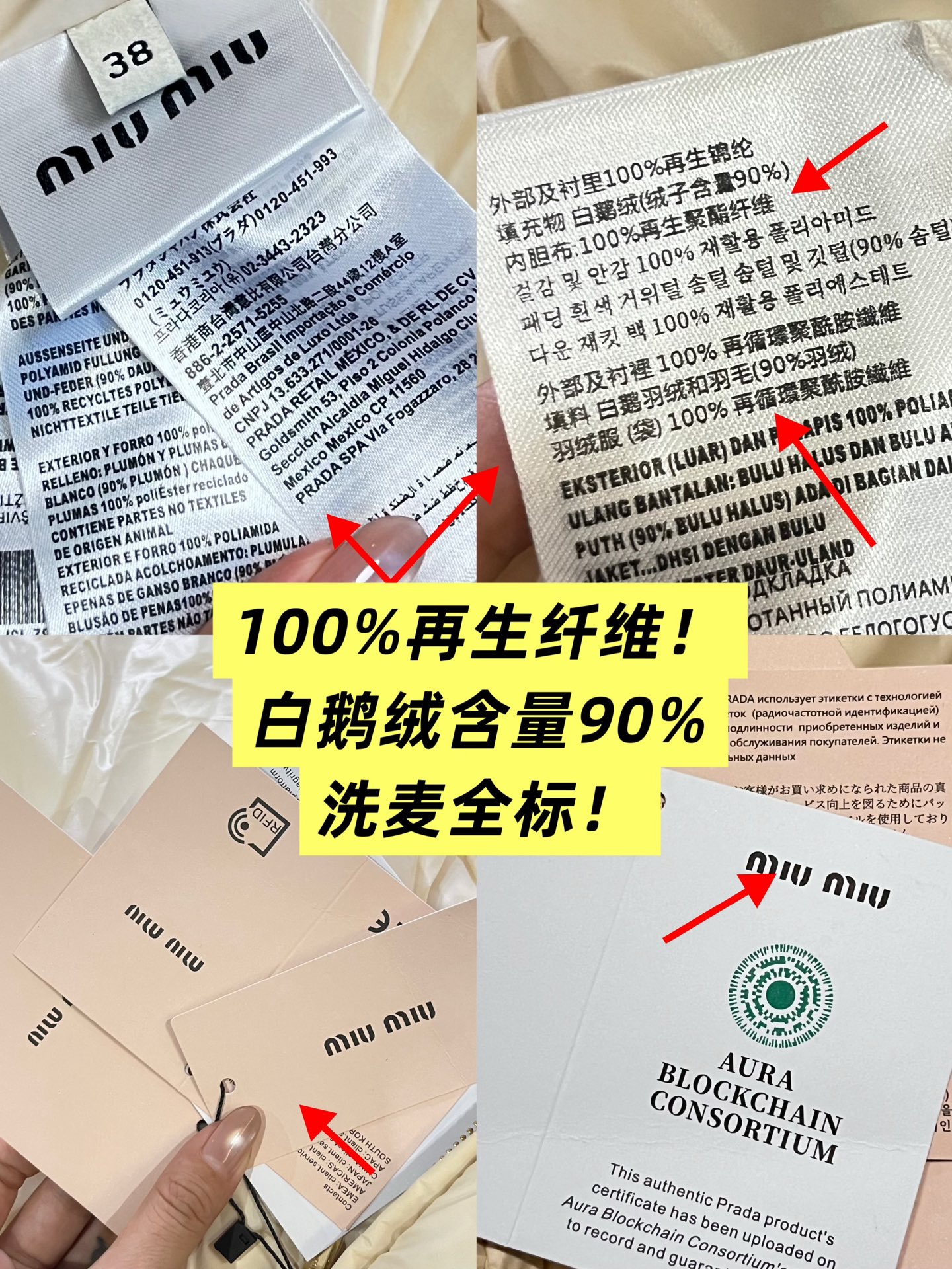 现货在仓秒发✈️ 秒完无补‼️ !【缪家 FW22 限定款亮面鹅绒服】冬日奢暖,高光登场!✨ 90%白鹅绒奢暖内核 | 再生环保面料 | AURA区块链认证正品✨🔸「核心优势」 1️⃣ 顶级绒芯:90%绒子含量白鹅绒填充,轻盈蓬松锁住体温,零下严寒依旧温暖如春 2️⃣ 环保科技:100%再生锦纶面料+再生聚酯纤维内胆,高端时尚与可持续理念完美融合 3️⃣ 精致细节:24K金质感拉链刻印经典缪家标识,立领防风设计,可调节下摆抽绳,方形绗缝工艺勾勒优雅轮廓 4️⃣ 权威认证:AURA区块链技术溯源 🎁得物原价12545元,现售价8789元!⚠️抢到赚到 → 米白亮面材质折射高级光泽。短款版型搭配高腰下装尽显大长腿。左胸经典品牌标识彰显低调奢华 配套RFID身份卡+多国语言认证卡 通勤约会|滑雪度假|圣诞元旦|派对聚会 冬日衣橱C位非它莫属,MIUMIU女孩的温暖高光时刻就此开启! 缪家鹅绒服 小个子女孩的救命🆘福星!蕾姐38码参考⚠️38码110斤以内⚠️ 40吗130斤以内⚠️